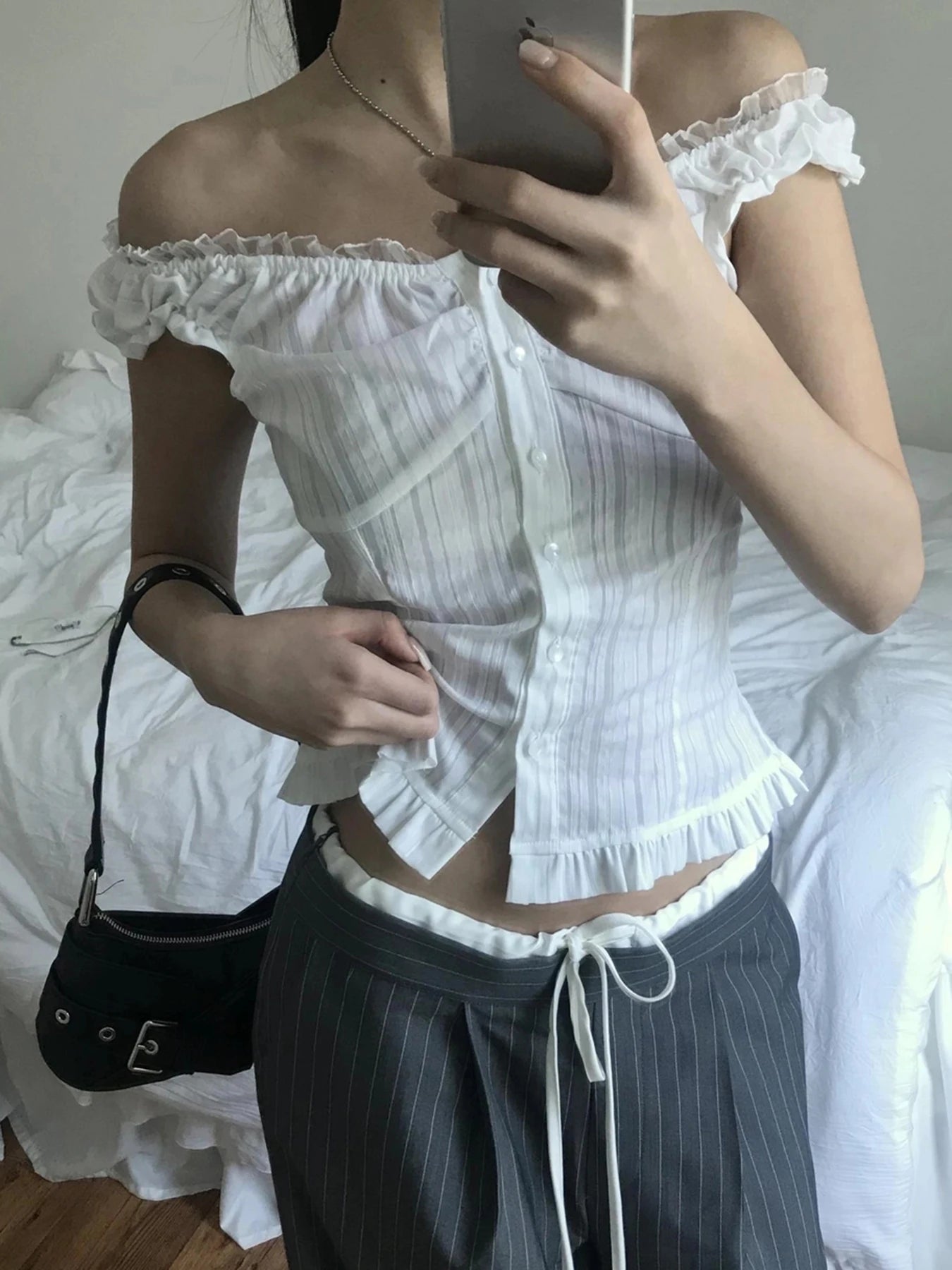 fashion Lace-up Solid Sexy Button Tees Slim Casual All-match Harajuku Fashion Women's Top Korean Style Aesthetic Clothings