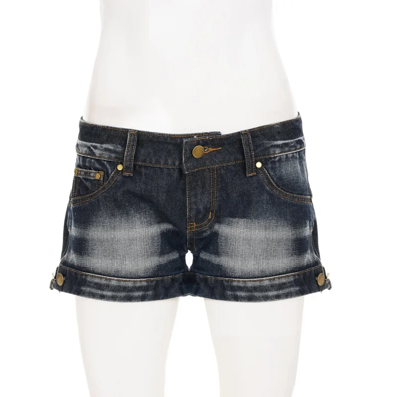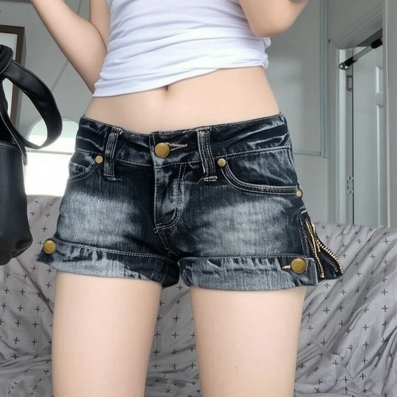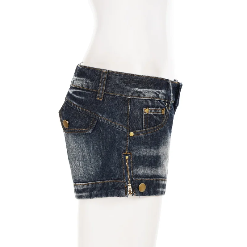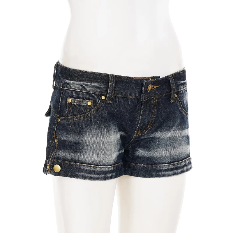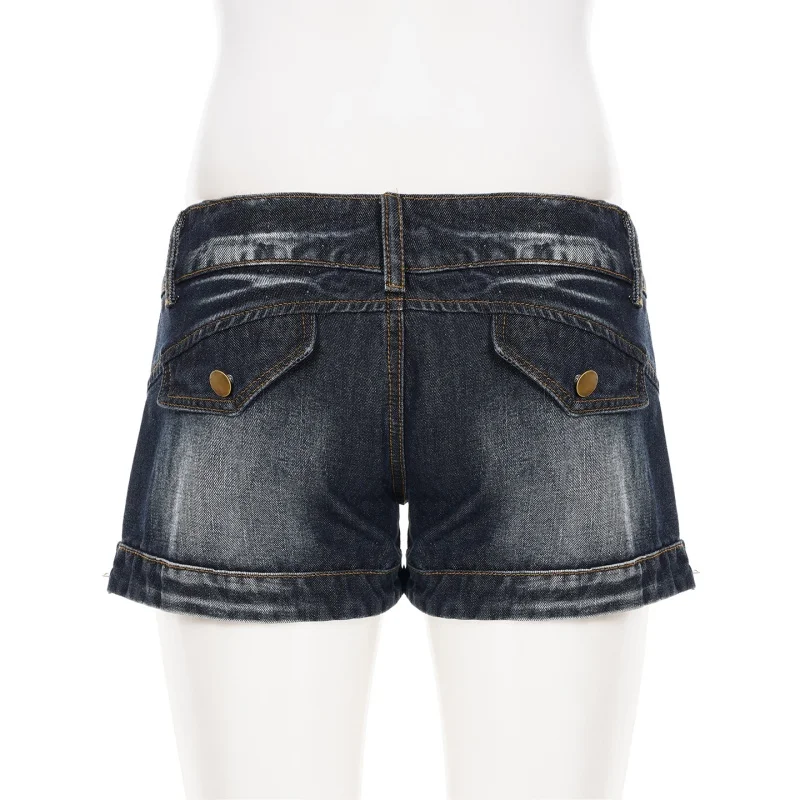 fashion Low Waisted Denim Hottie Shorts Blue Sexy Slim Chic Vintage Streetwear Clothes Retro Summer All-match Bottoms