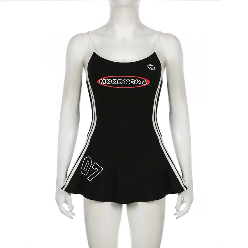 fashion New Sporty Leisure Mini Dress Sexy Preppy Style Letter Print Backless Outfits Casual Fashion Chic Y2K Women Cloth