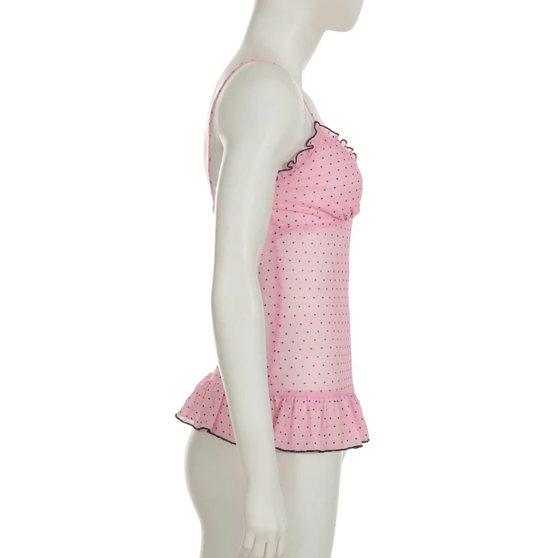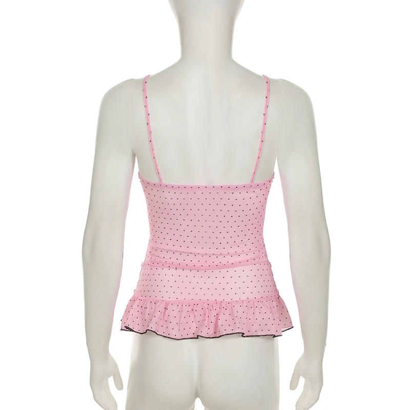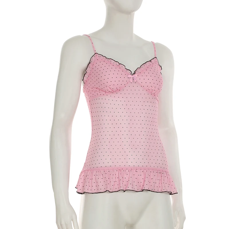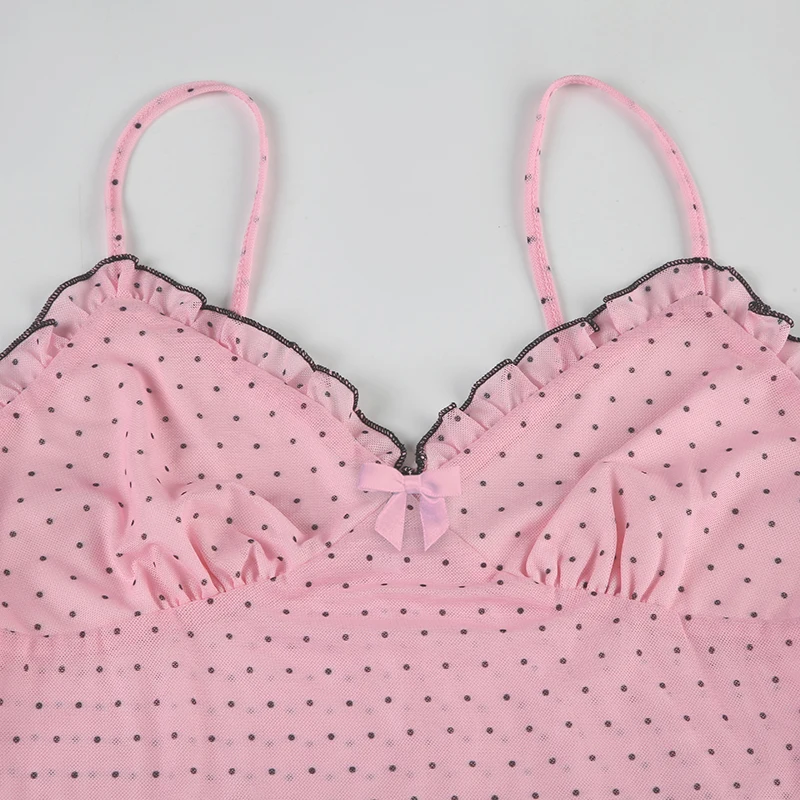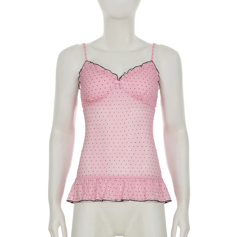 fashion Polka Dot Bow V-neck Backeless Camisole Sexy Slim Chic Vintage Sleeveless Tops Bodycon Sweet Streetwear Bustiers