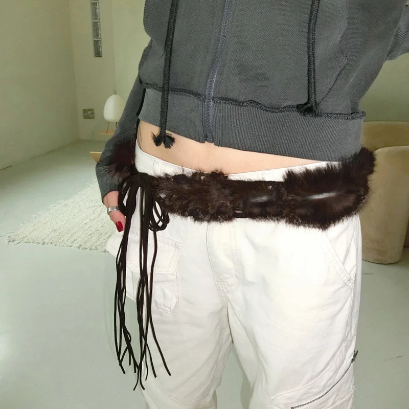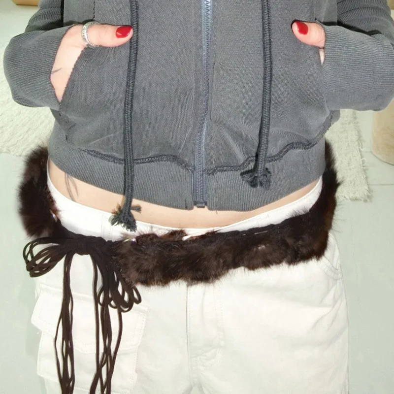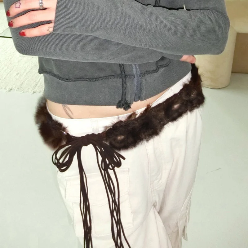 fashion Retro Fashion Solid Aesthetic Furry Belts Vintage Chic Adjustable Accessories Korean Casual Drawstring Belts
