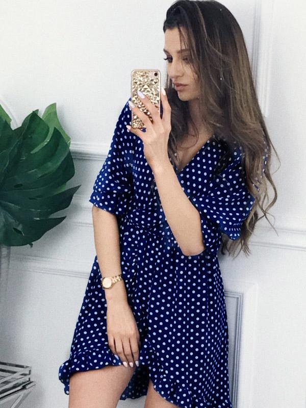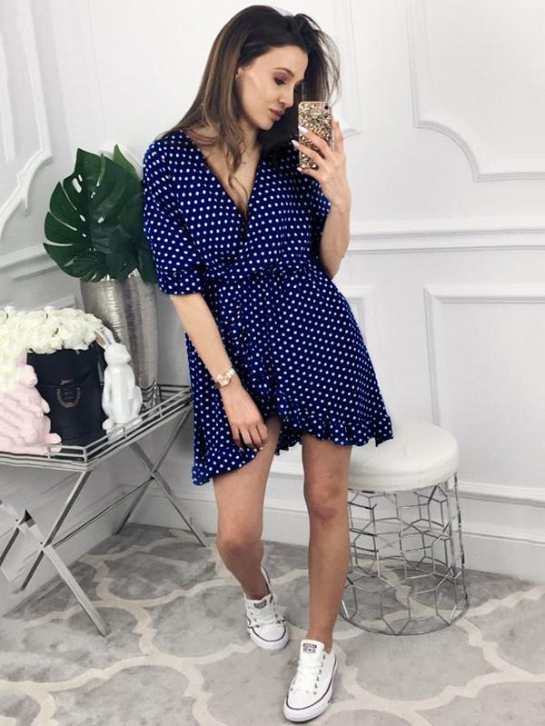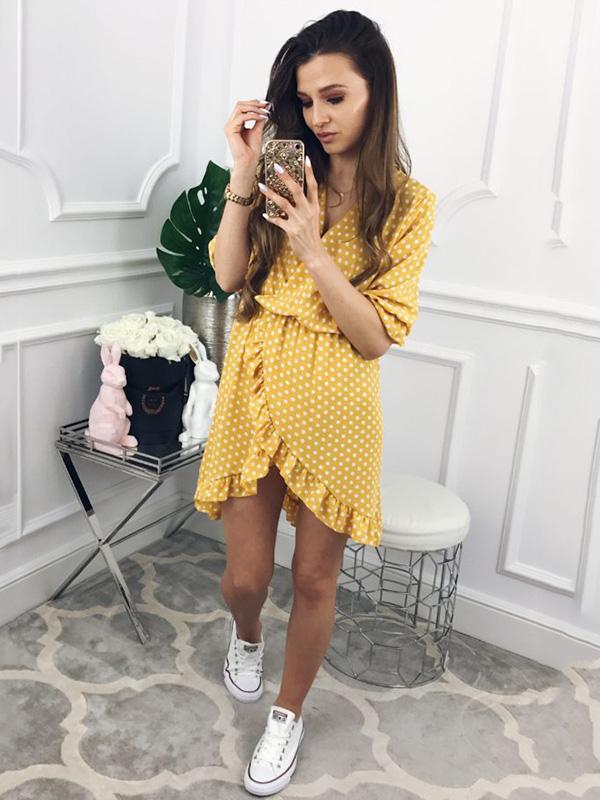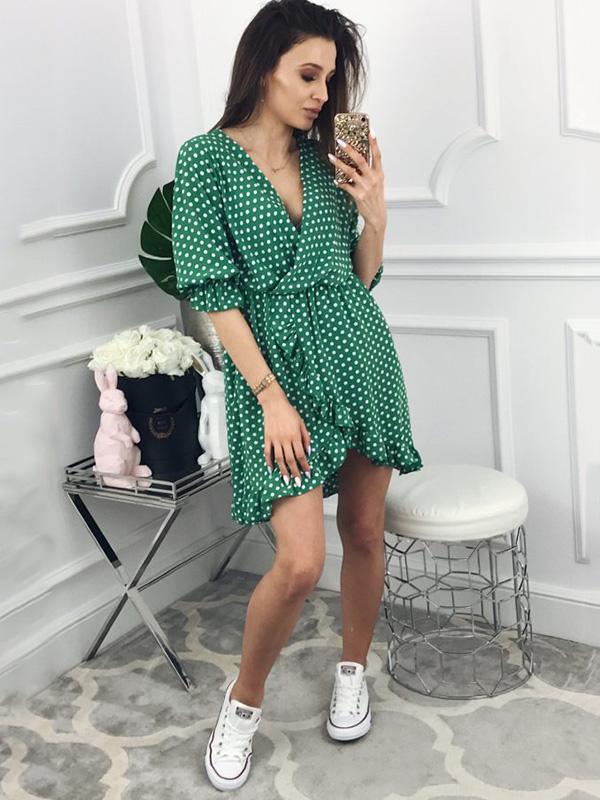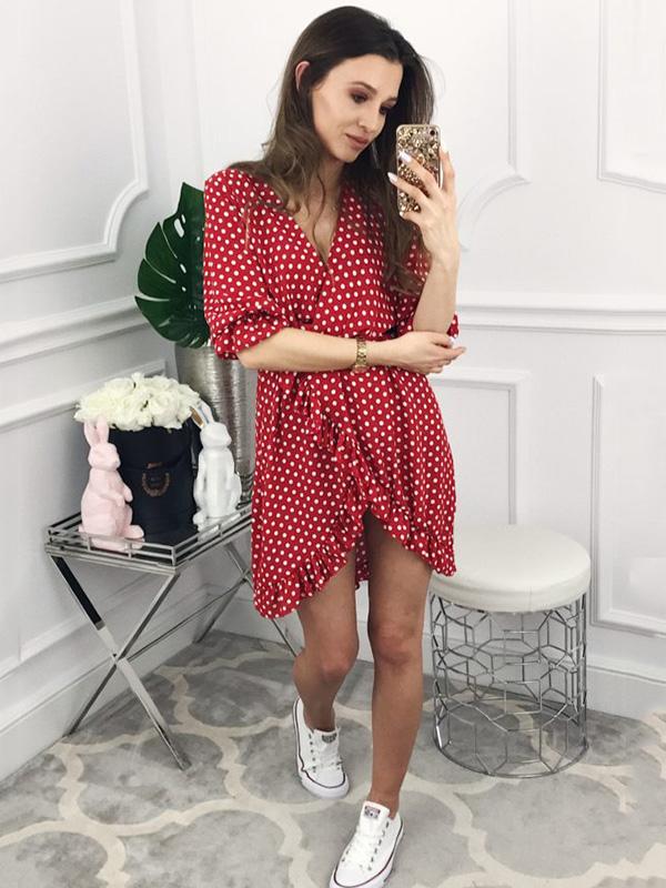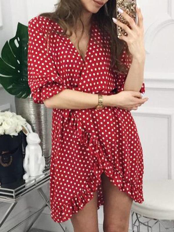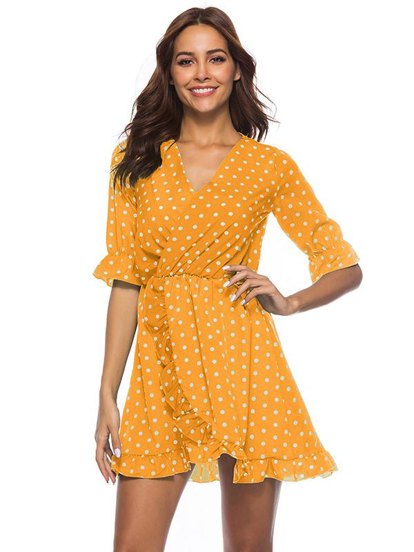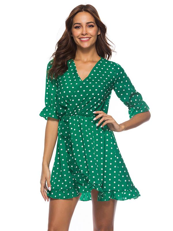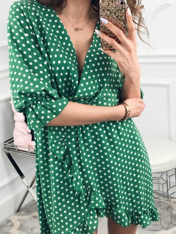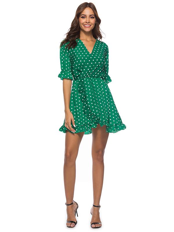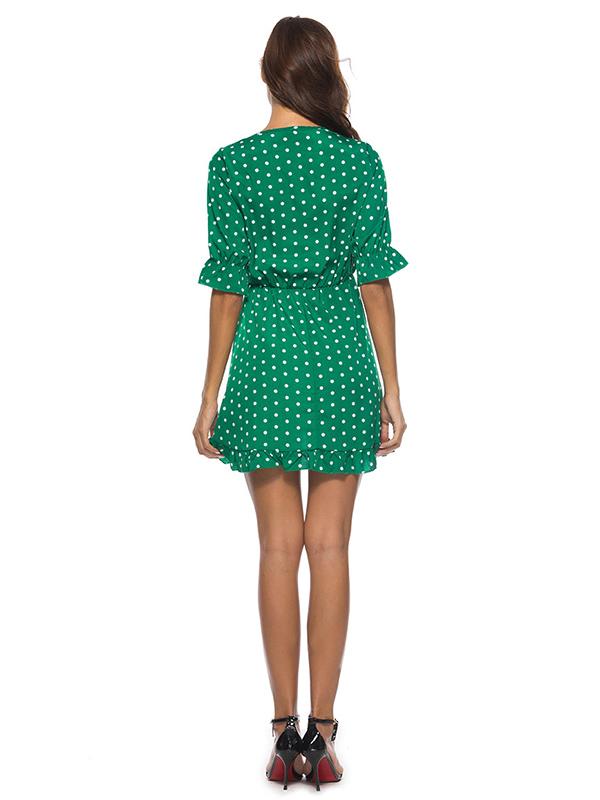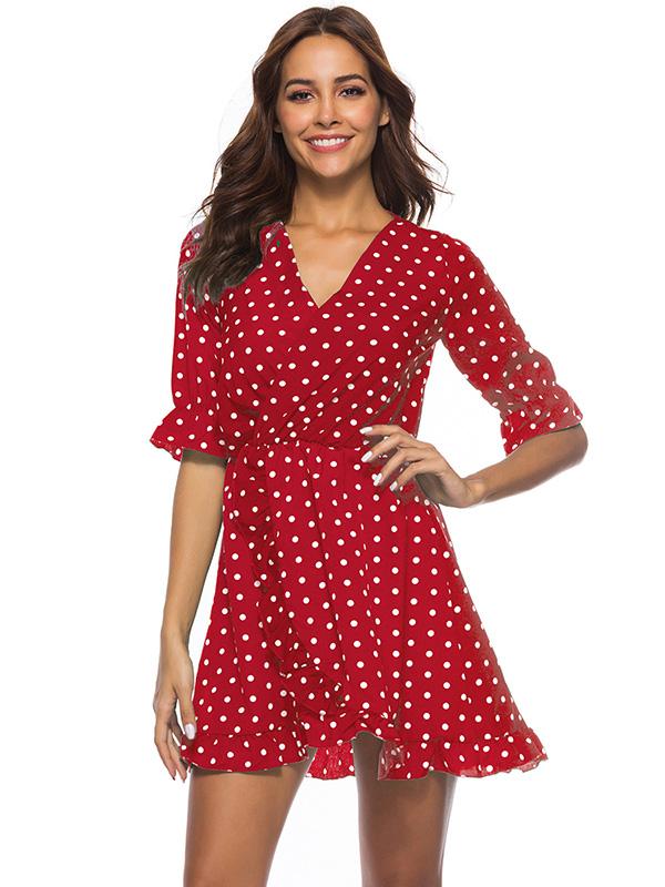 Fashion Ruffled Polka-Dot V-neck Mini Dresses