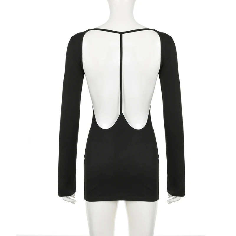 fashion Sexy Backless Bodycon Dresses Long Sleeves Solid Chic Crewneck Clubwear Pullovers Fashion Party Women Eveing Dress