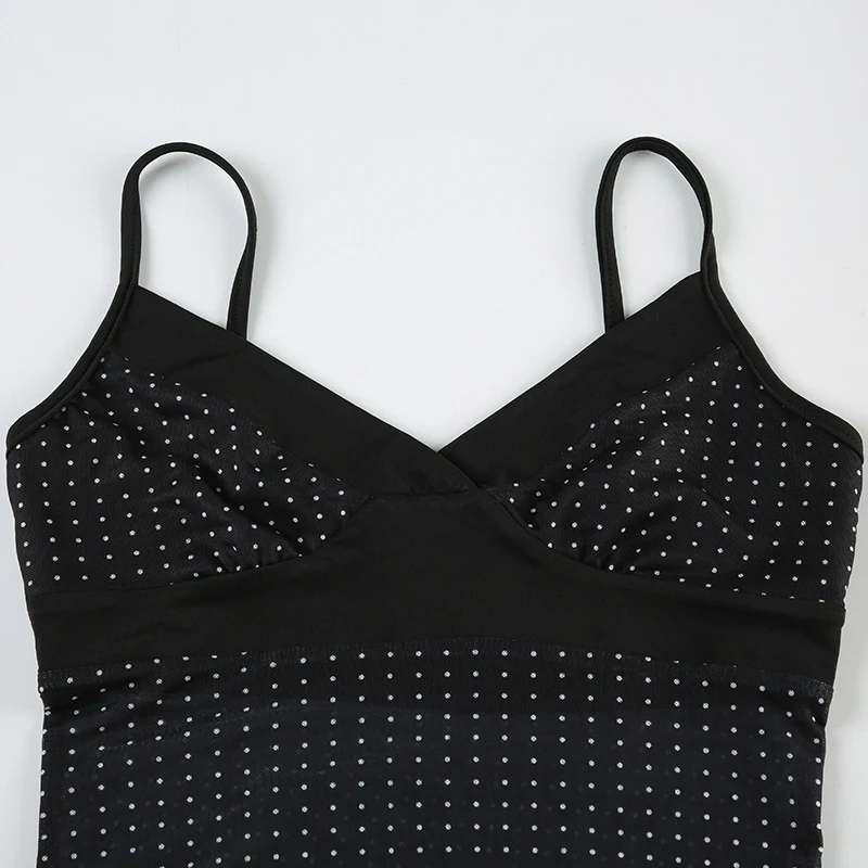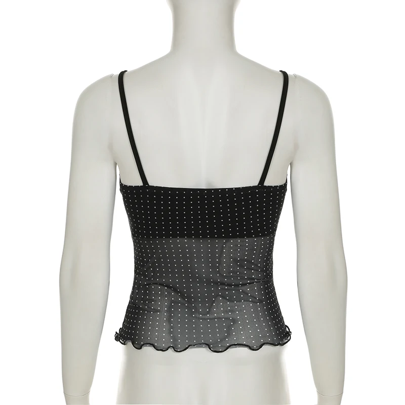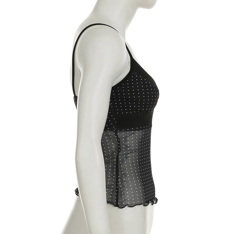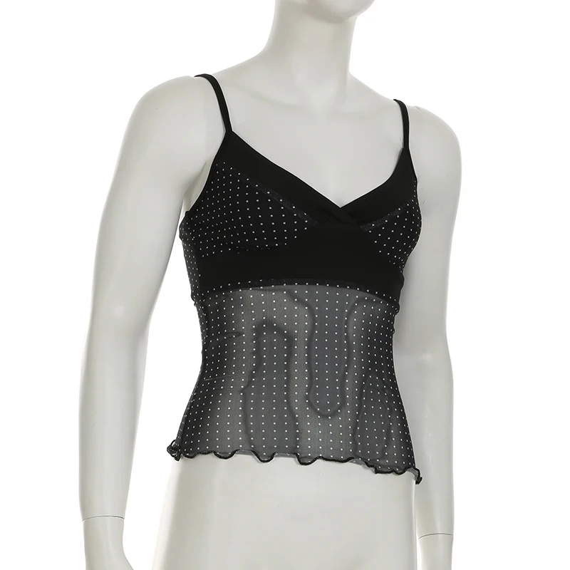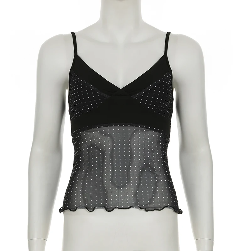 fashion Sexy Dot Print Crop Bustiers V-neck Transparent Patchwork Sleeveless Camisole Backless Summer Cute Outfits