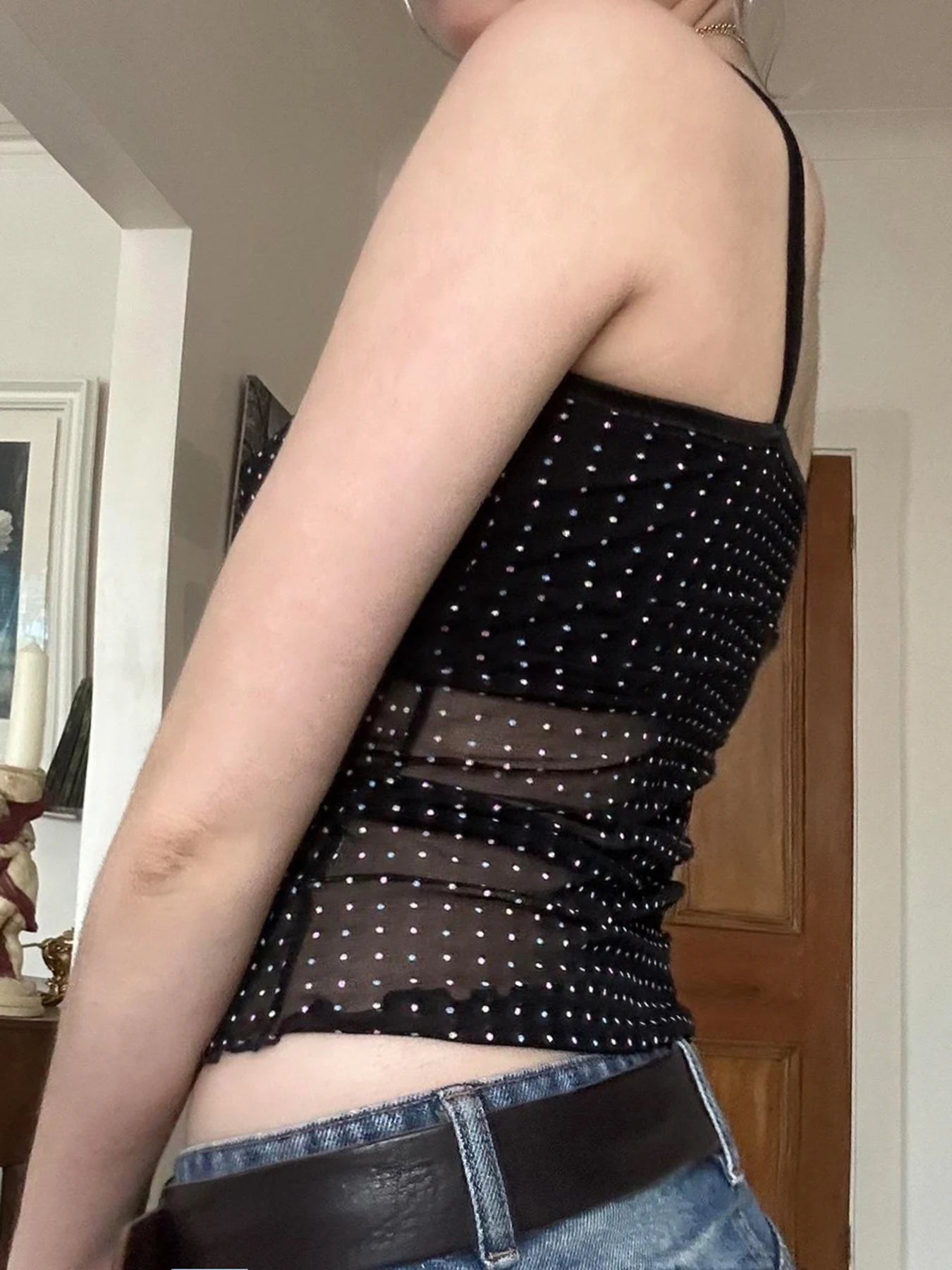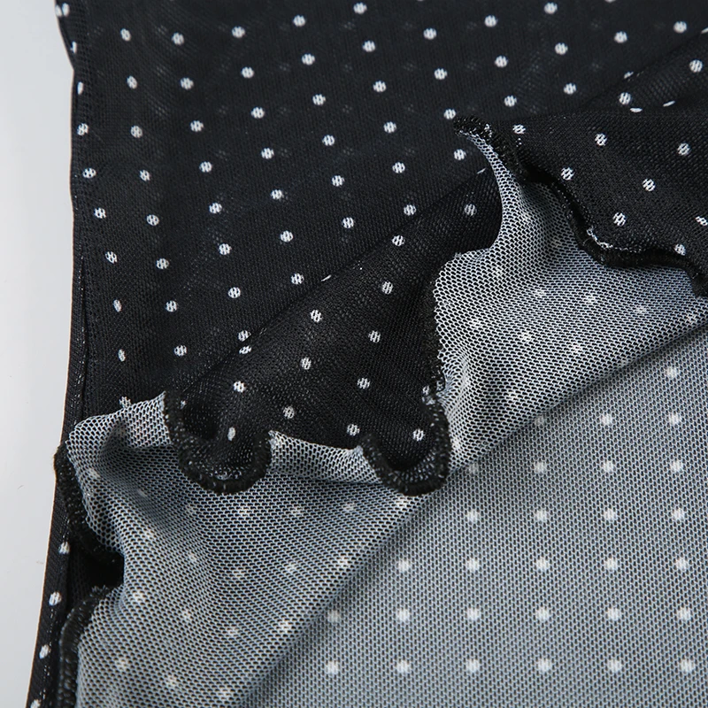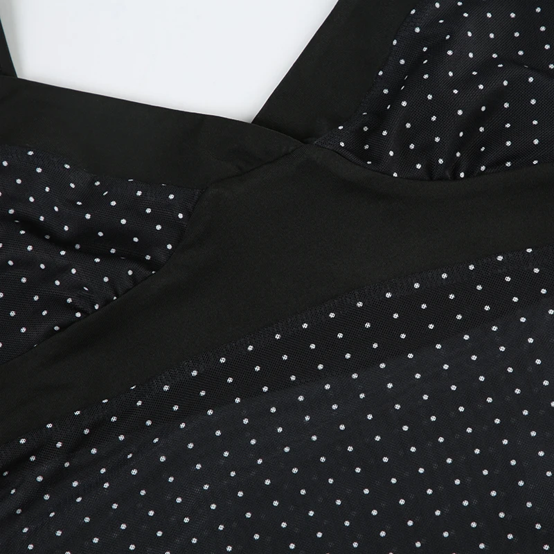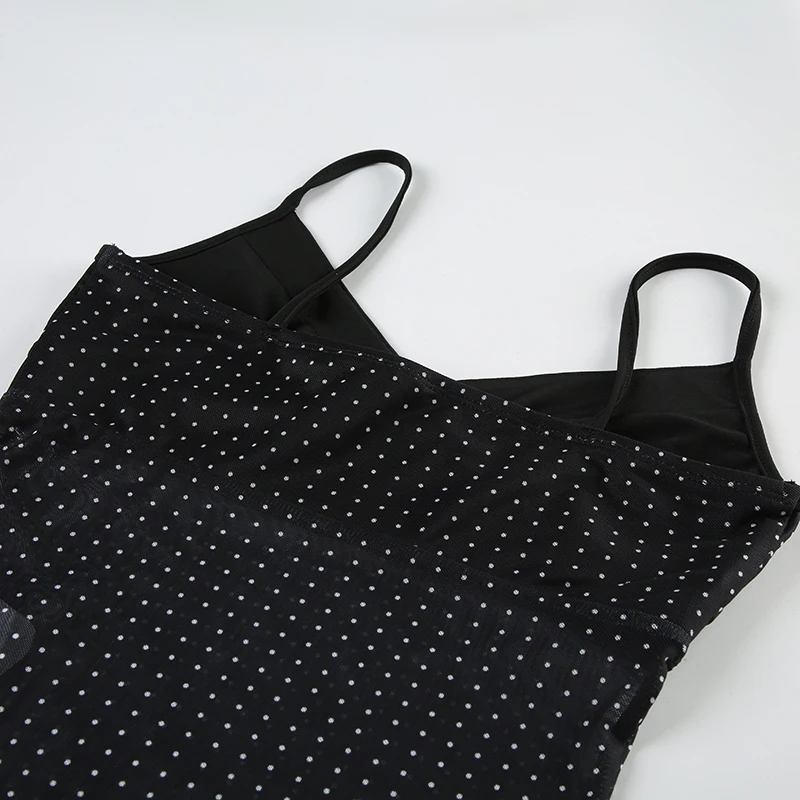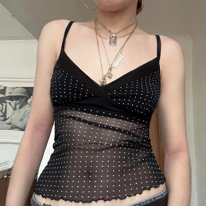 fashion Sexy Dot Print Crop Bustiers V-neck Transparent Patchwork Sleeveless Camisole Backless Summer Cute Outfits