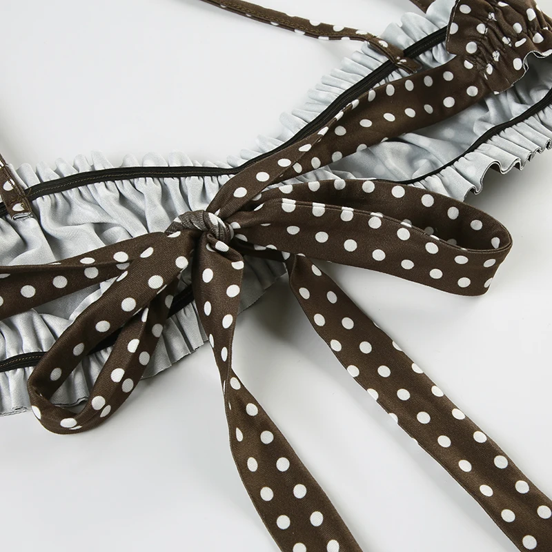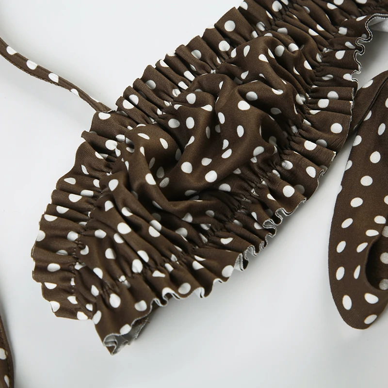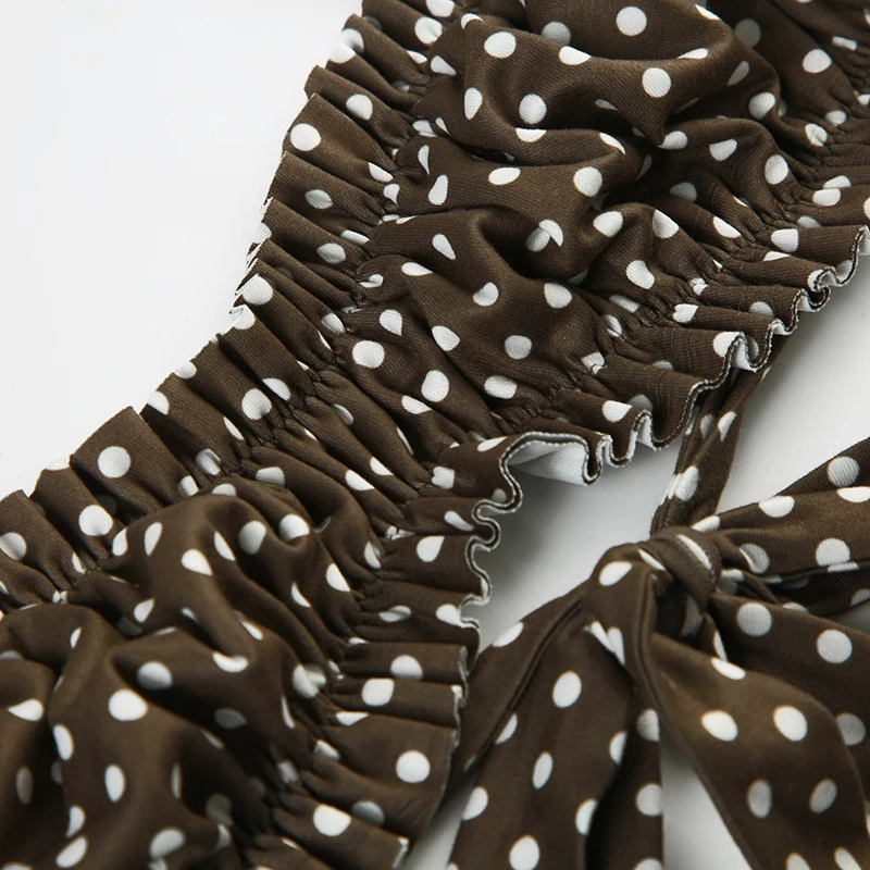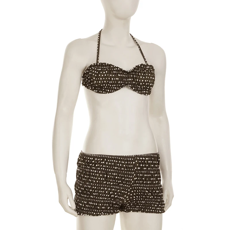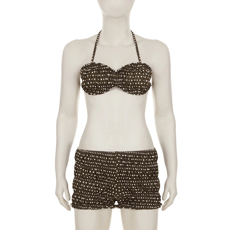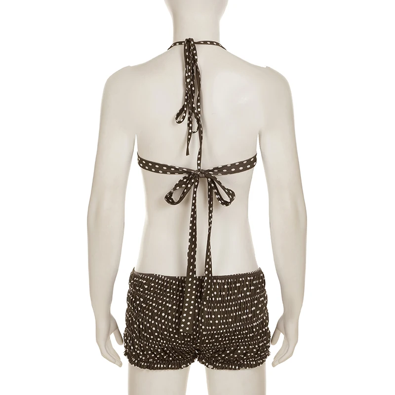 fashion Sexy Polka Dot Bow Fold Halter Neck Suit Bodycon Aesthetic Vintage Sleeveless Set Elastic Vacation Crop Outfits