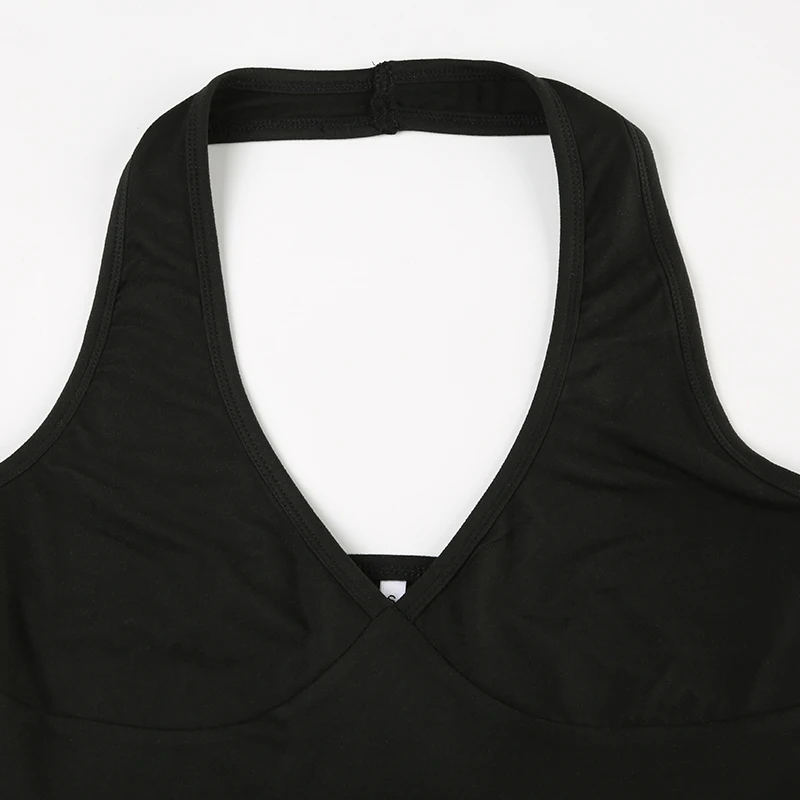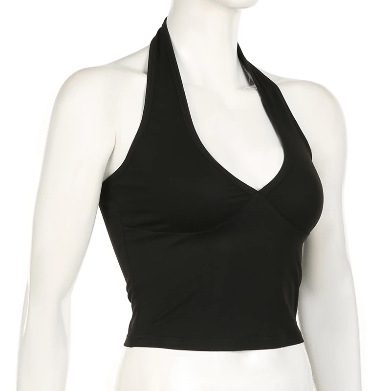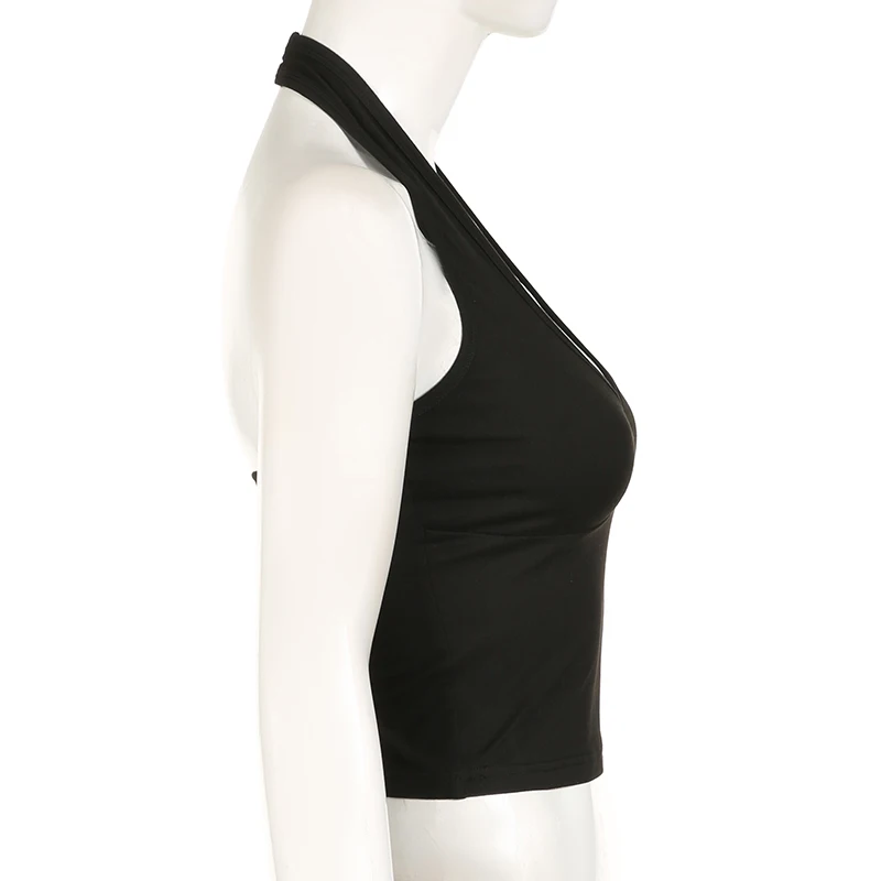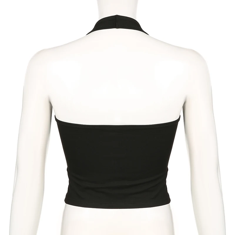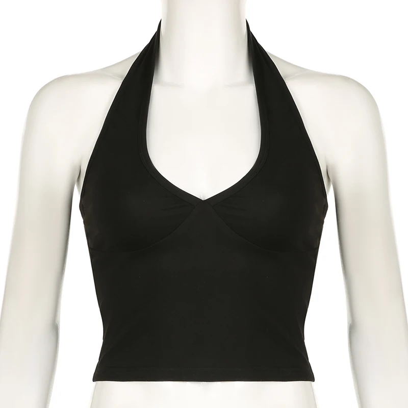 fashion Solid Black Sexy Halter Camisole Backless Slim Women's Cropped Vests Party Y2K Deep v-neck Clubwear Bustiers Chic