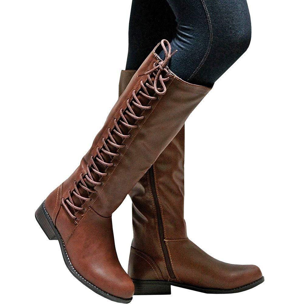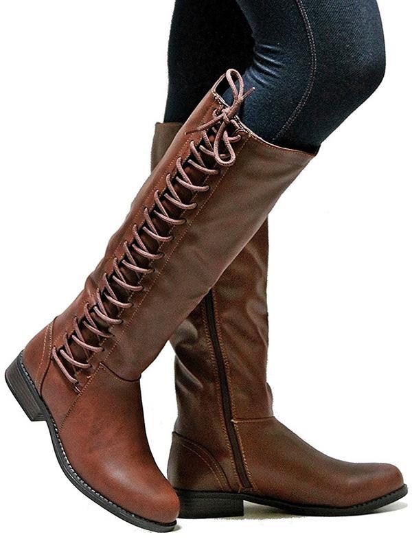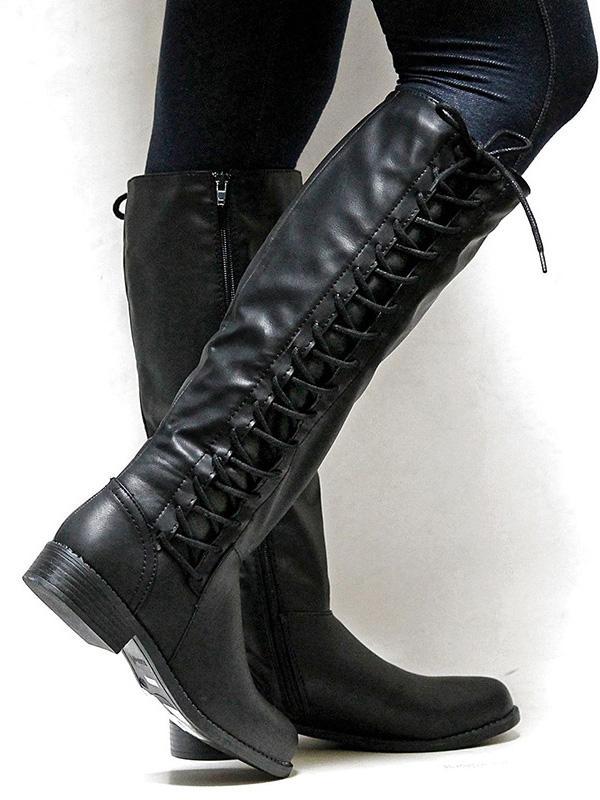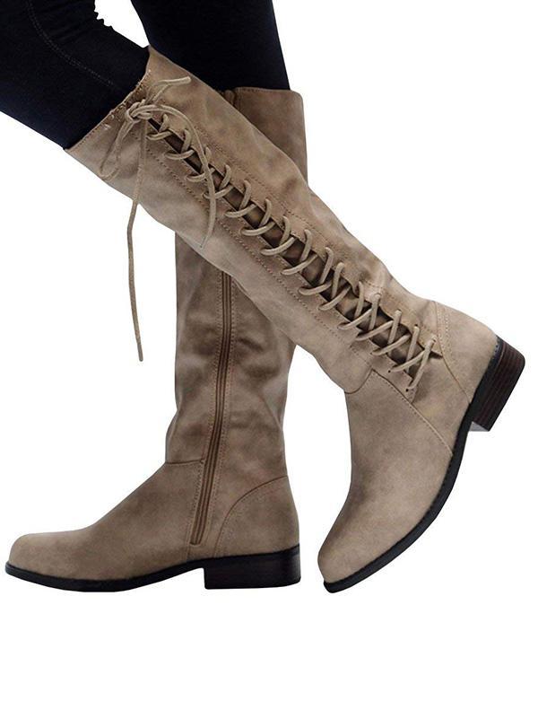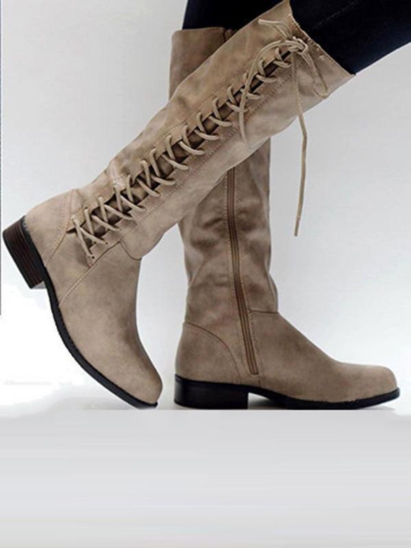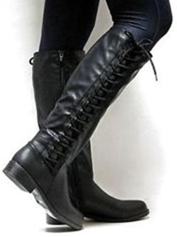 Fashion Solid Color Bandage Thigh-high Low-heel Boots Shoes