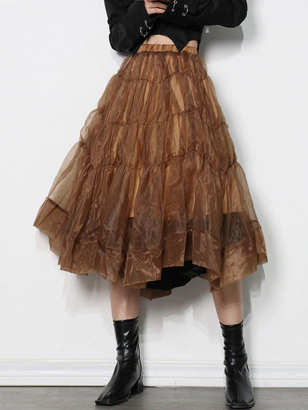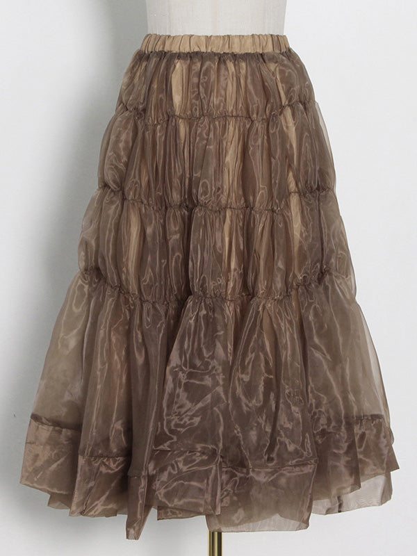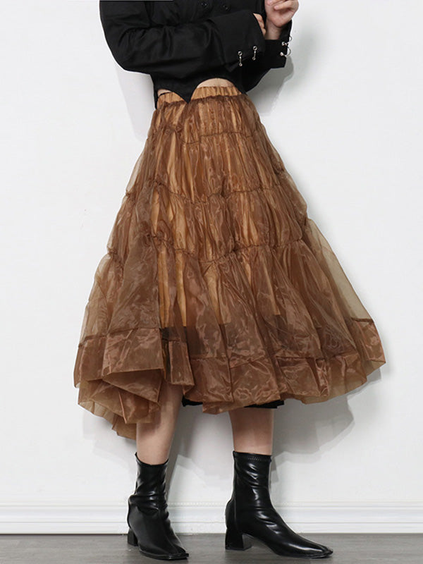 Fashion Solid Color Split-Joint A-Line Bubble Skirt