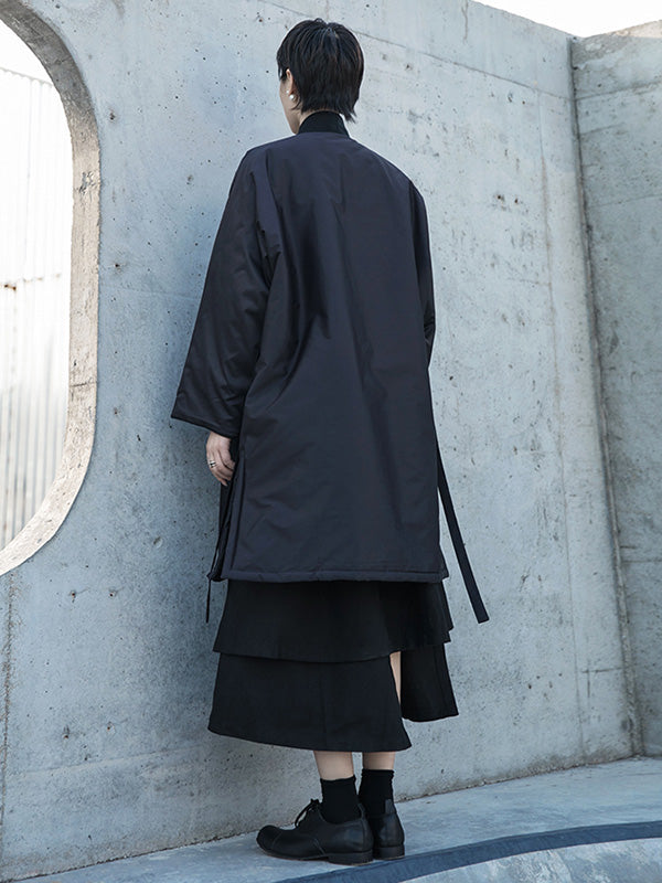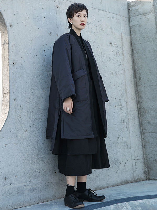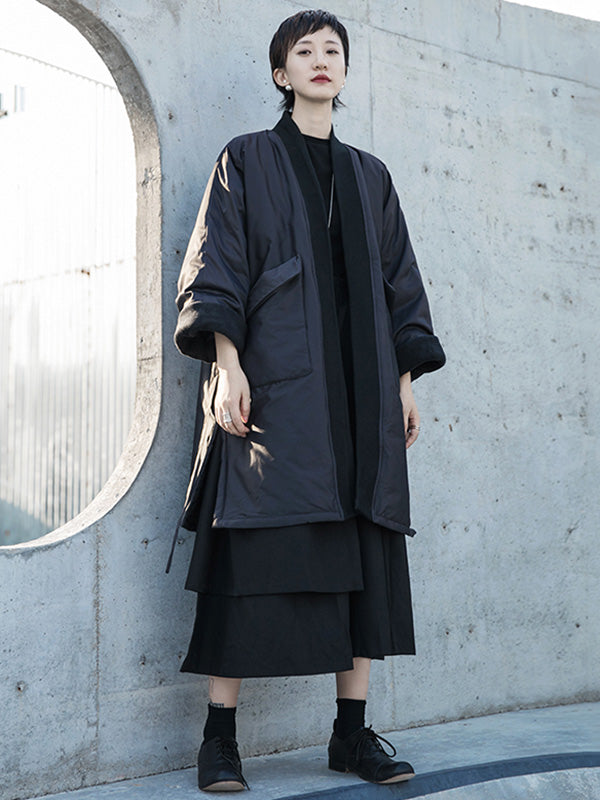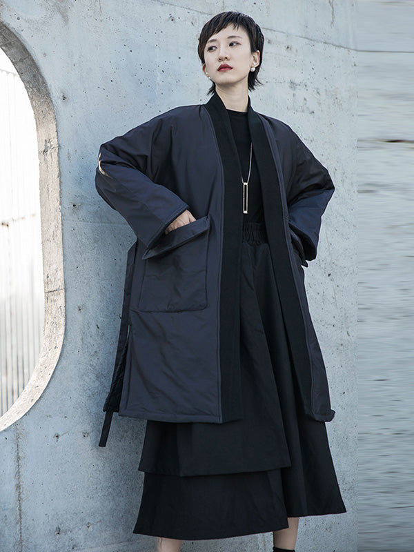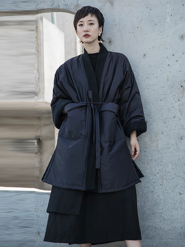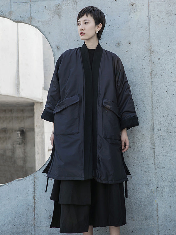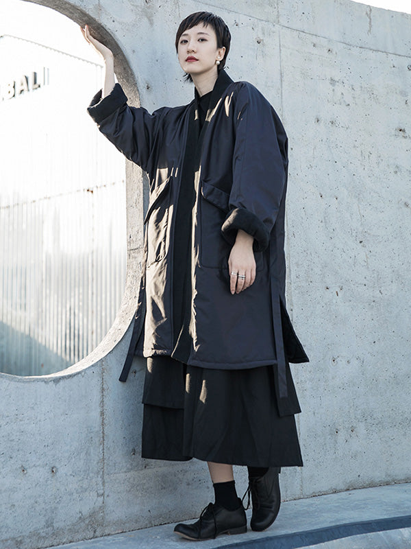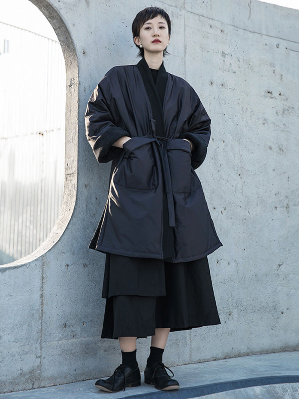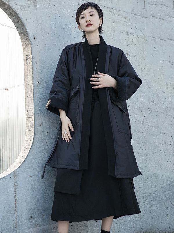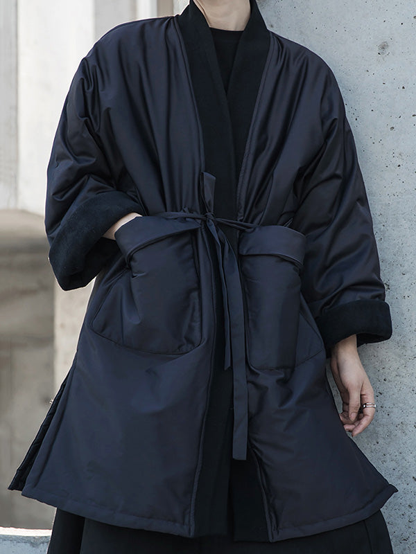 Fashion Solid Color Split-Side Long Sleeves Bandage Cotton-Padded Coat