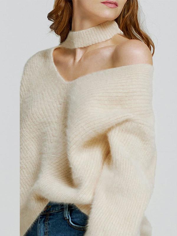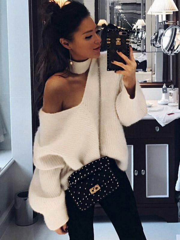 Fashion Solid Colors Off-the-shoulder Sweater Tops