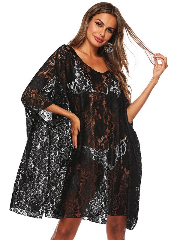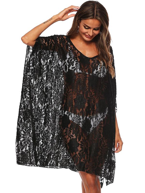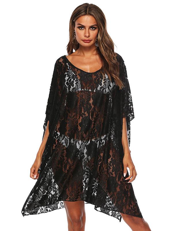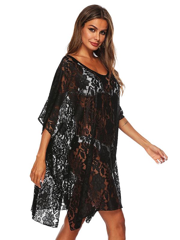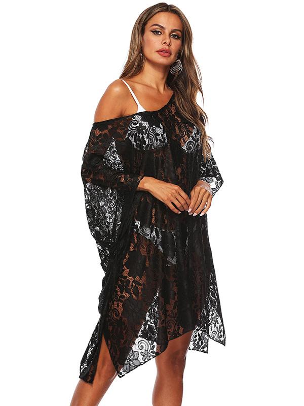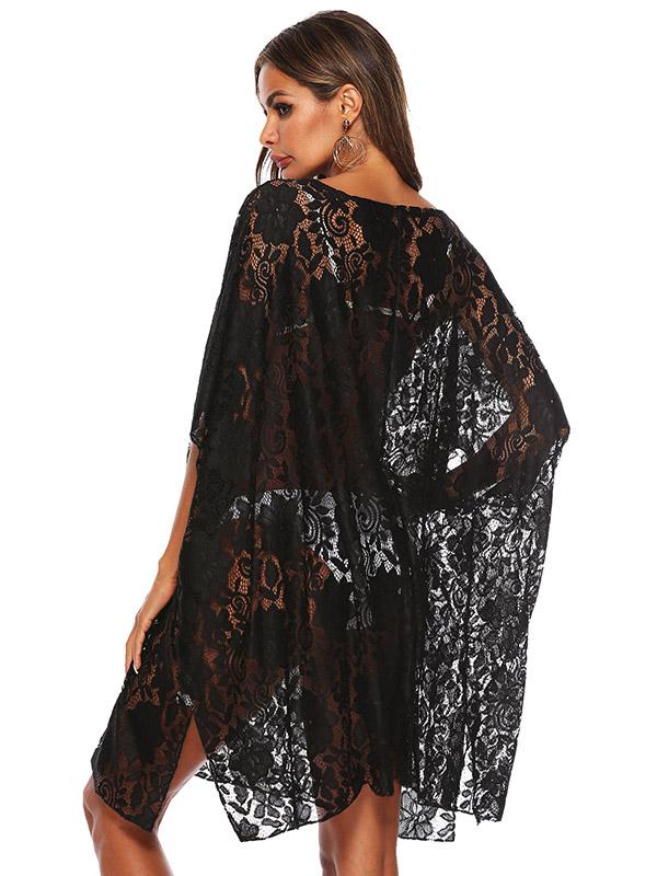 Fashion Solid Lace Bikini Sunscreen Loose Cover Up