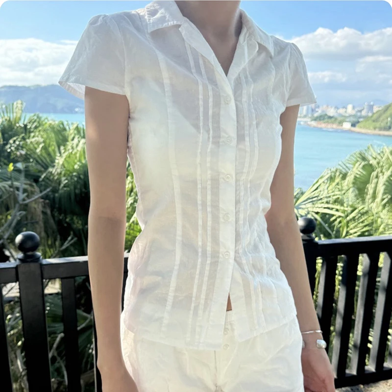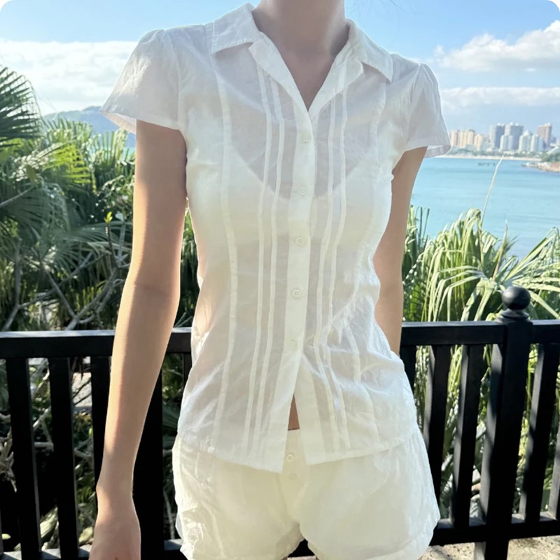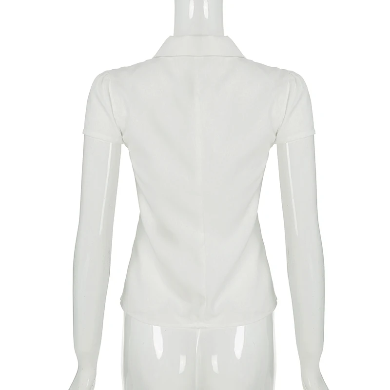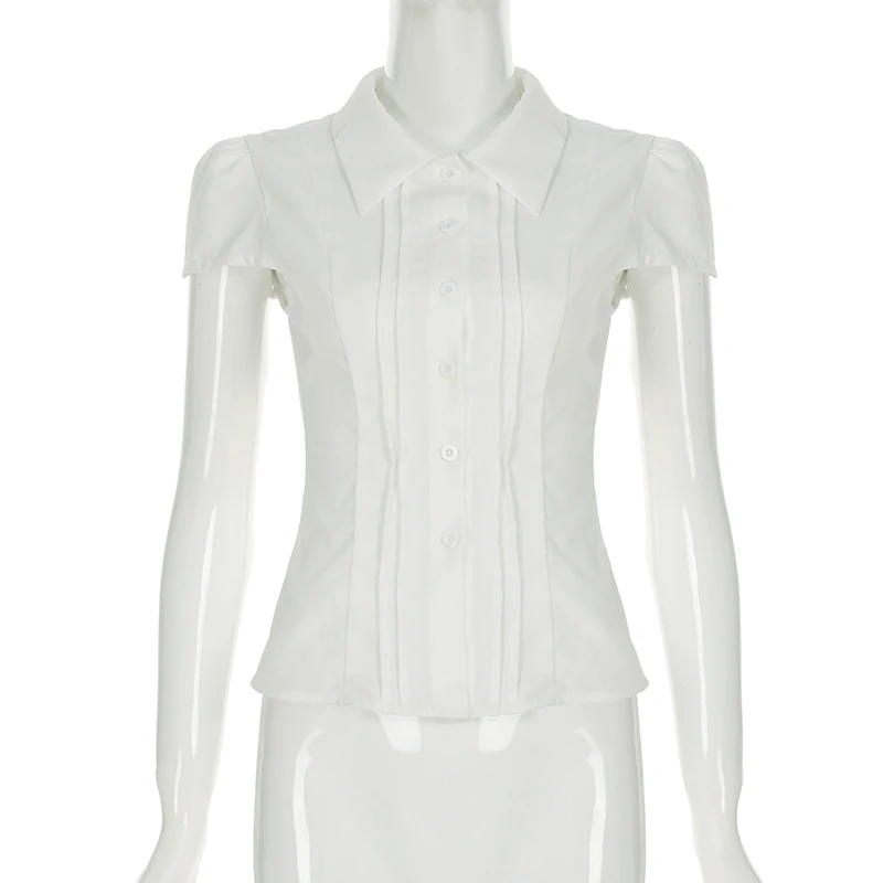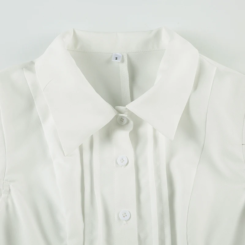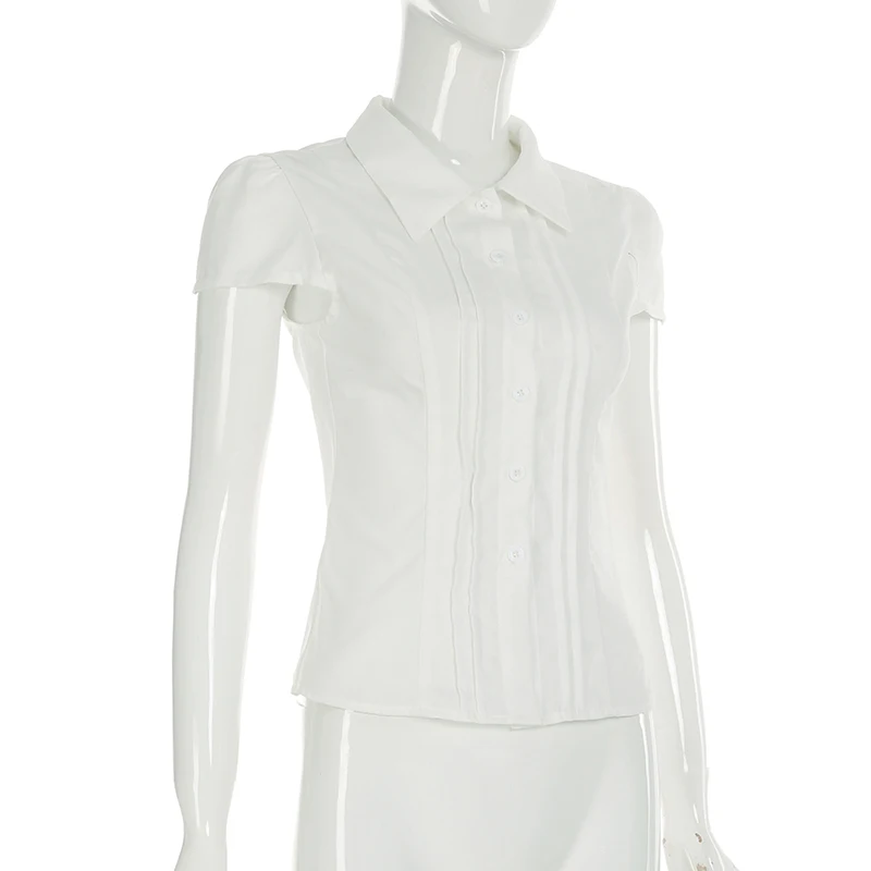 fashion Solid Lapel Button White Blouses Slim Classic Fashion Streetwear All-match Patchwork Tops Chic 90s Vintage Clothes