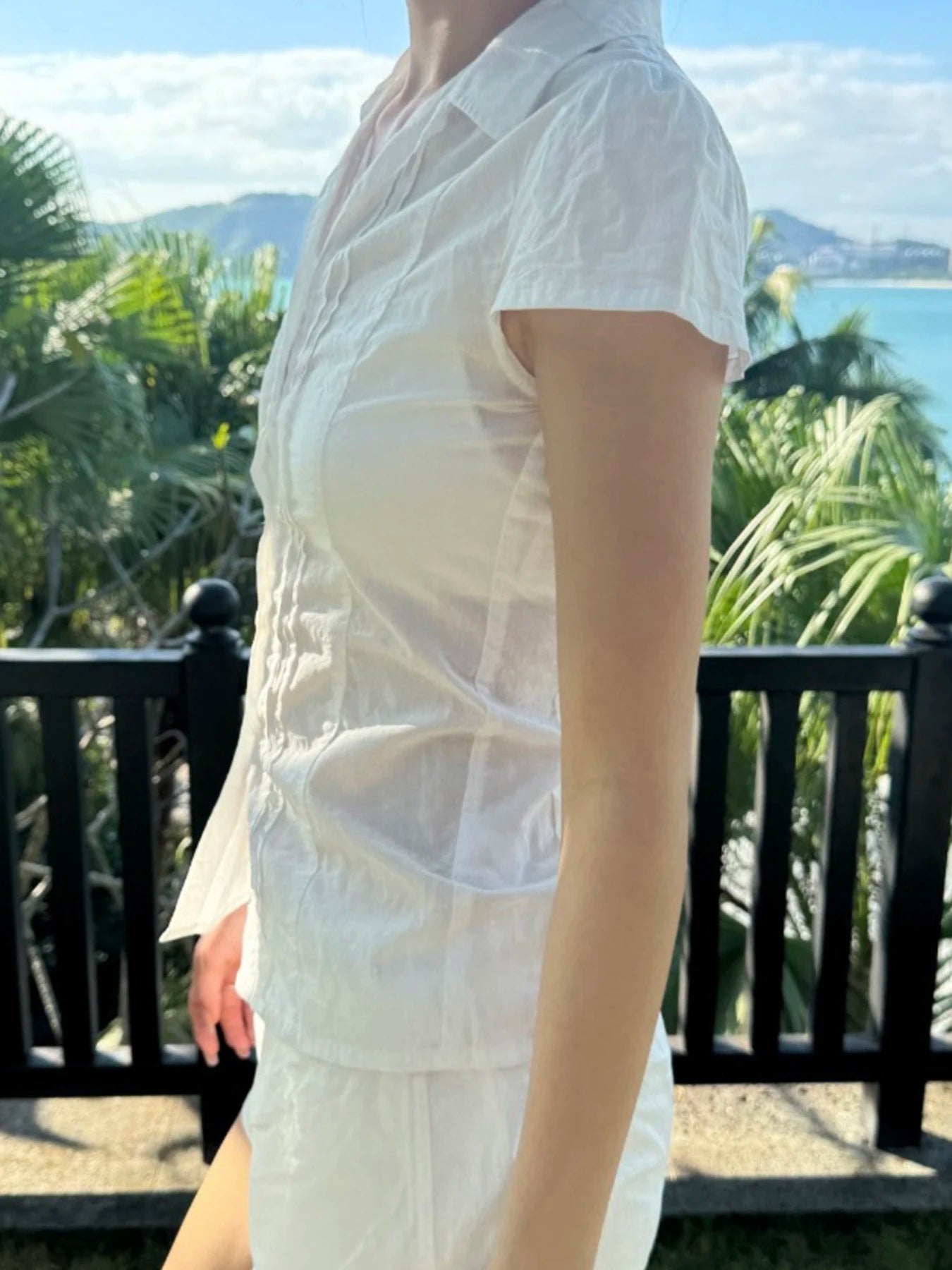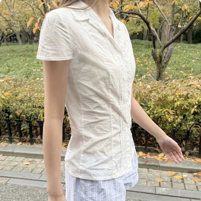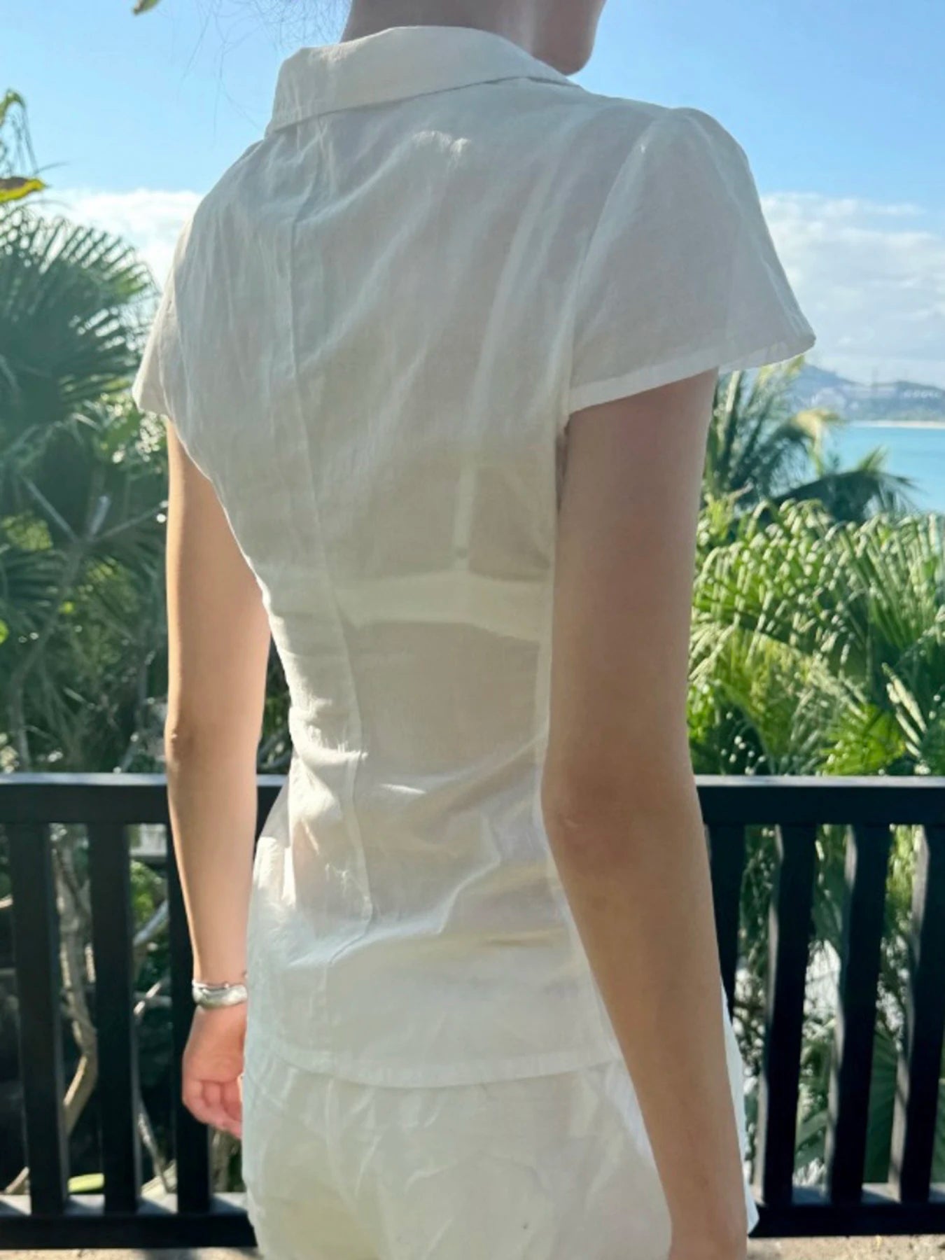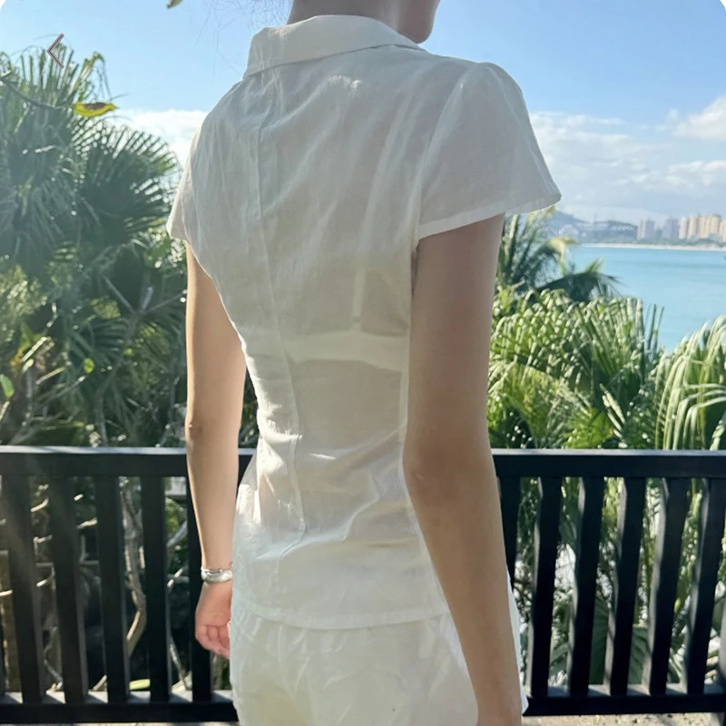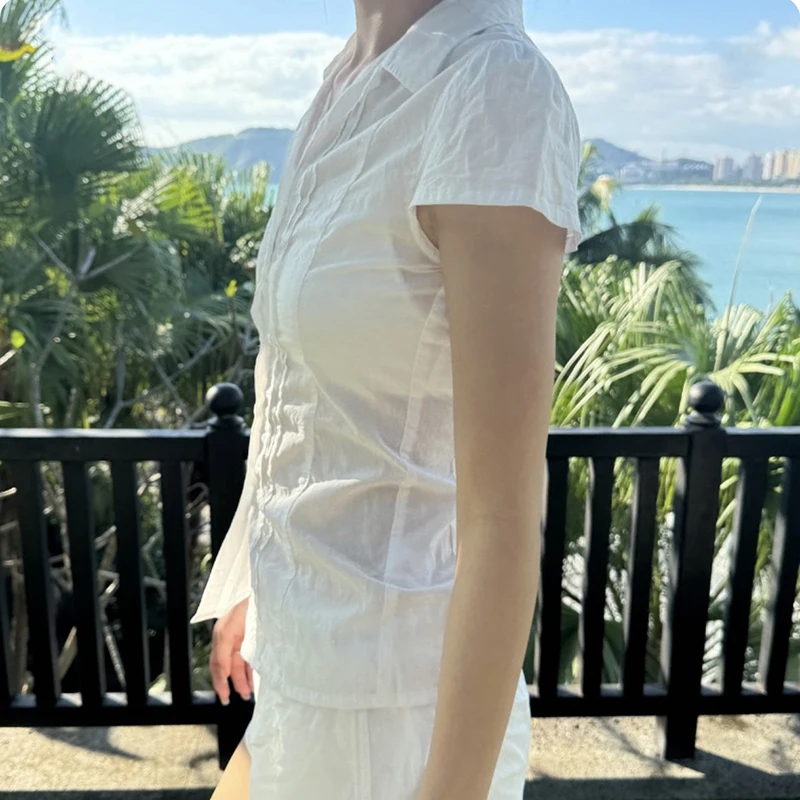 fashion Solid Lapel Button White Blouses Slim Classic Fashion Streetwear All-match Patchwork Tops Chic 90s Vintage Clothes