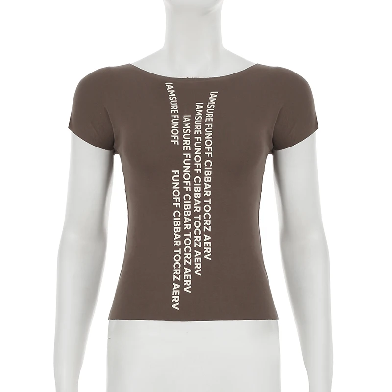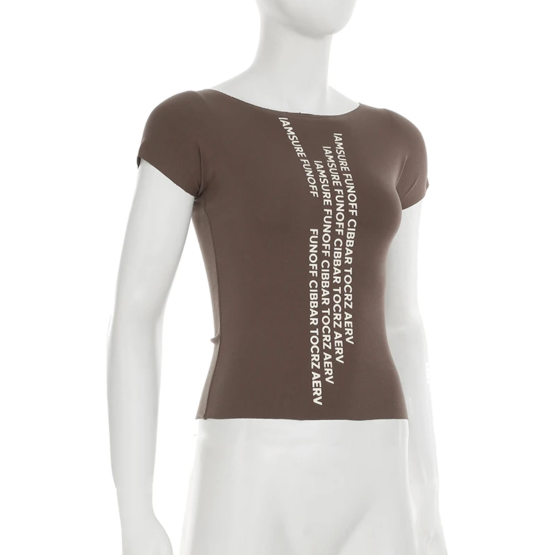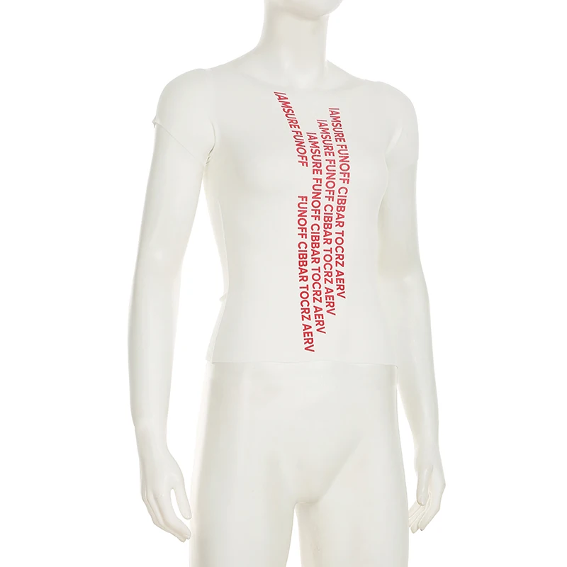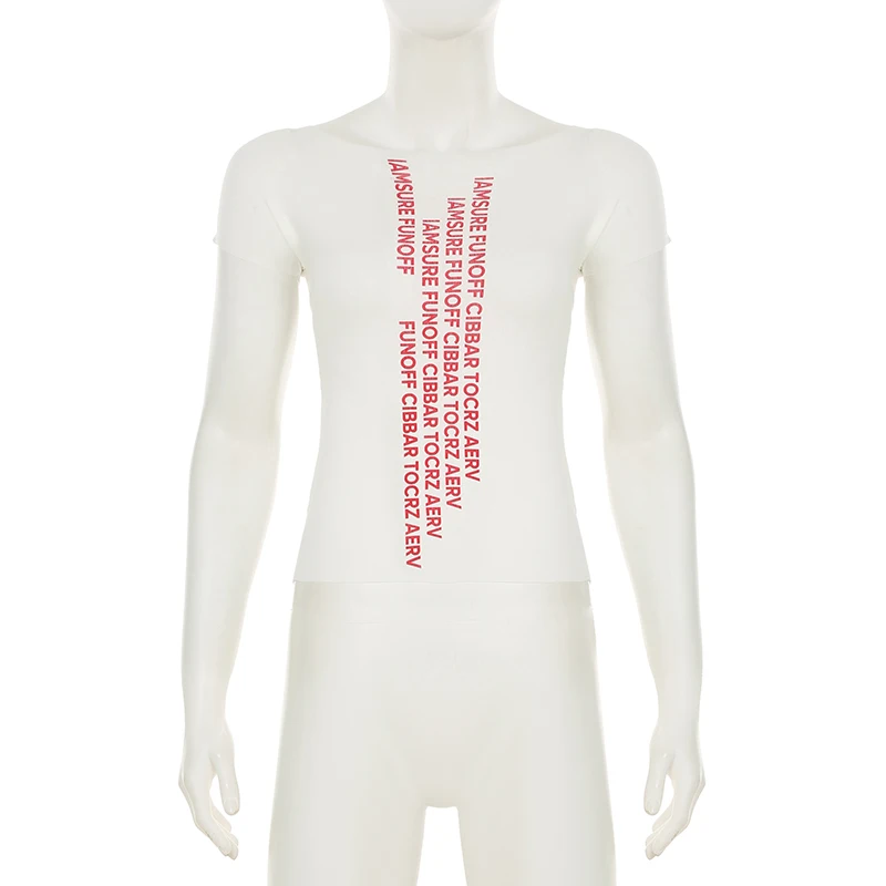 fashion Solid Slim Letter Print Women's Clothing Casual All-match Harajuku Fashion Basic Top Korean Aesthetic Clothings