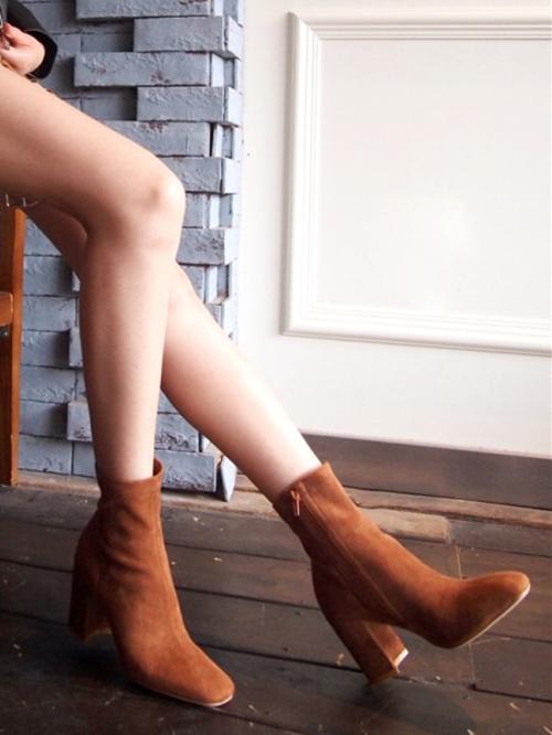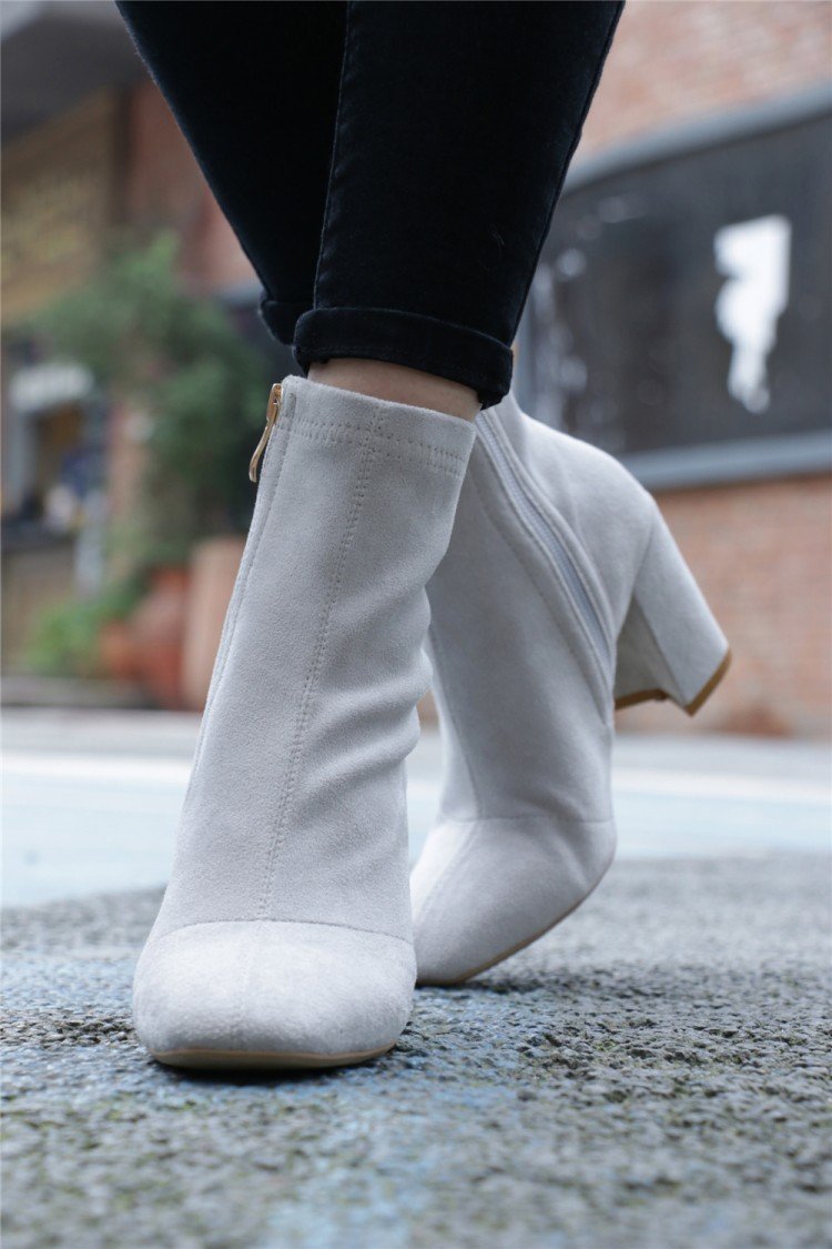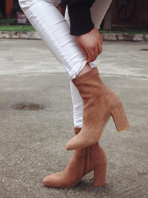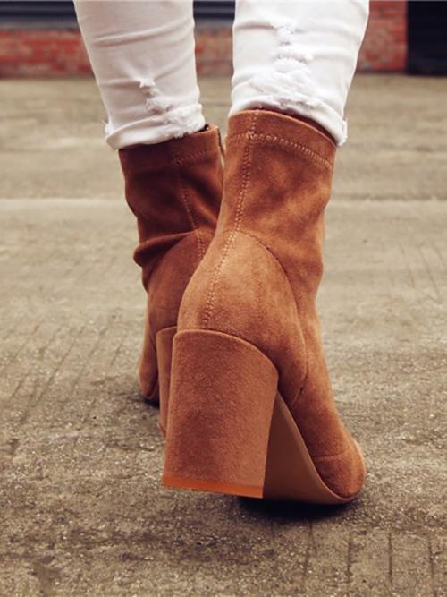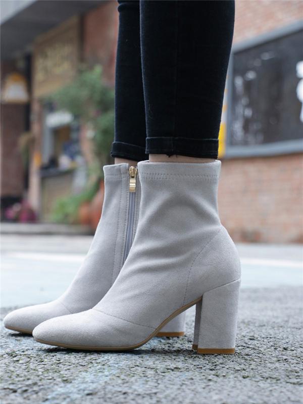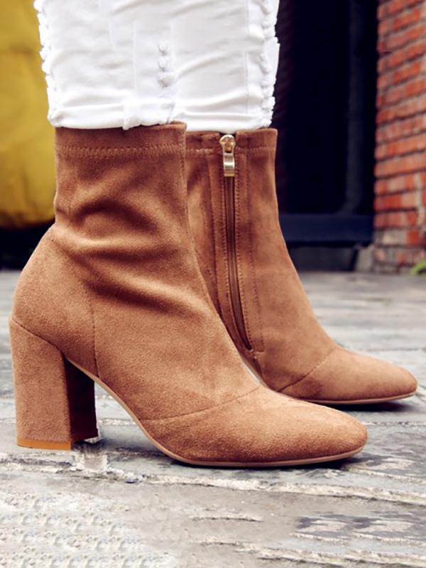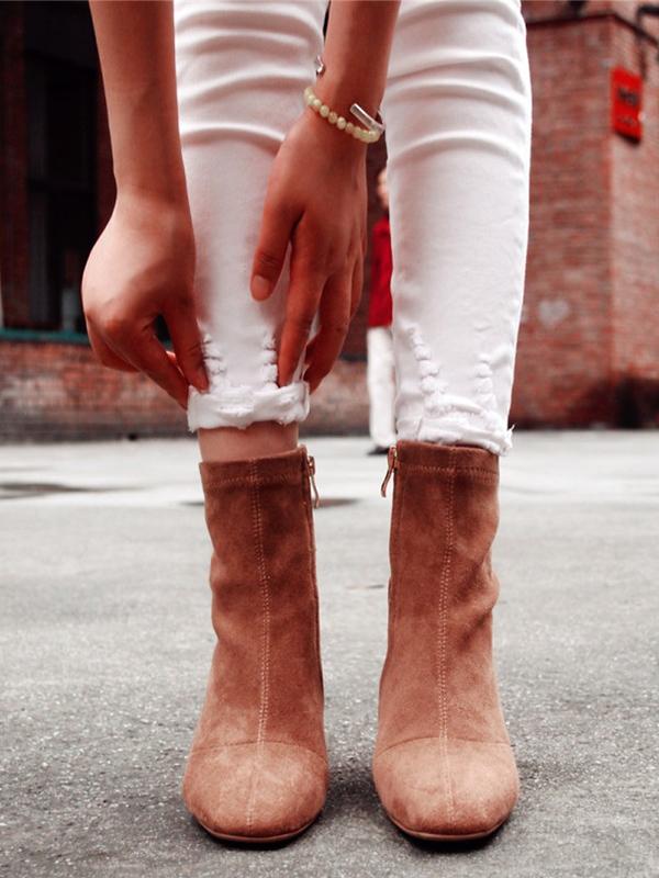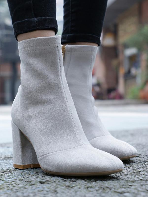 Fashion Solid Zipper Chunky Heel Martin Booties