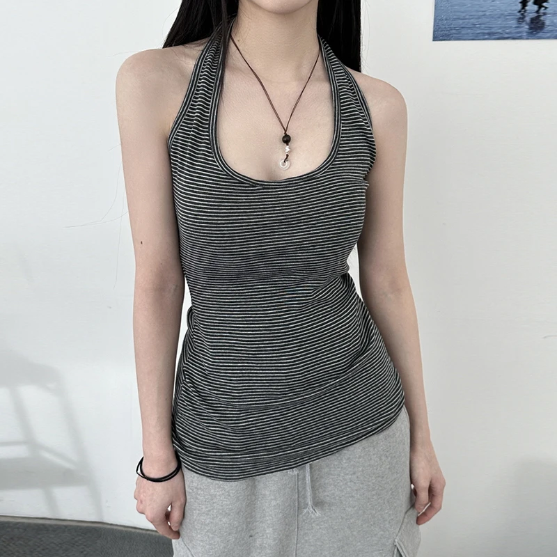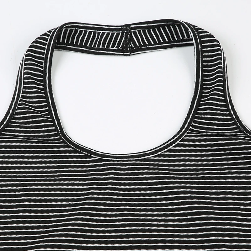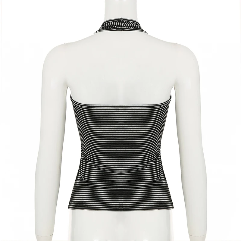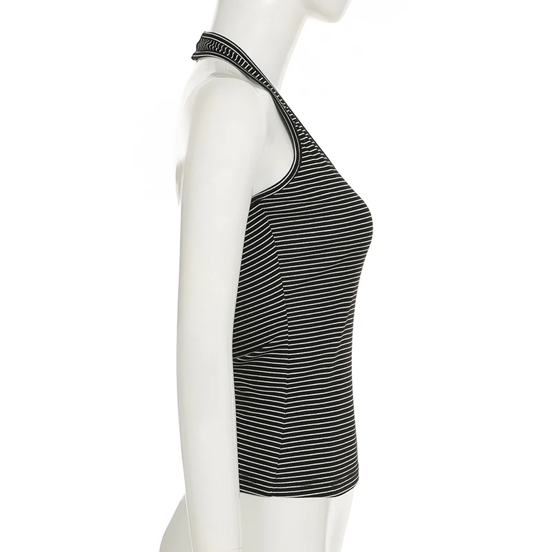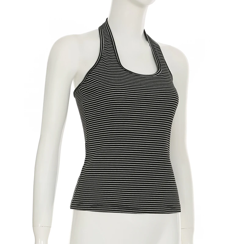 fashion Stripe Backless Sexy Halter Neck Bodycon Casual Sport Streetwear Hottie Camisole Summer Vintage Sleeveless Tops