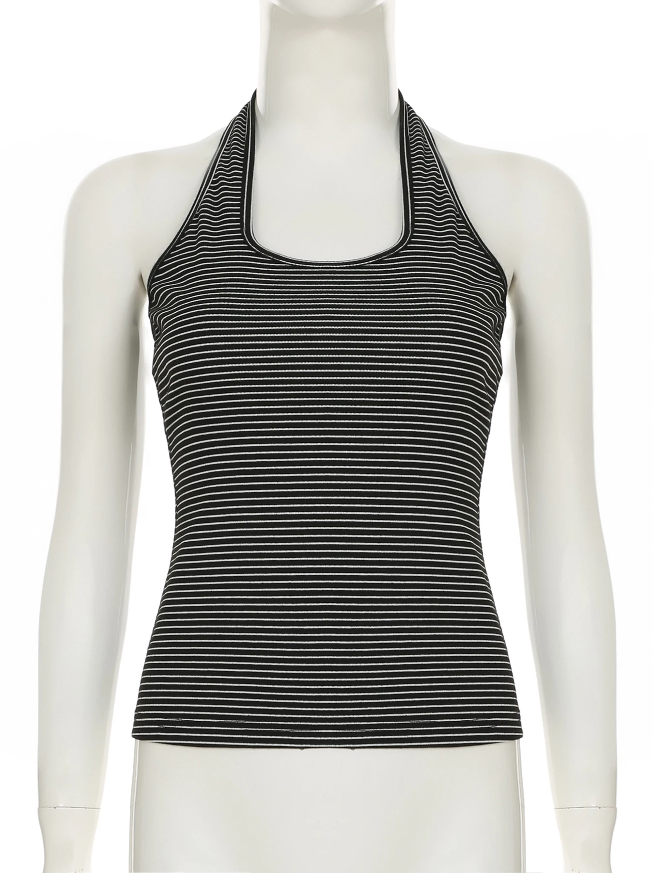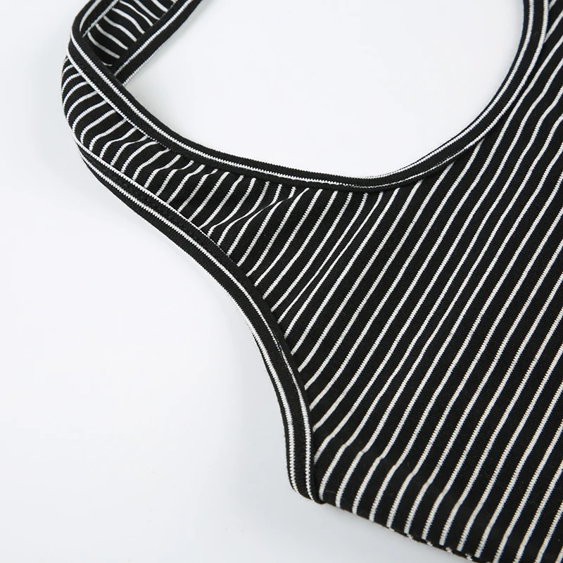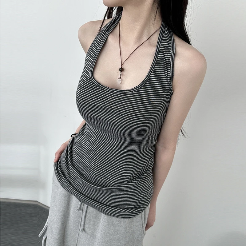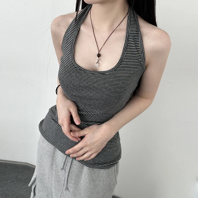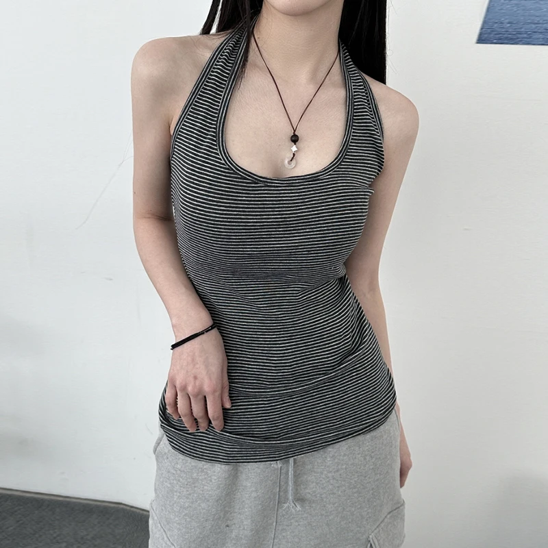 fashion Stripe Backless Sexy Halter Neck Bodycon Casual Sport Streetwear Hottie Camisole Summer Vintage Sleeveless Tops