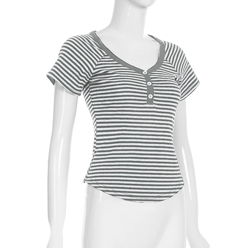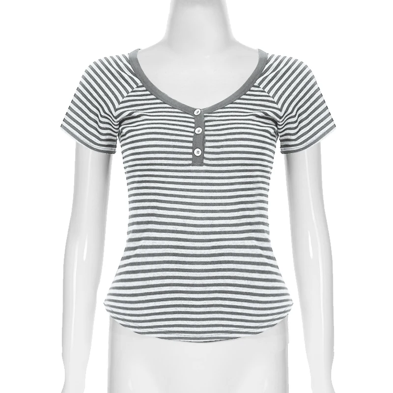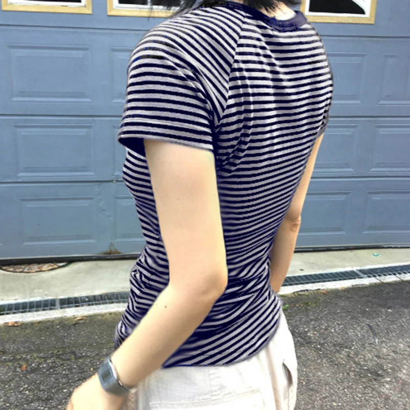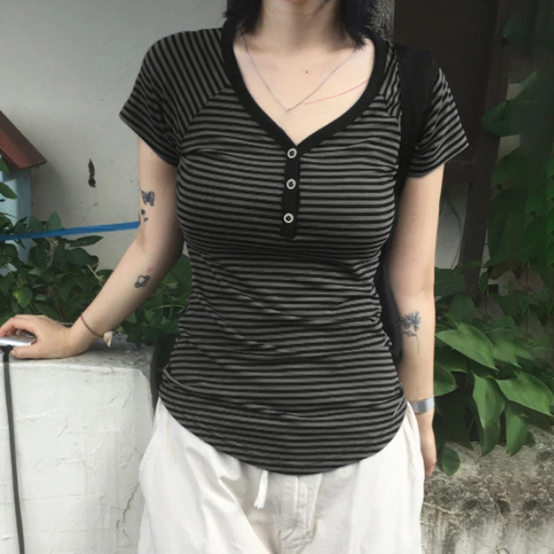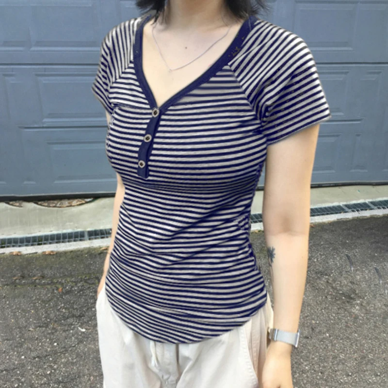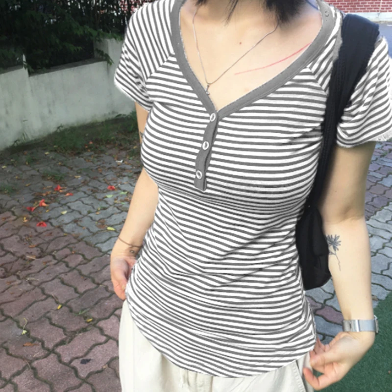 fashion Striped Print Buttons Up Women's Tops Fashion Streetwear Chic Aesthetic Korean Shirts Flare Sleeves Chic Tops