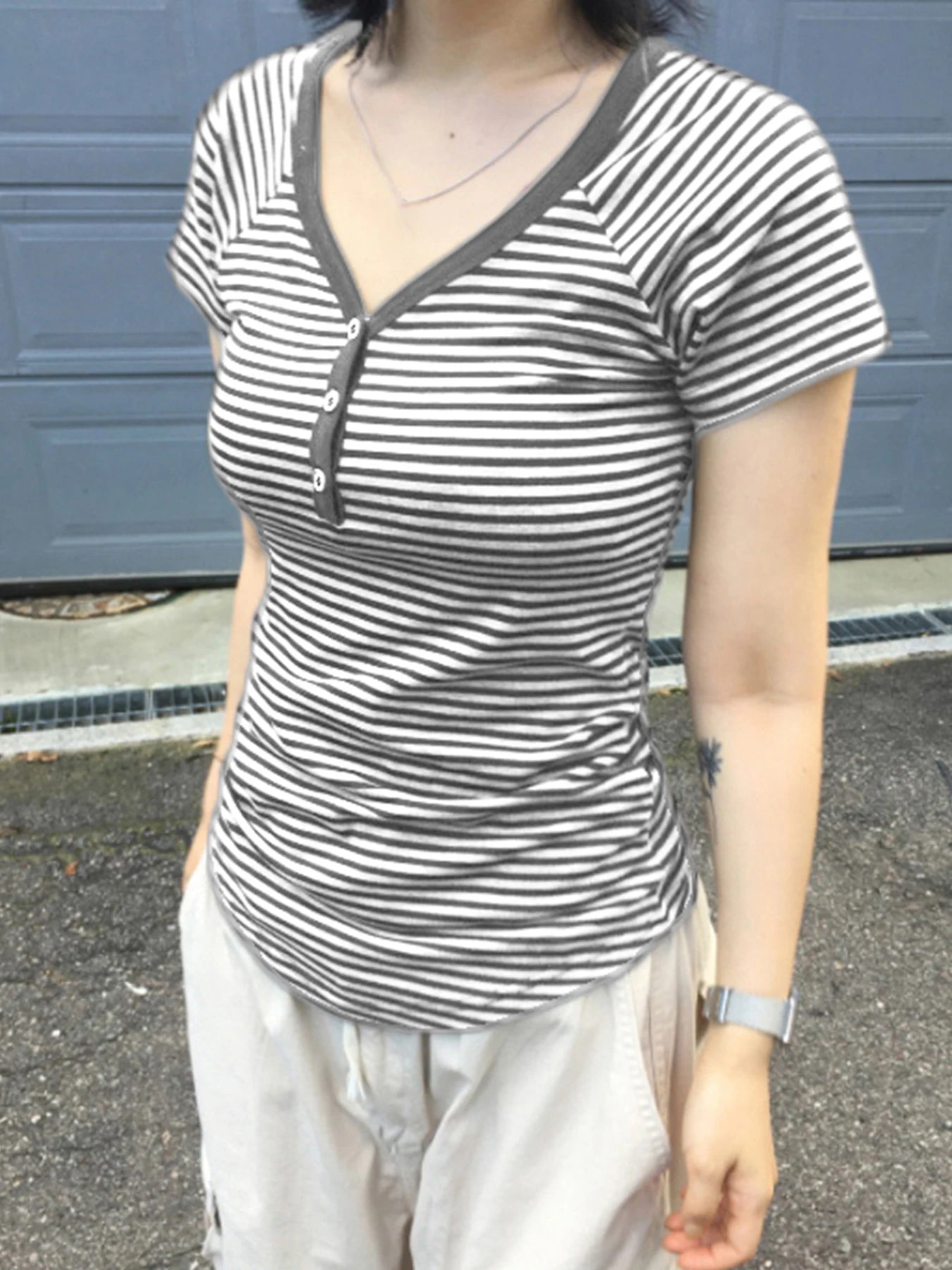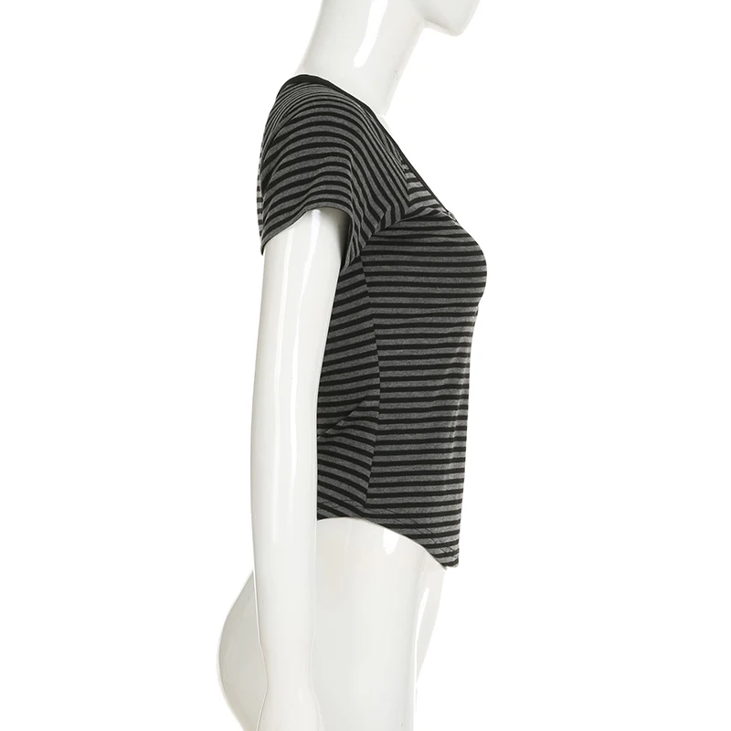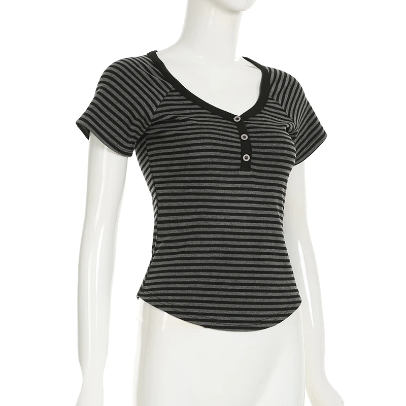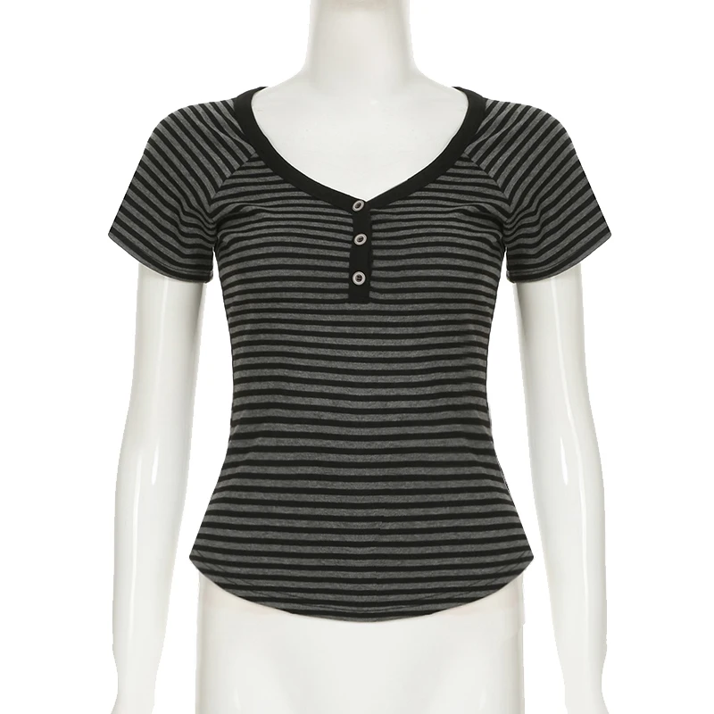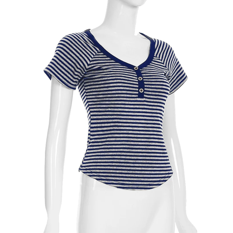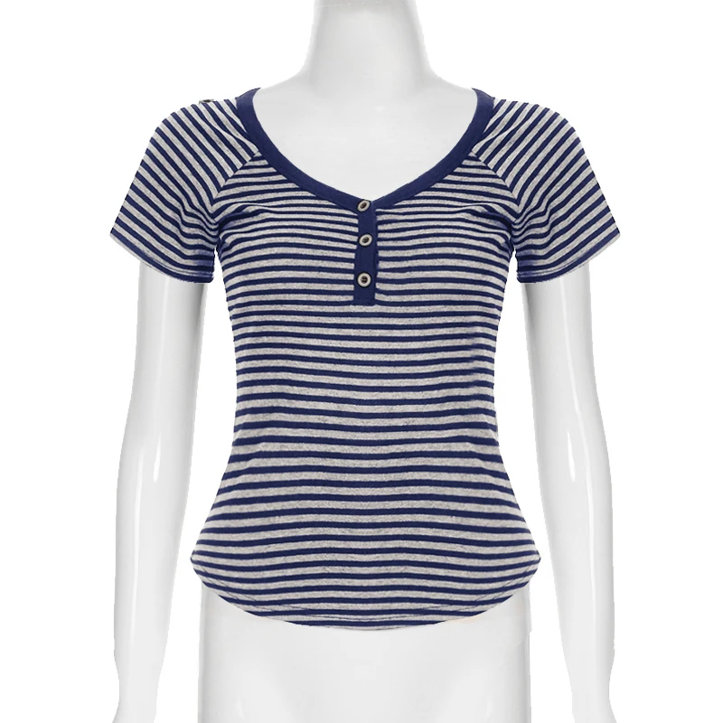 fashion Striped Print Buttons Up Women's Tops Fashion Streetwear Chic Aesthetic Korean Shirts Flare Sleeves Chic Tops