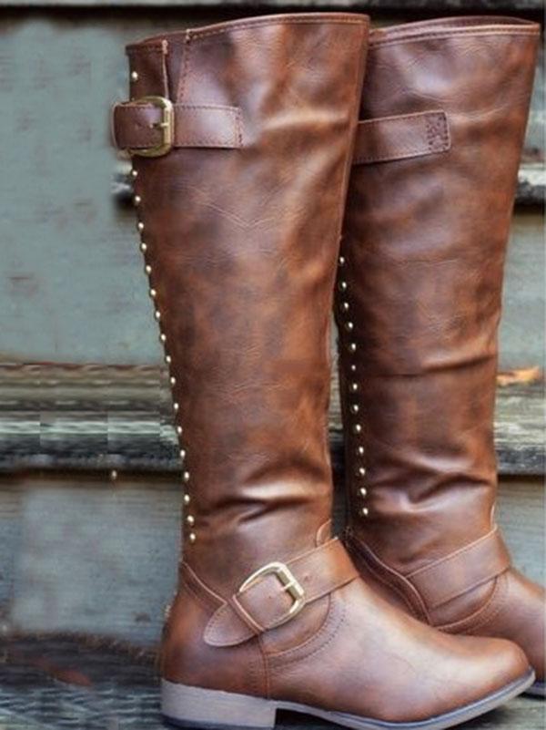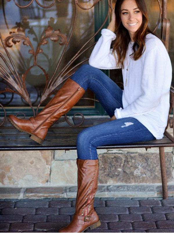 Fashion Thigh-high Rivet Low-heel Zipper Boots Shoes