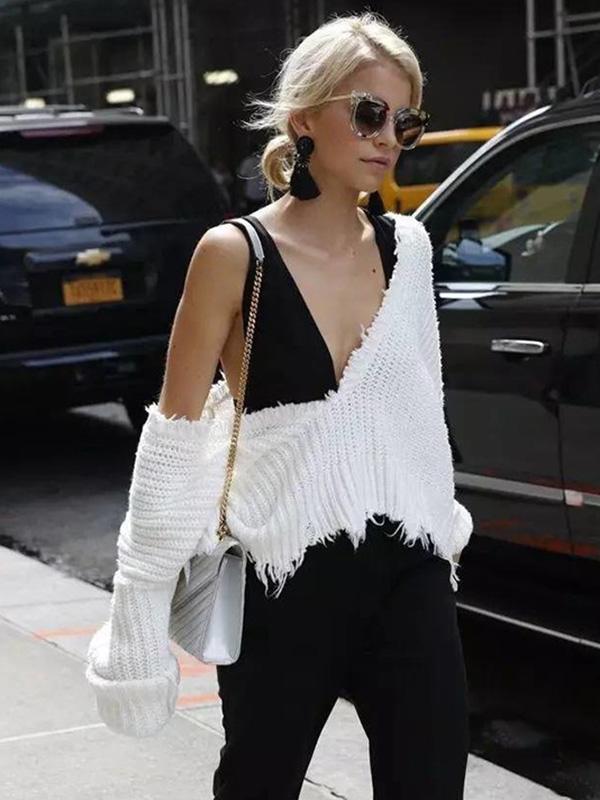 Fashion V-neck Backless Knitting Sweater Tops