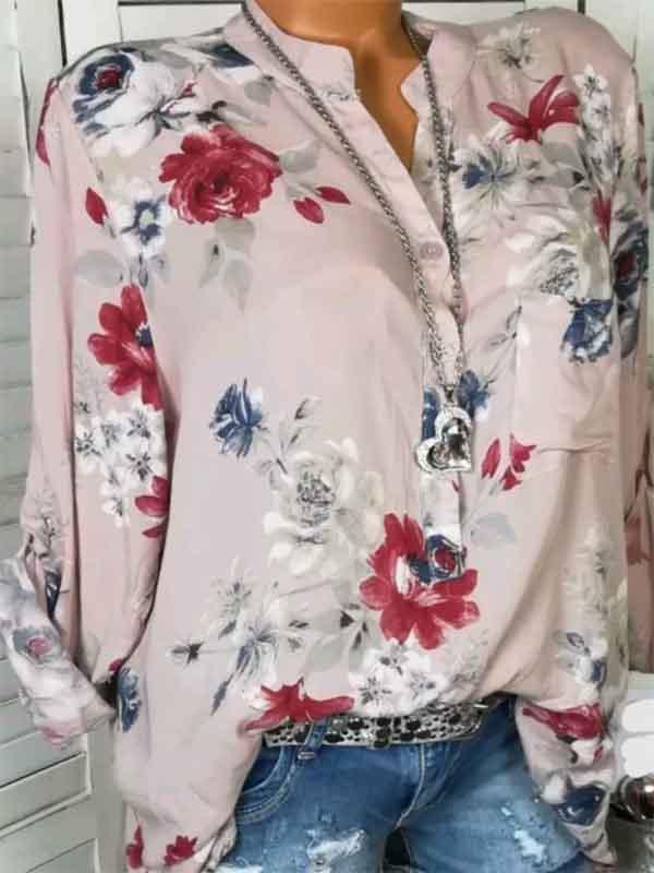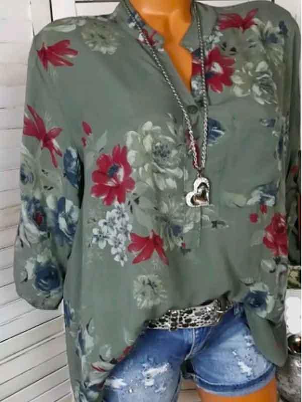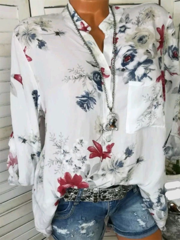Fashion V-neck Floral Long Sleeves Blouses&shirts Tops
