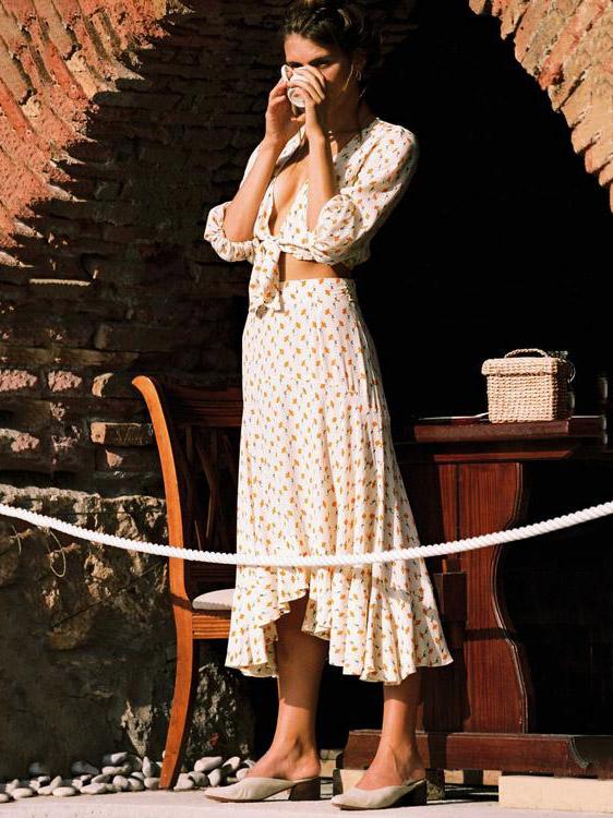 Fashion V-neck Tall Waist Printing Suits