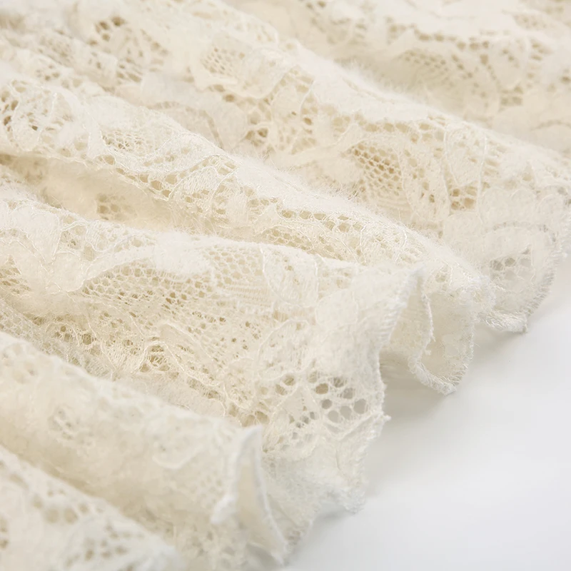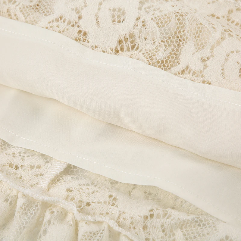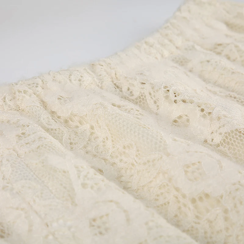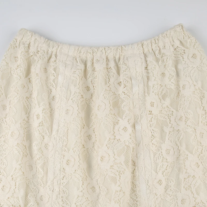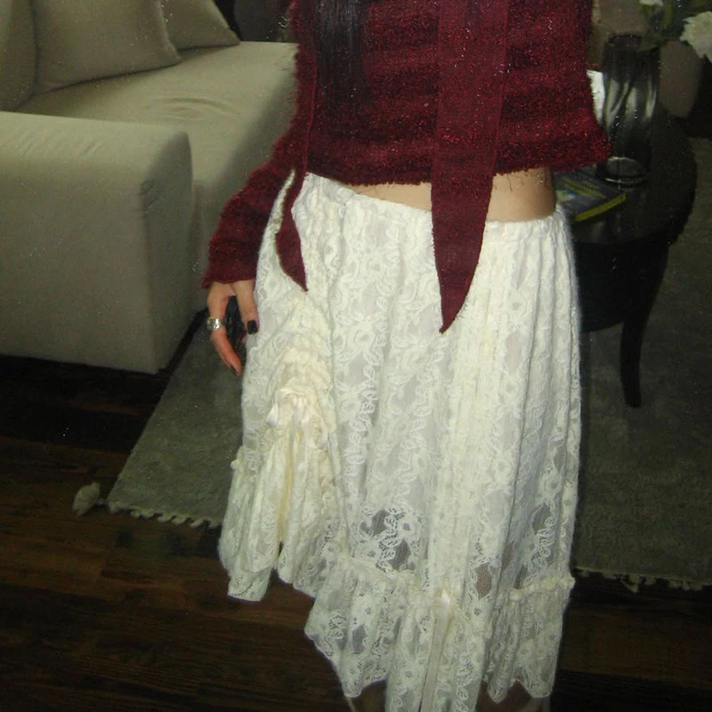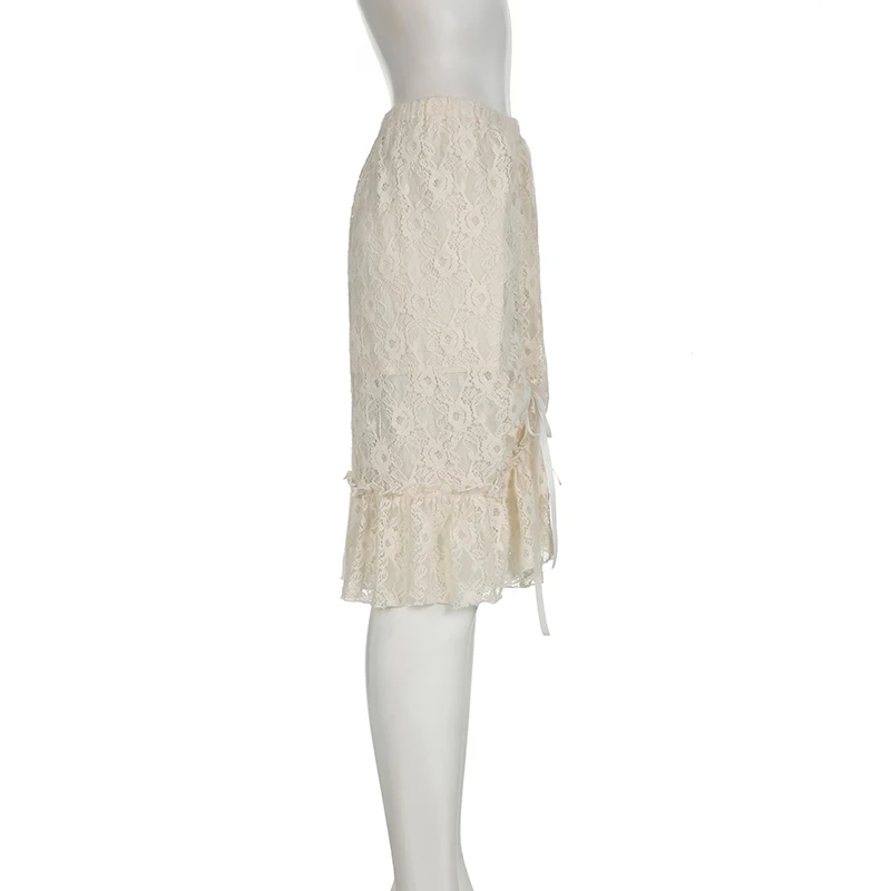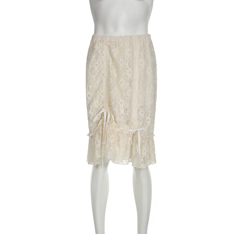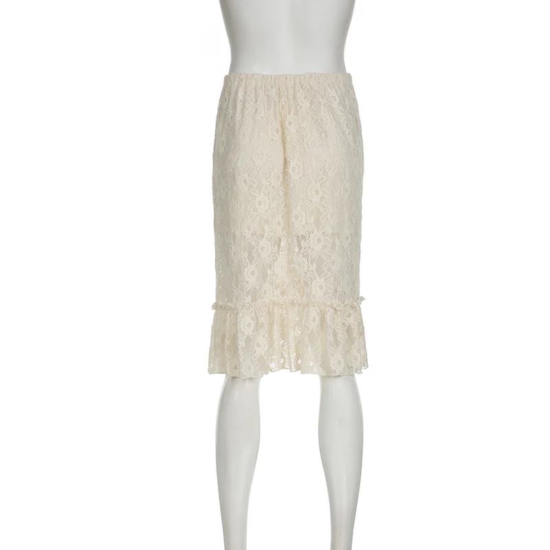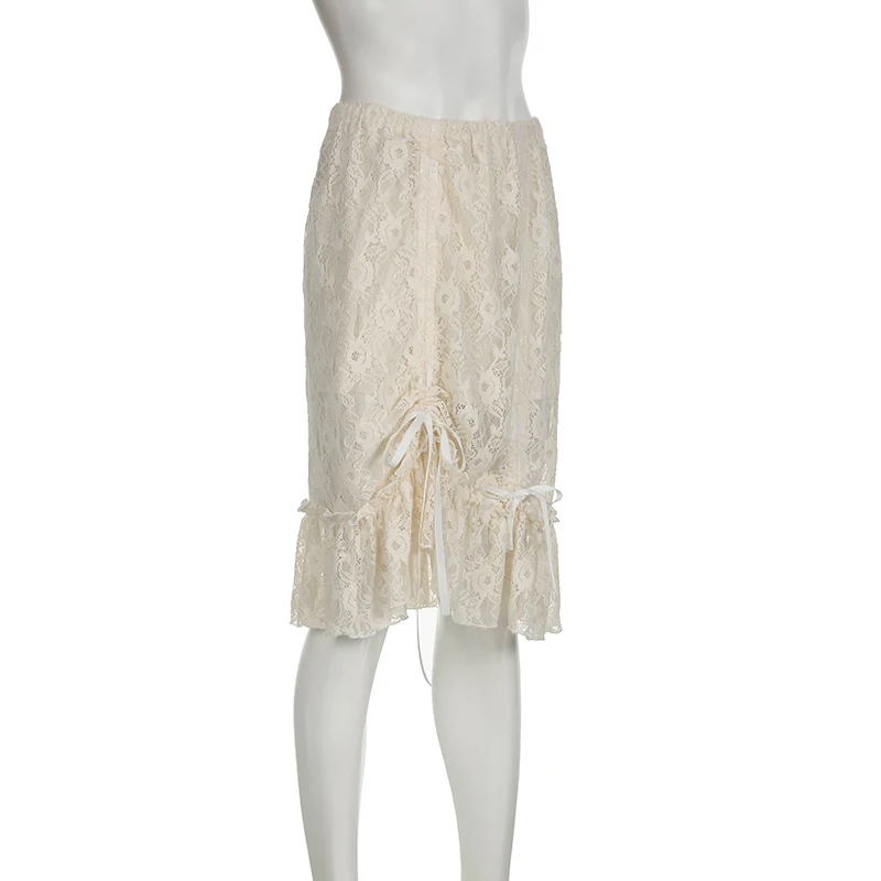 fashion Vintage Shirring Long Skirts Y2K Aesthetic Chic Knee-Length Outfits Streetwear Casual Solid Lace Fashion Bottoms