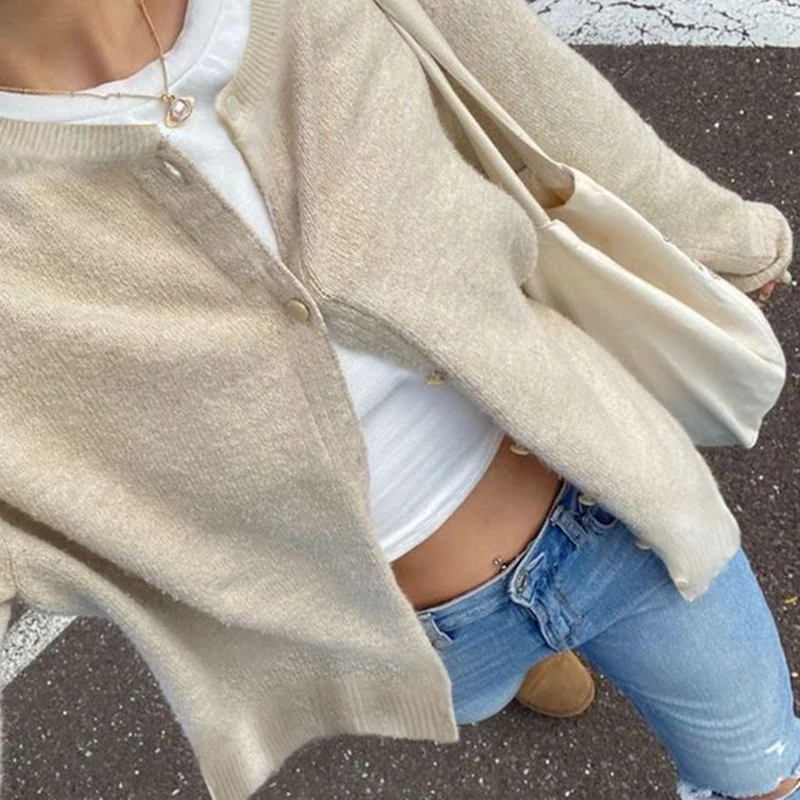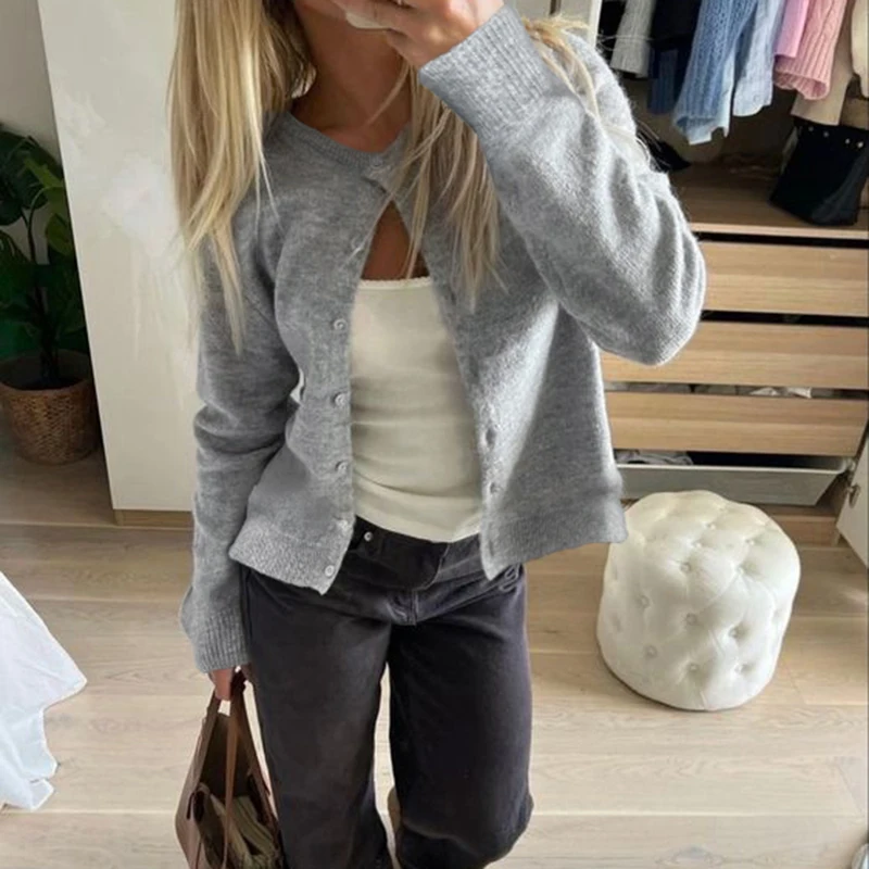 fashion Y2K Solid Aesthetic Cardigans All-match Single-breasted Chic Knit Coats Fashion Casual Korean Cute Women's Sweater