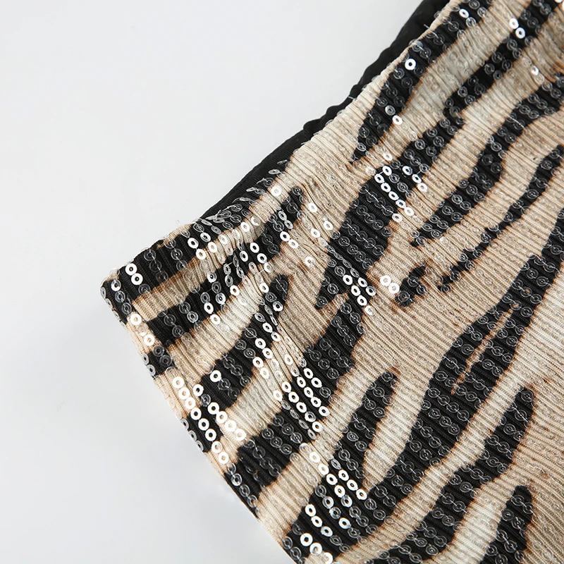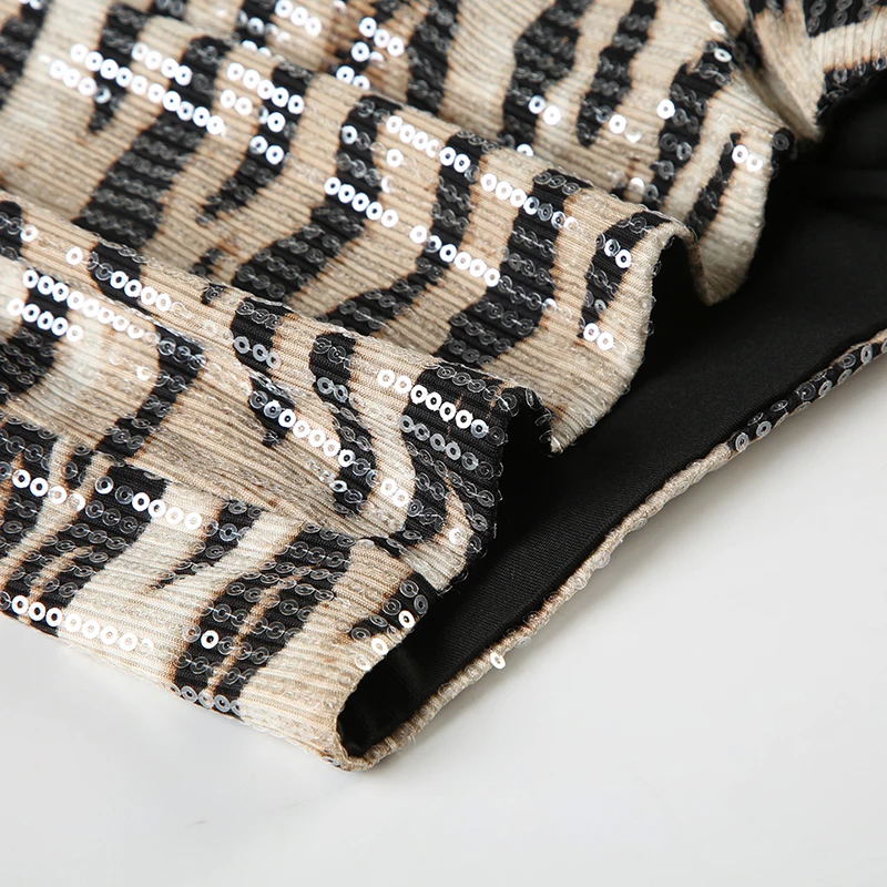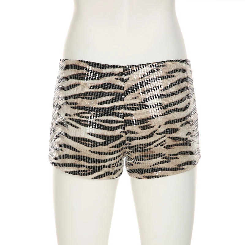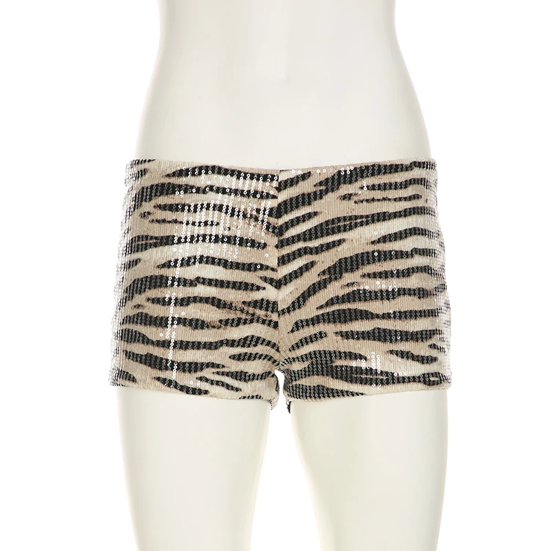 fashion Zebra Striped Sequined Shorts Chic Aesthetic Skinny Waist Bottoms Casual Fashion Pants Knitted Women's Outfits