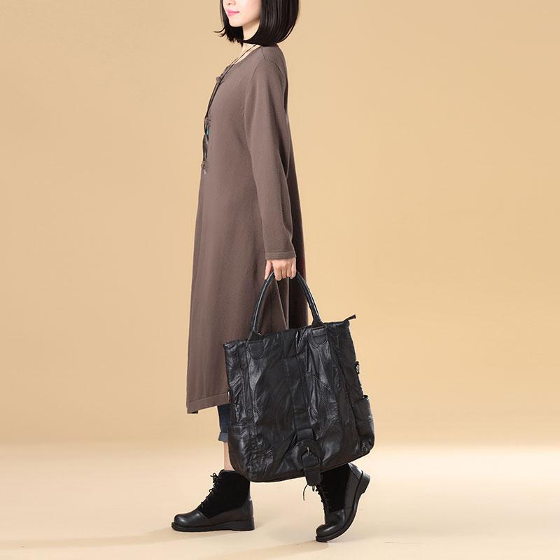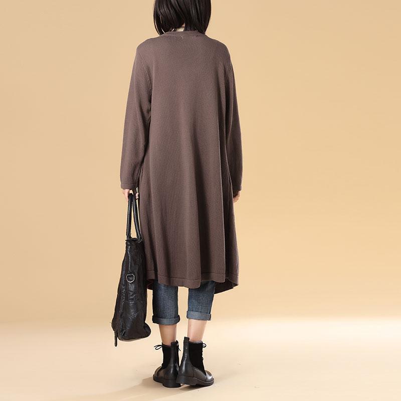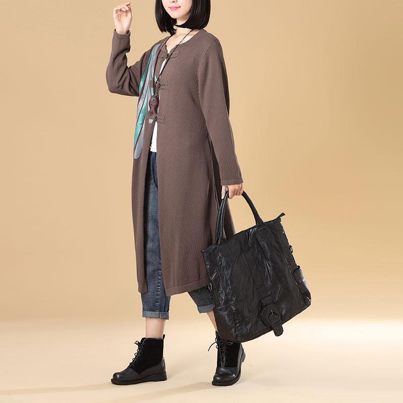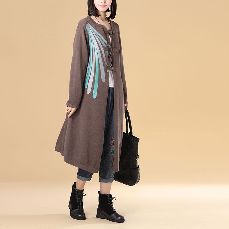 Women Patchwork Printing Coffee Cardigan Knitted Sweater Coat