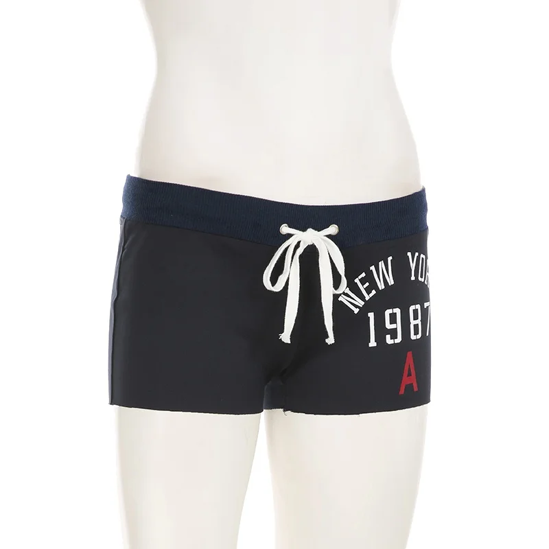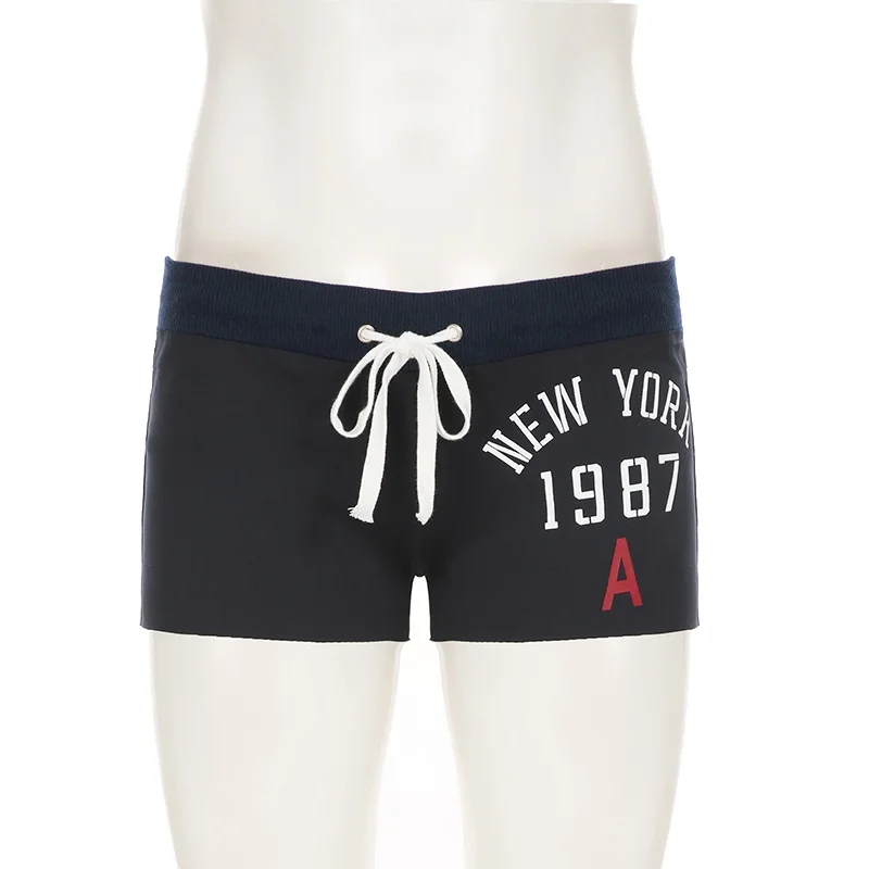 fashionAesthetic Letter Print Lace-up Shorts Low Waisted Hottie Sexy Slim Chic Vintage Streetwear Clothes Summer Bottoms