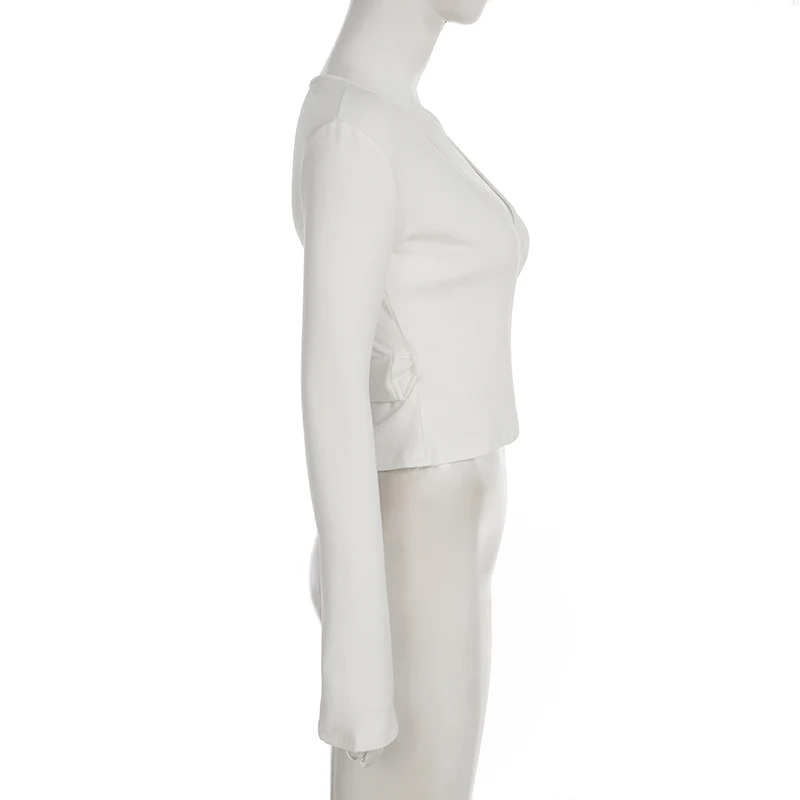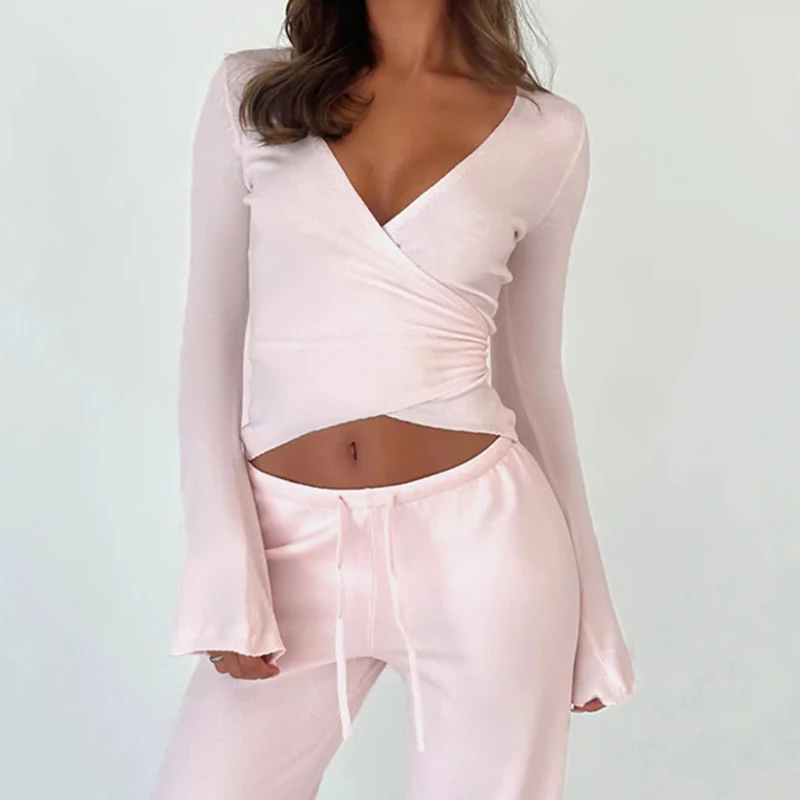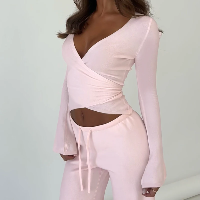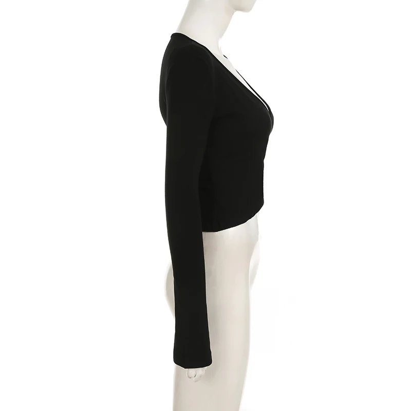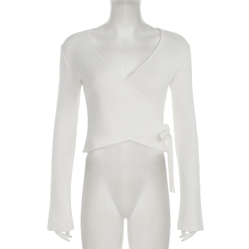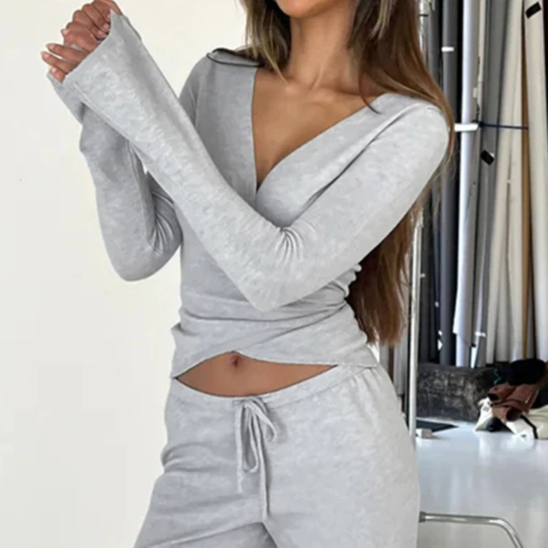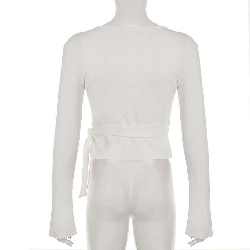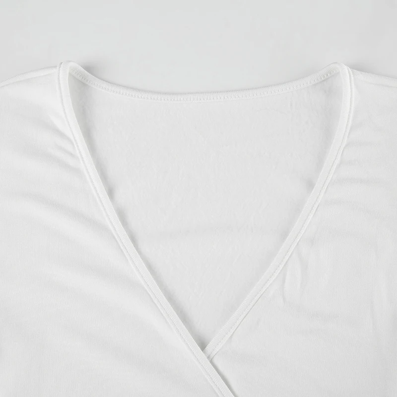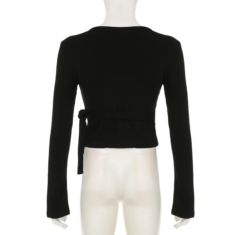 fashionBasic Solid Slim Lace-up Tee Shirts Long Sleeves V-neck Casual Chic Clothes Sporty Streetwear Four Color Knit Tops