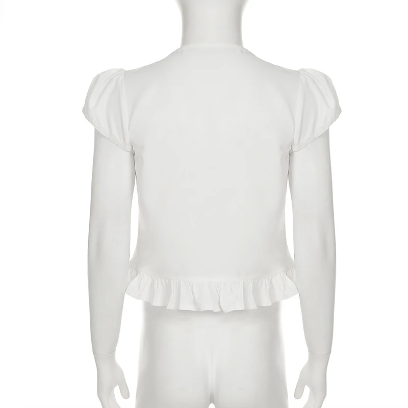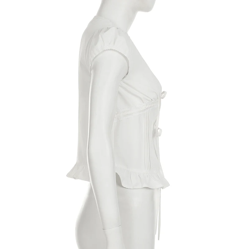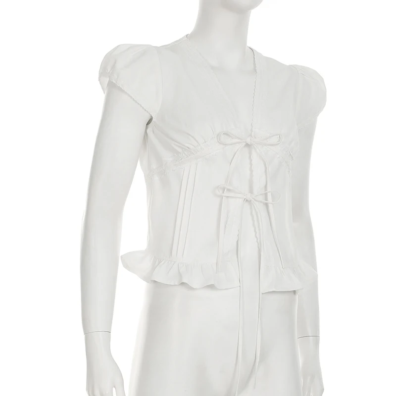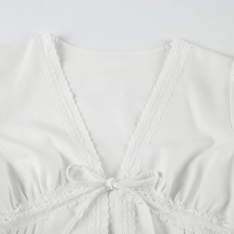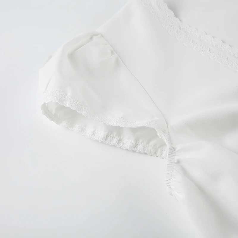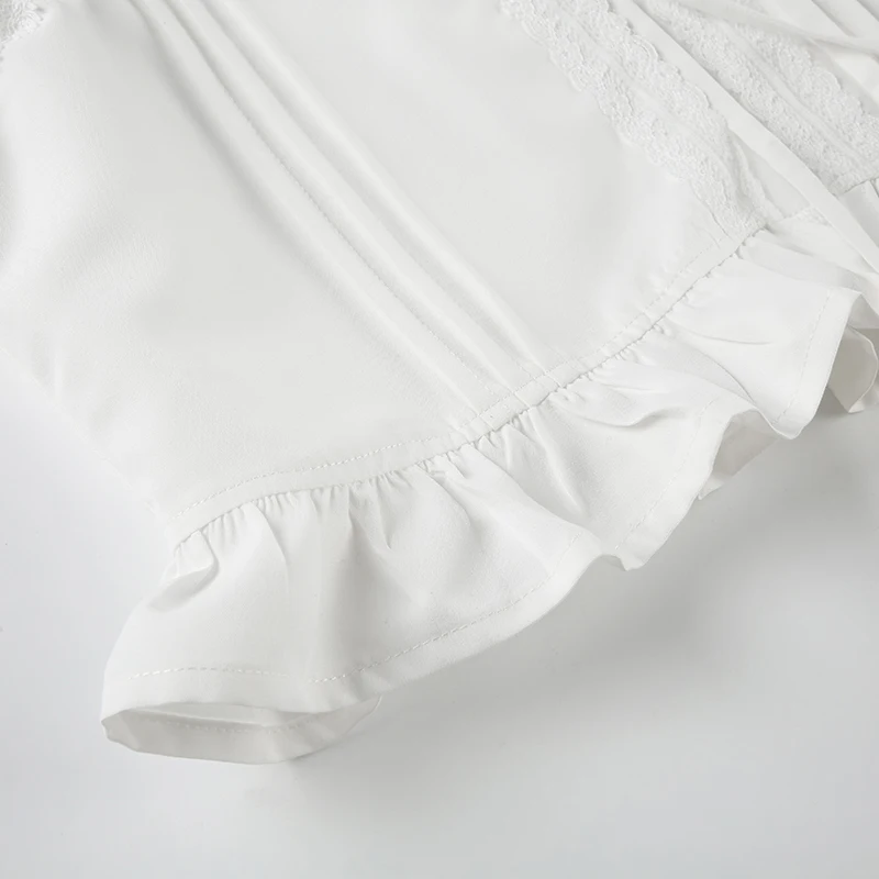 fashionCute Sexy Lace Patchwork Shirt Deep V-neck Casual White Slim Clothes Sleeveless Fashionable Women's Top