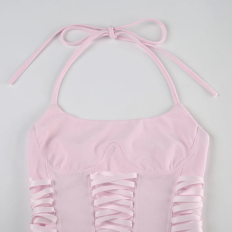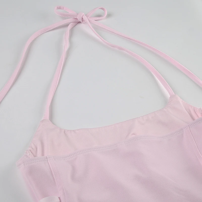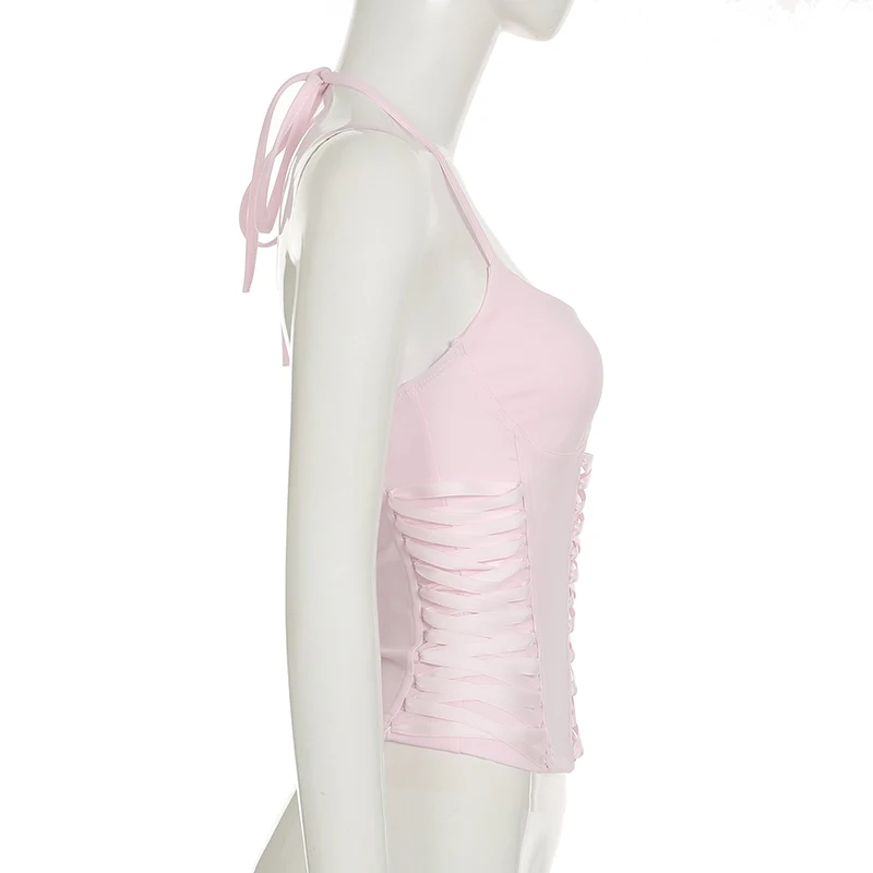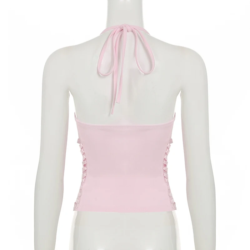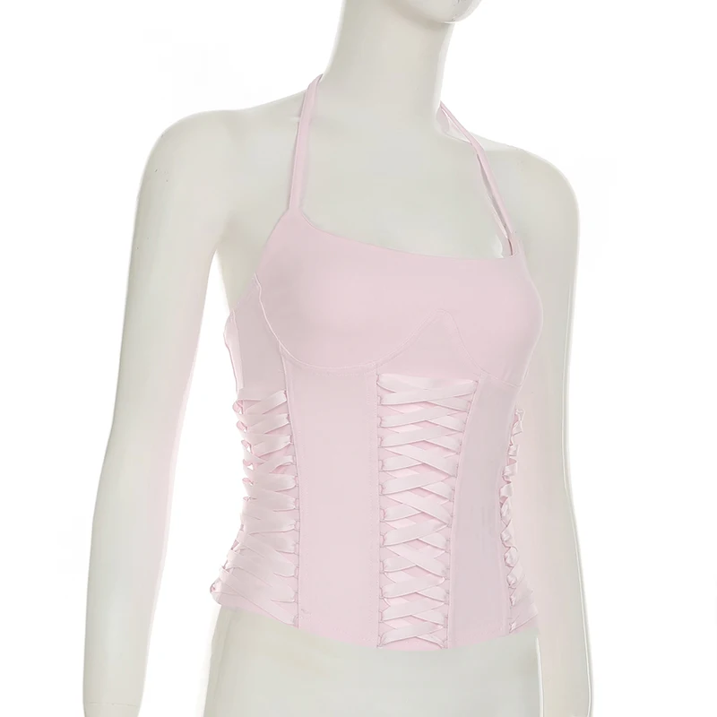 fashionFashion Halter Backless Solid Tops Bandage Basic Sexy Streetwear Slim Chic Vest Casual 90s Y2k Vacation Outfits