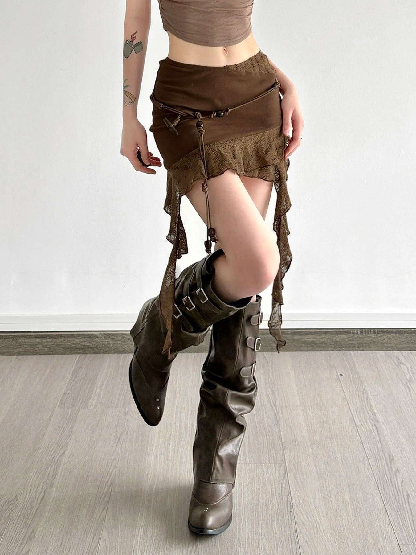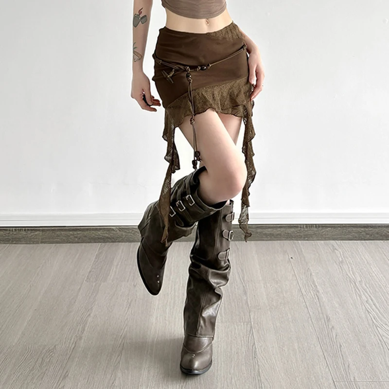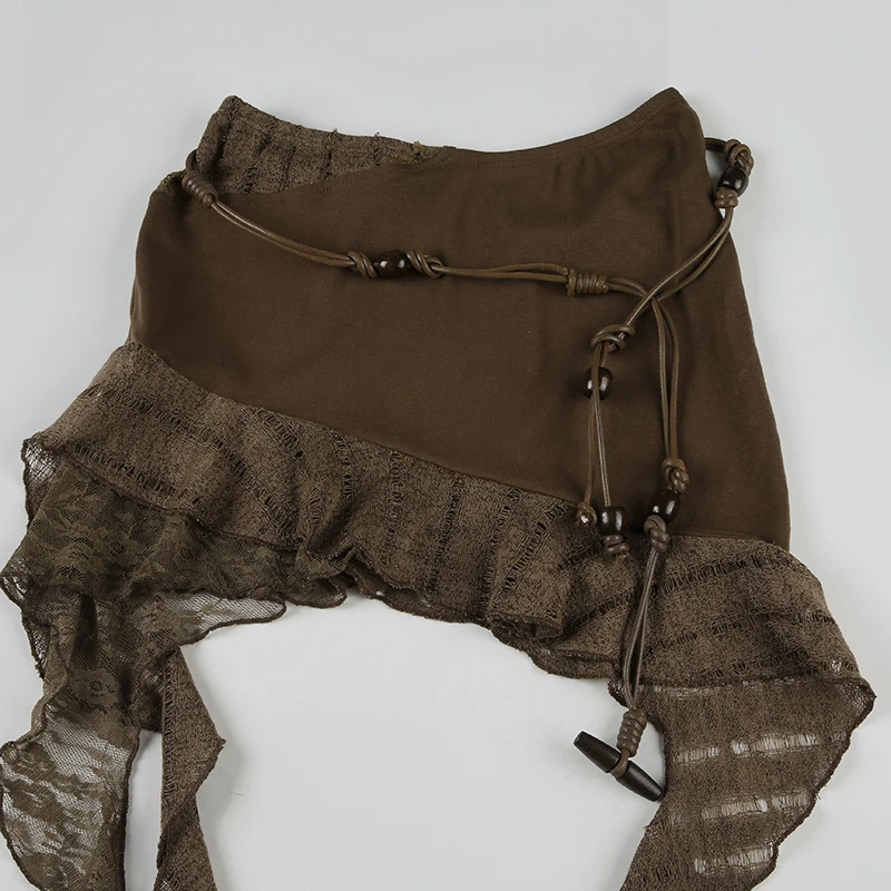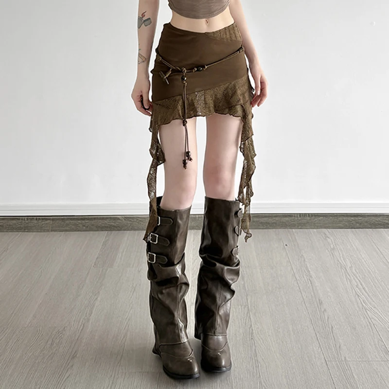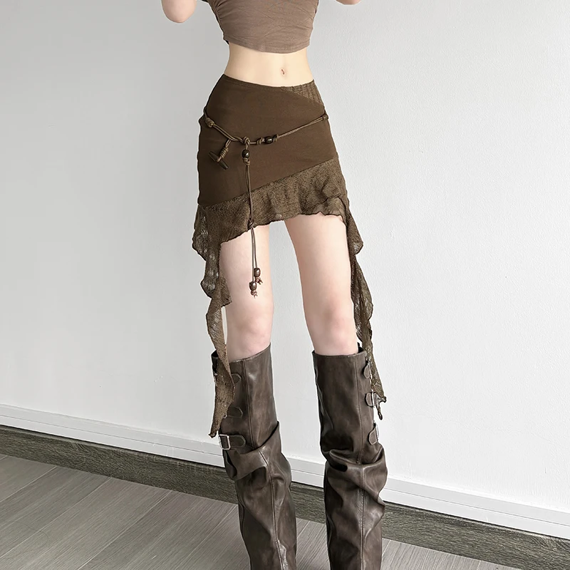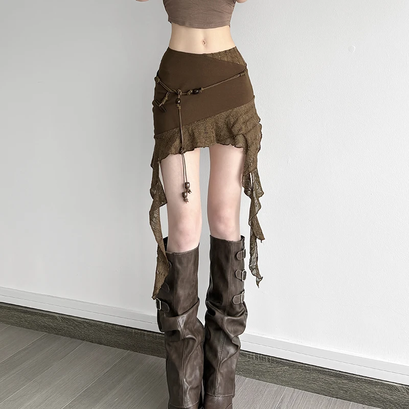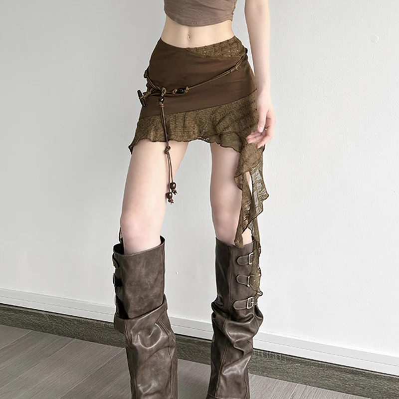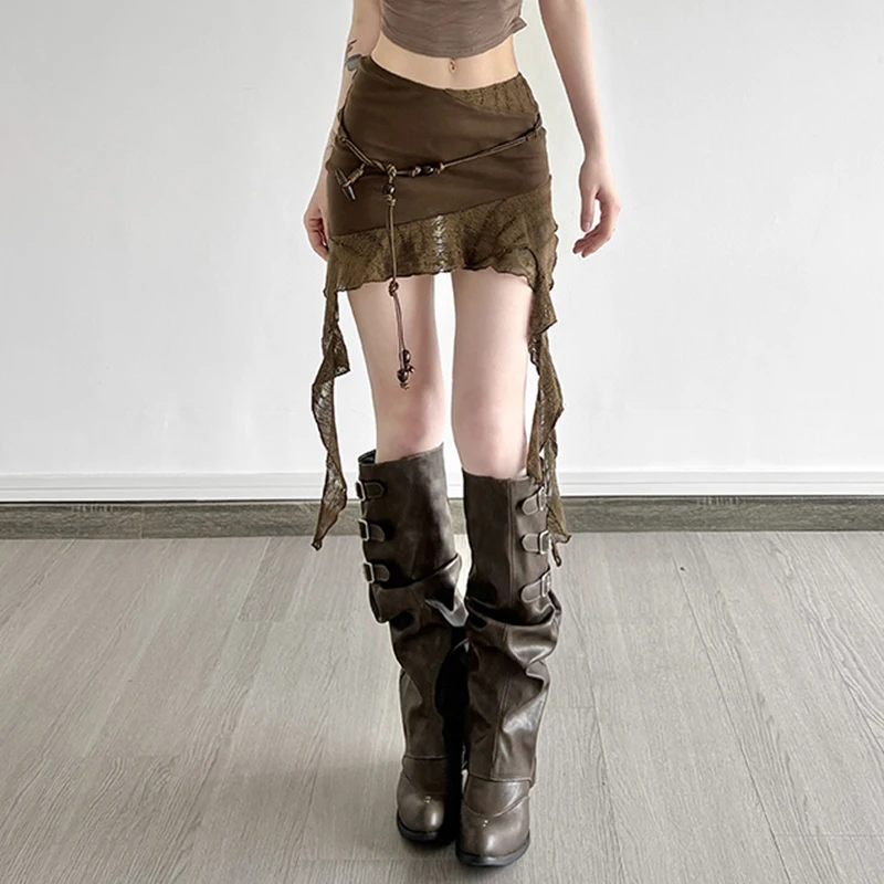 fashionIrregular Mesh Patchwork Belt Skirts Chic Fashion Vintage Retro Sexy Harajuku Clothings Hottie High Street Bottoms