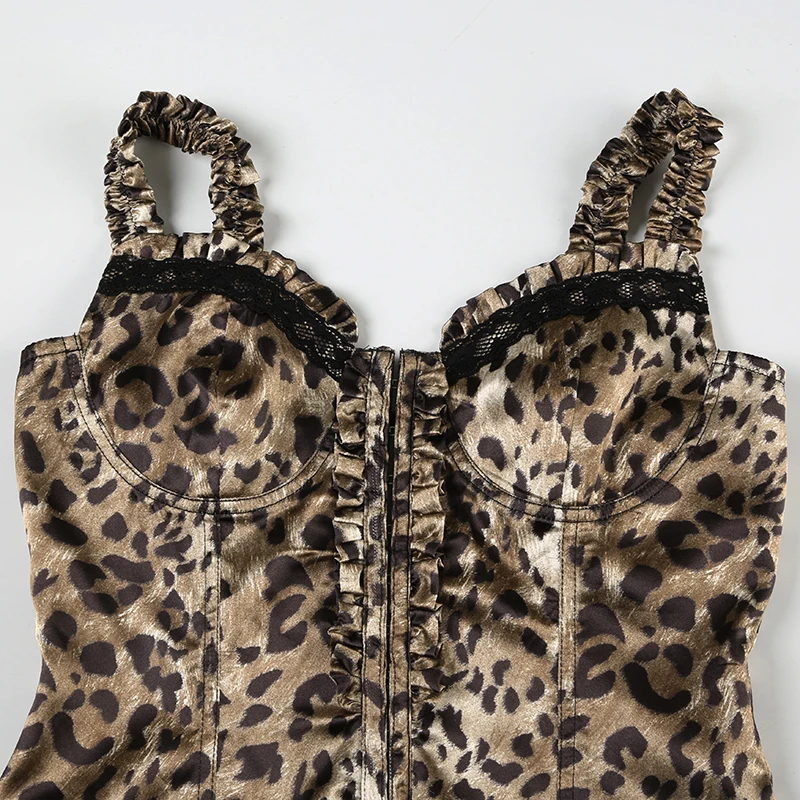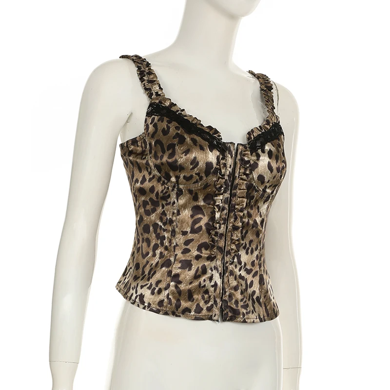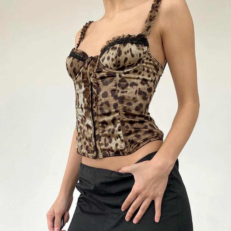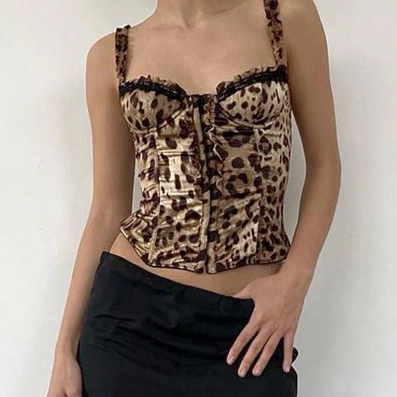 fashionLeopard Sexy Hottie Patchwork Camisole Slim Chic Crop Vintage Retro Y2k 90s Top Aesthetic Classic Bodycon Bustiers