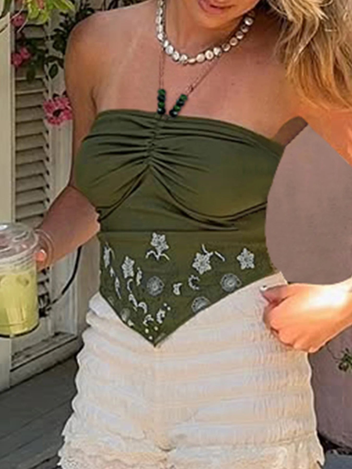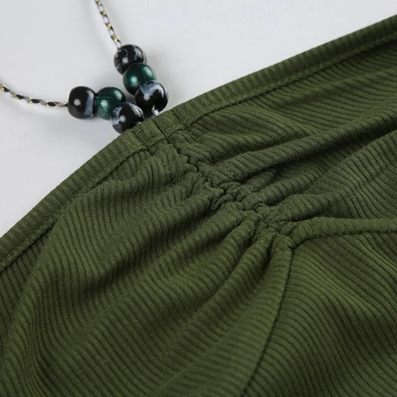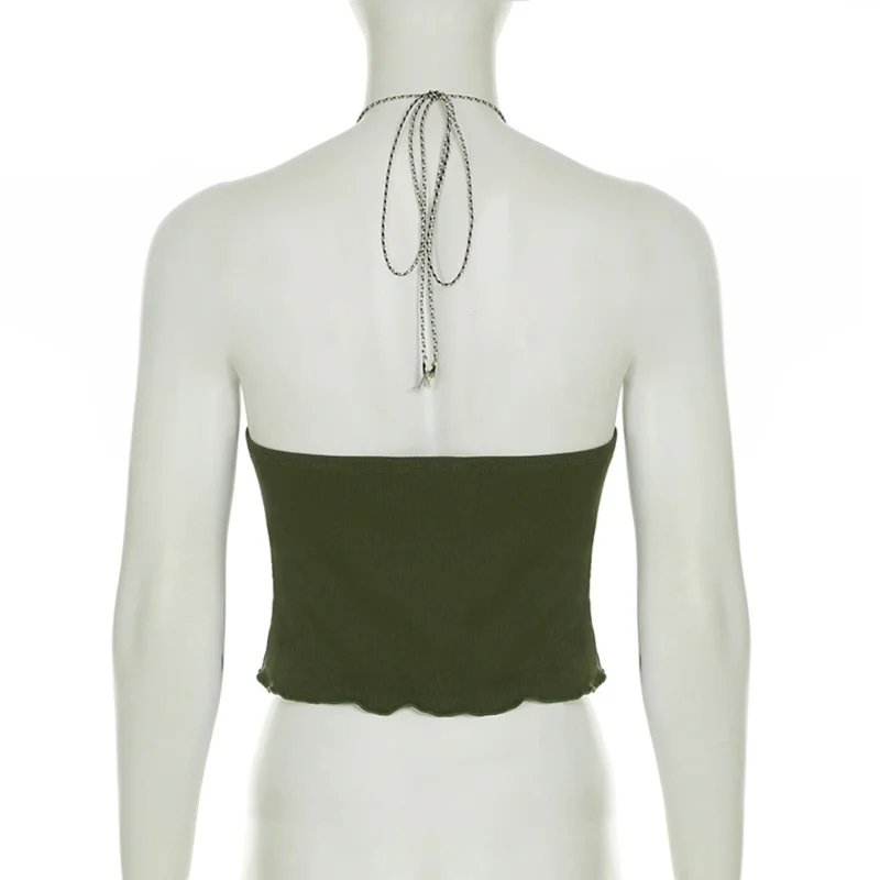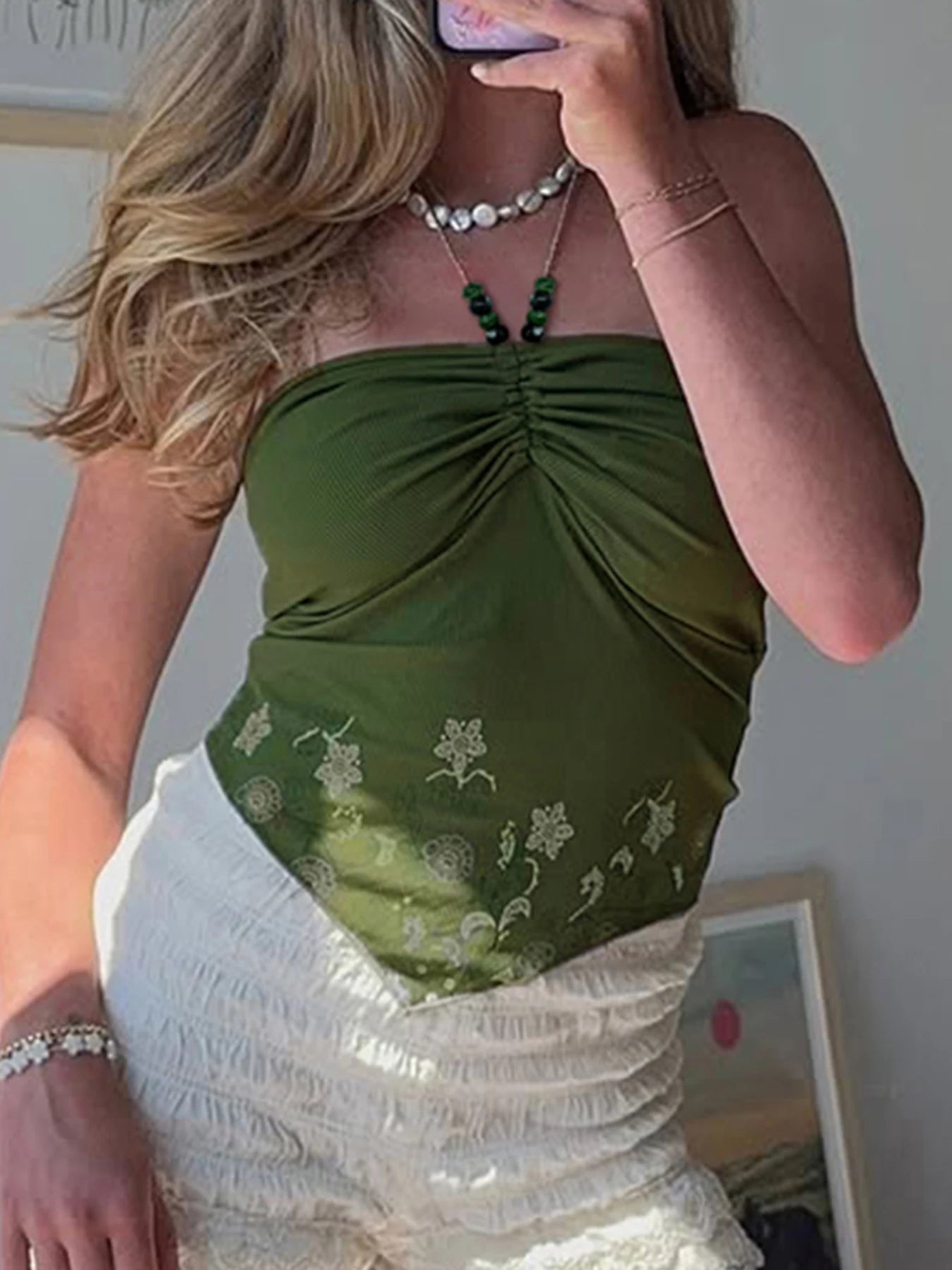 fashionRetro Floral Print Beads Sexy Camisole Vintage Streetwear Slim Backless Elastic Top Irregular Shirring Bustier