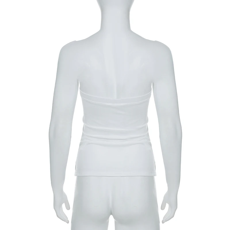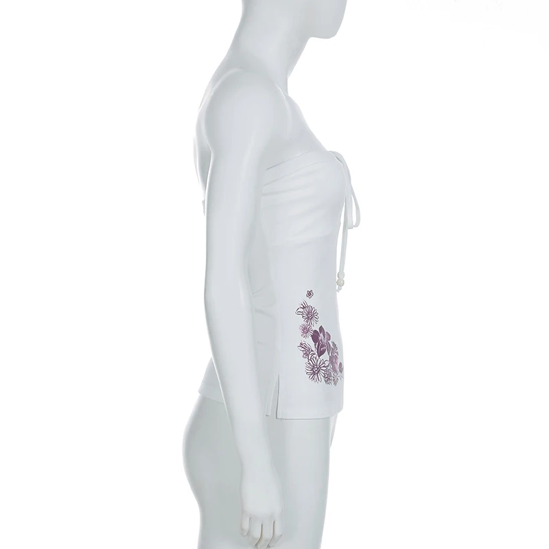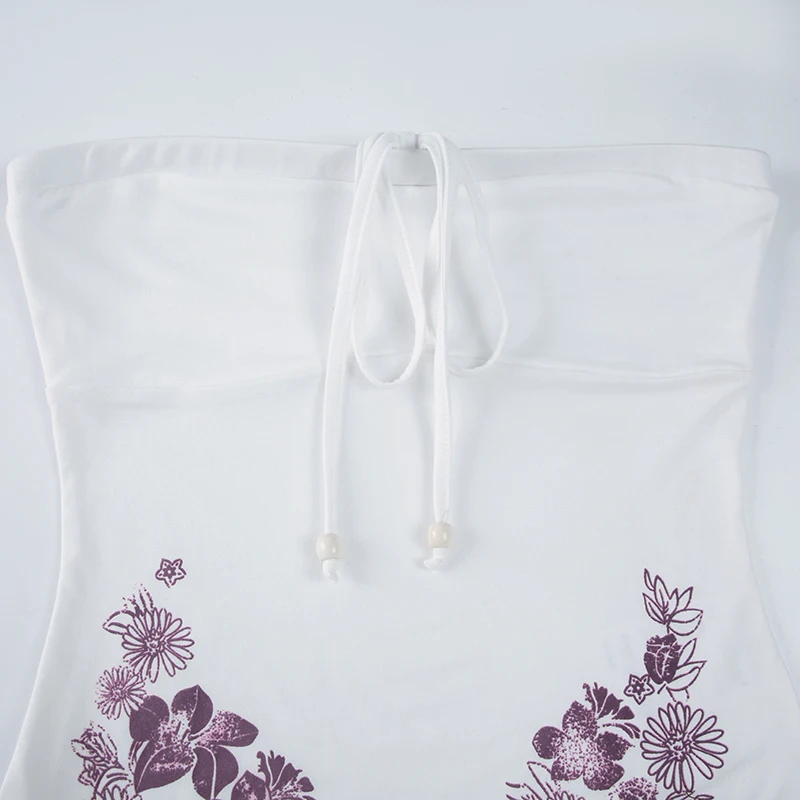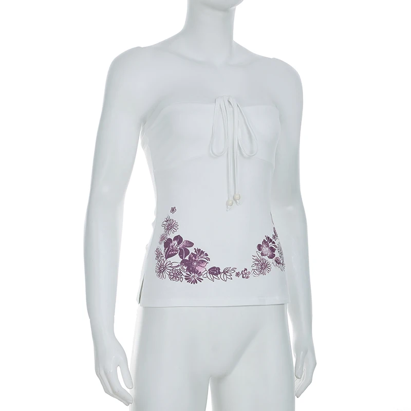fashionSexy Bow Sleeveless Solid Camisole Floral Print White Summer Chic Vintage Strapless Top Slit Bodycon Women's Cloth