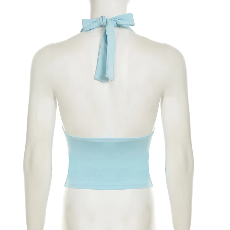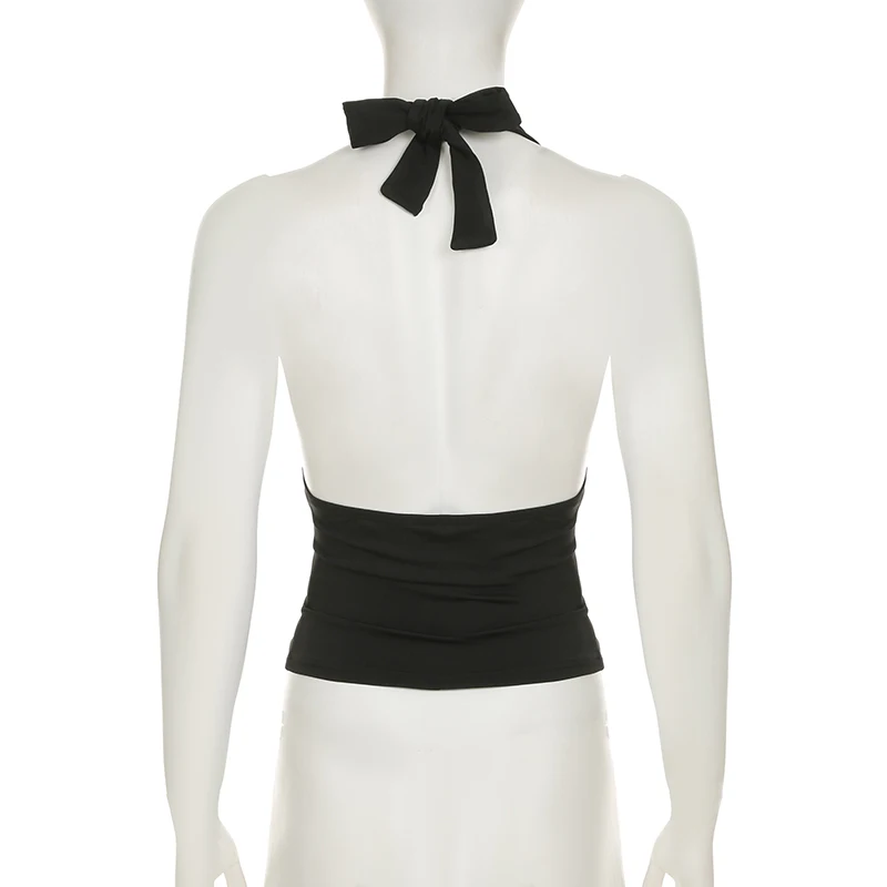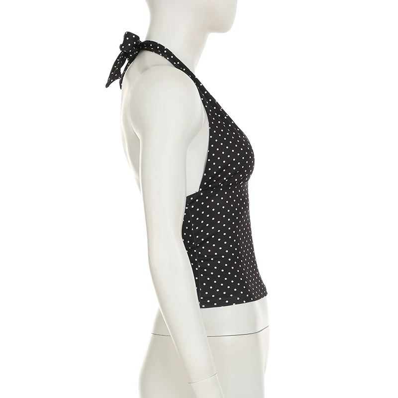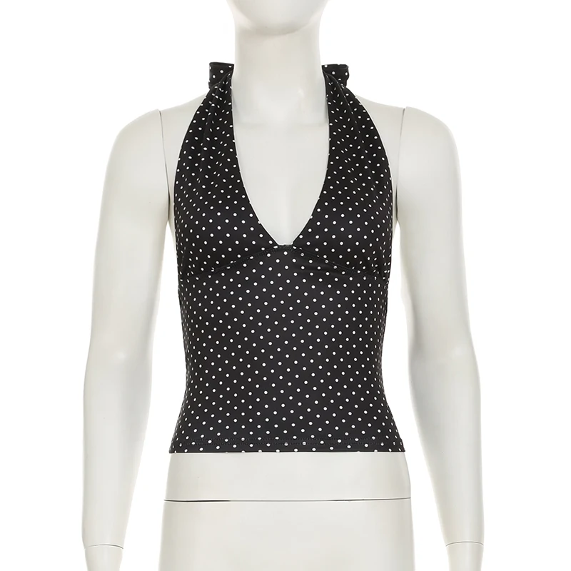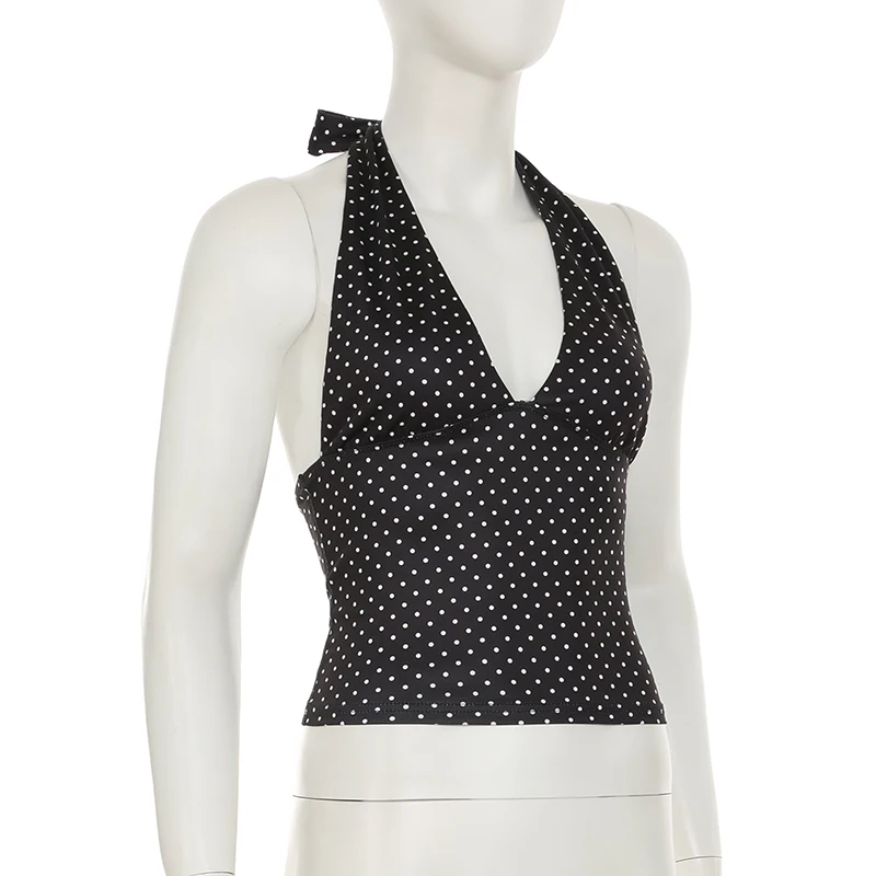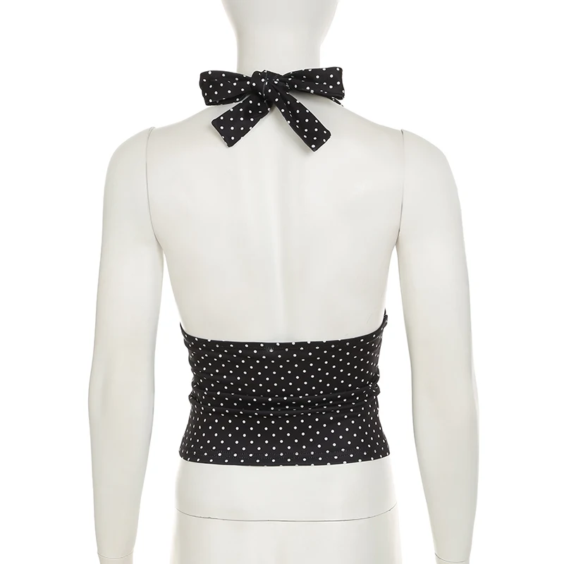 fashionSexy Deep V-neck Solid Halter Neck Backless Bow Polka Dot Elastic Bodycon Camisole Fashion Streetwear Corset Top