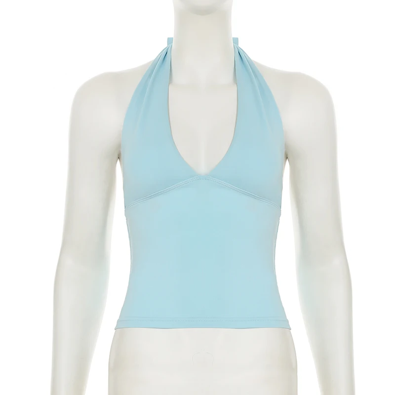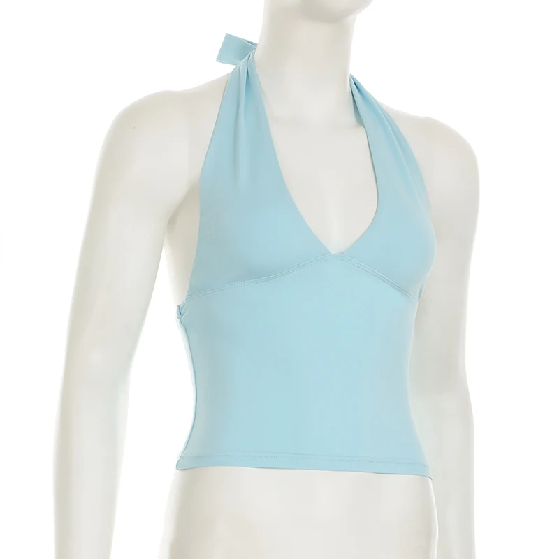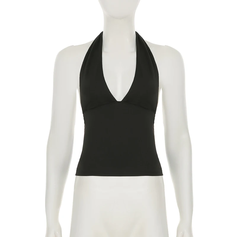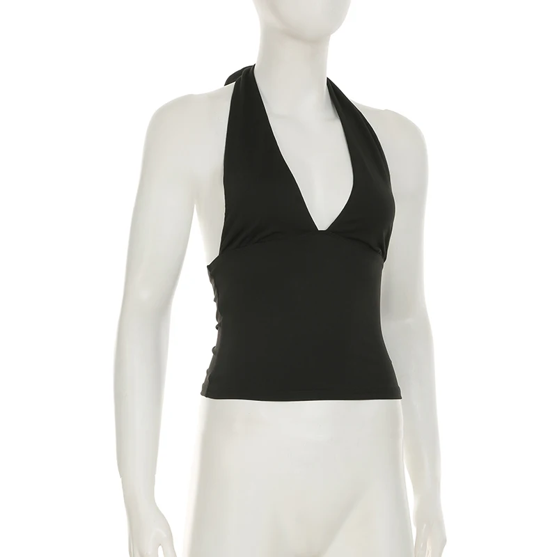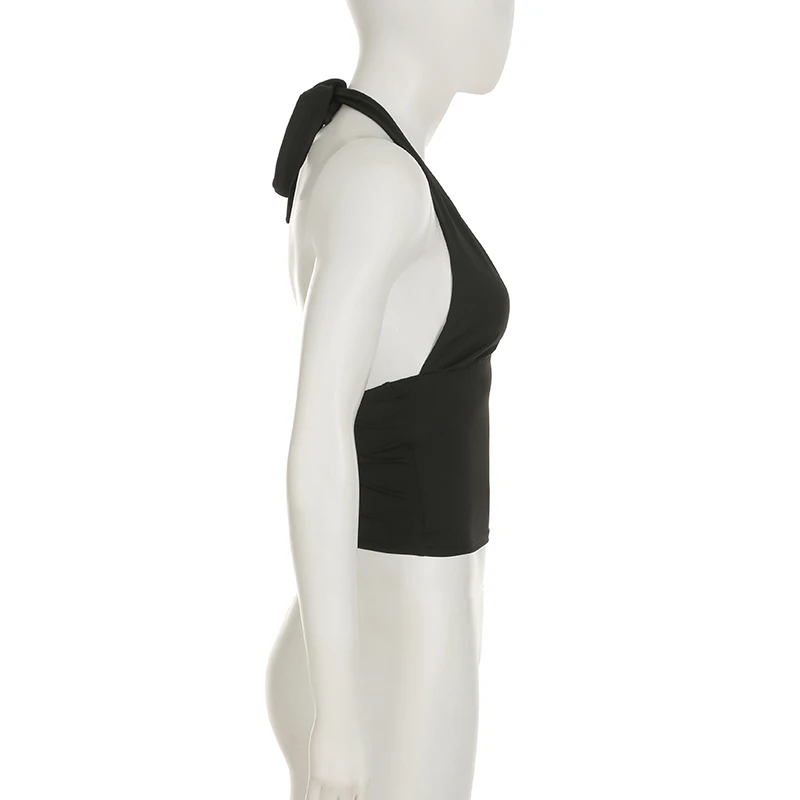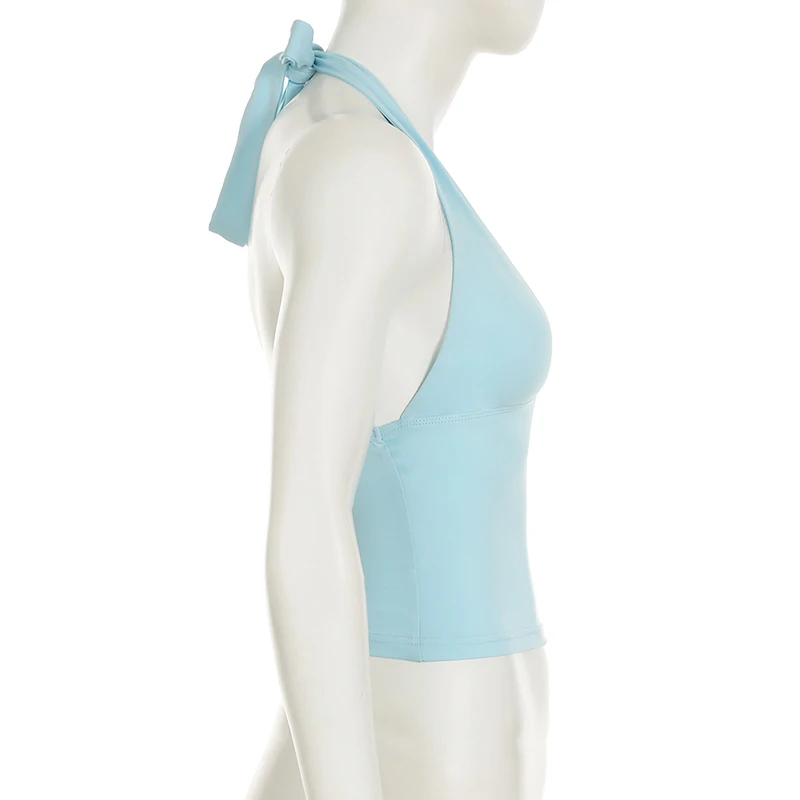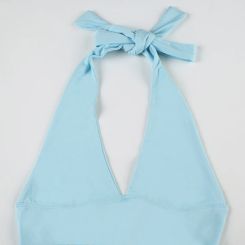 fashionSexy Deep V-neck Solid Halter Neck Backless Bow Polka Dot Elastic Bodycon Camisole Fashion Streetwear Corset Top