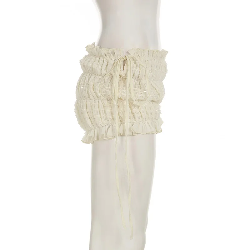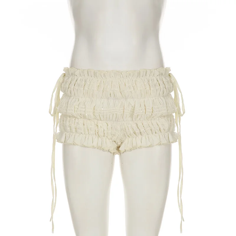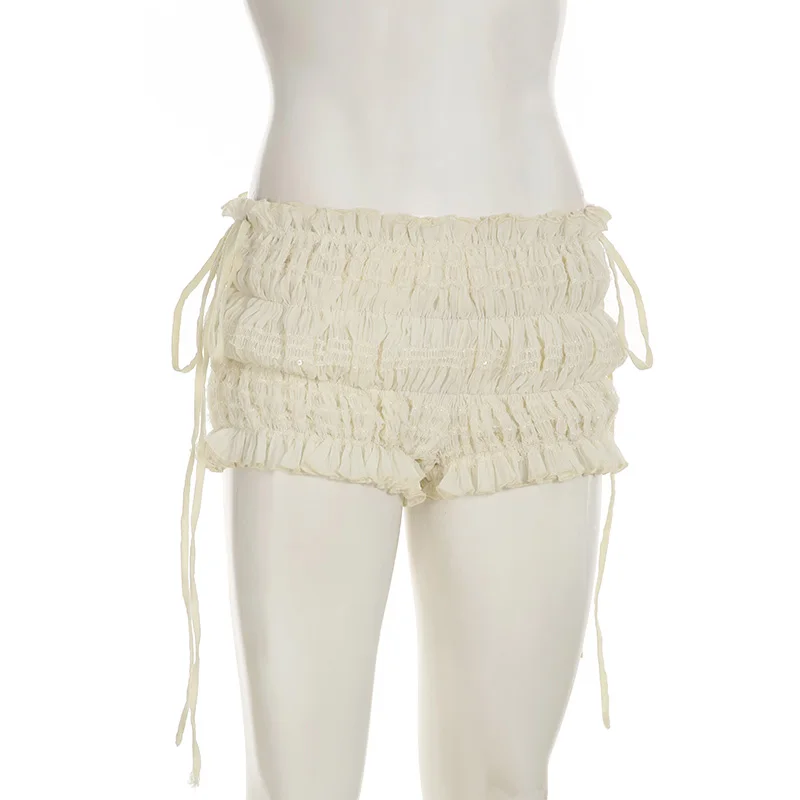 fashionShirring Bandage Solid Sexy Shorts Chic Vintage Streetwear Sweet Slim 2000s Basic Y2k Clothes Low Waisted Bottoms