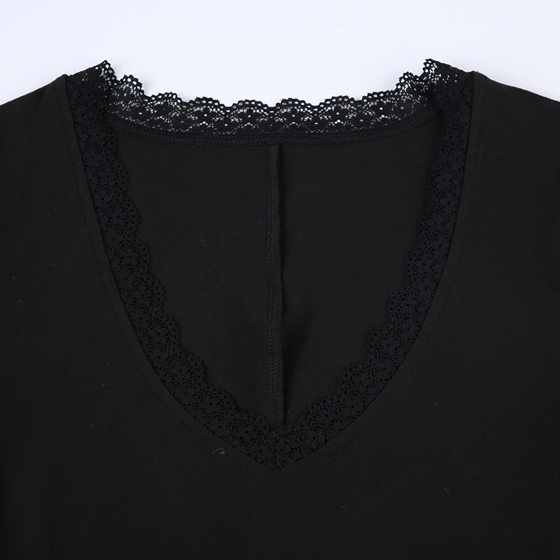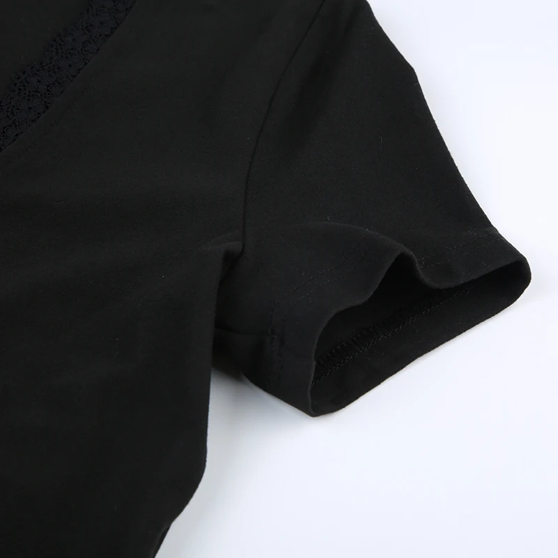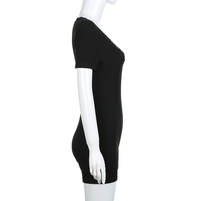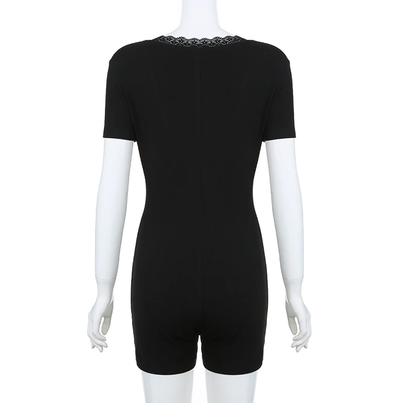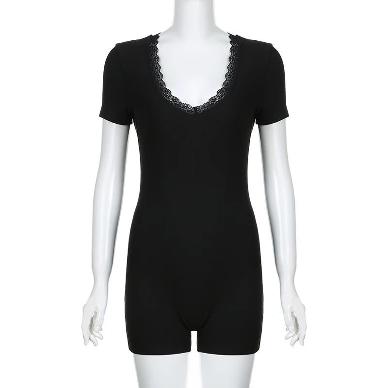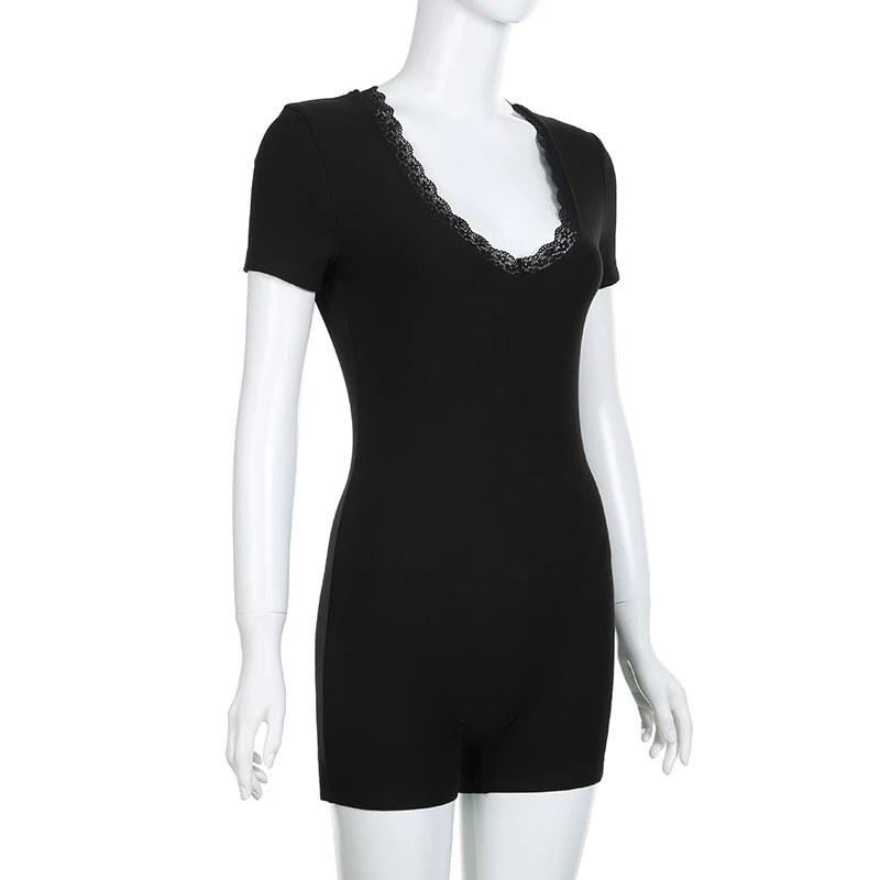 fashionShort Sleeves Slim Rompers for Women Lace Patchwork Casual Black Pullovers Streetwear Basic Fashion Y2K Jumpsuits