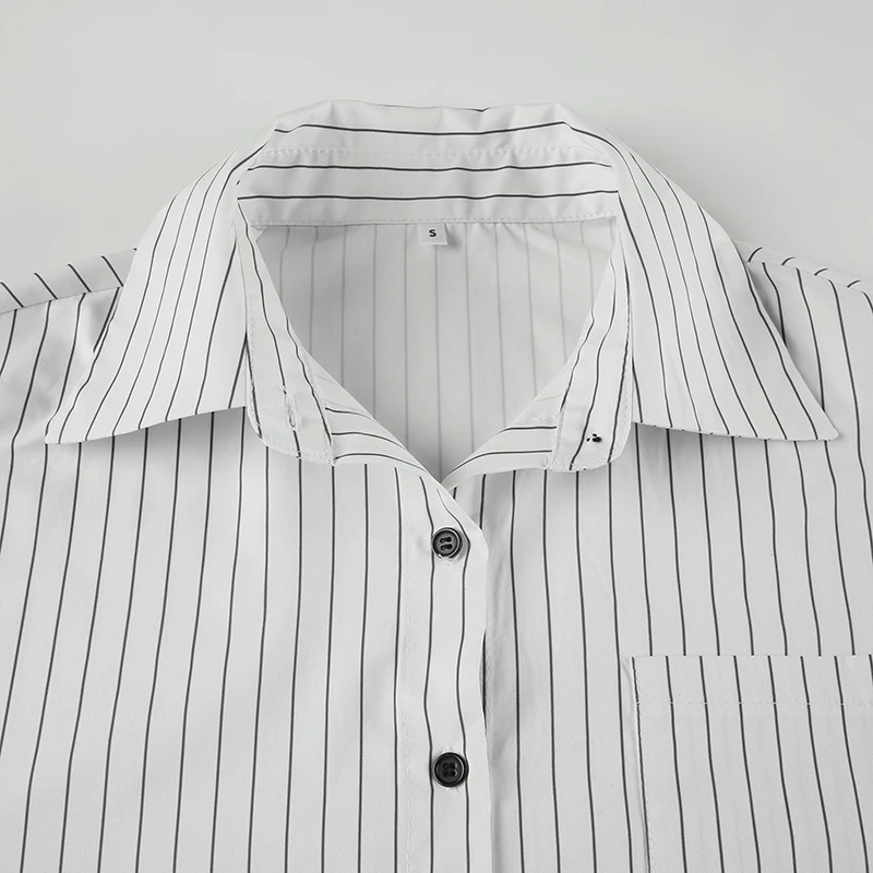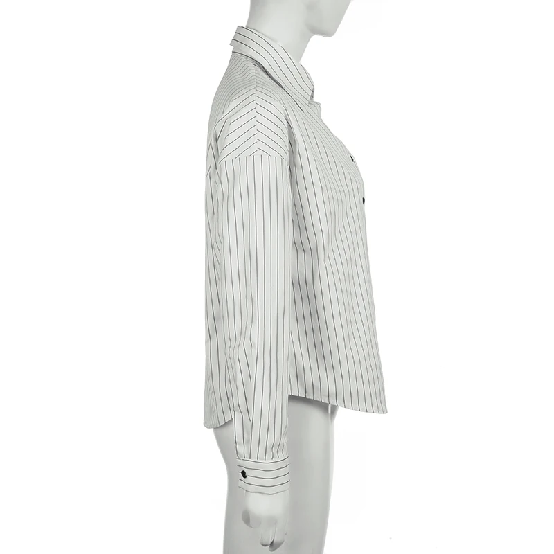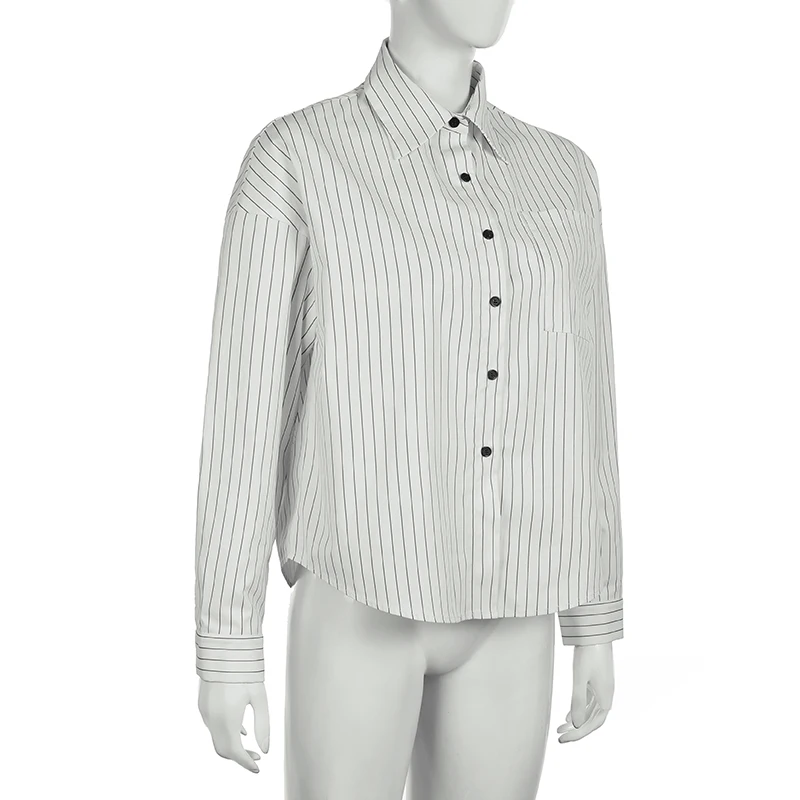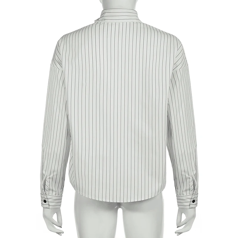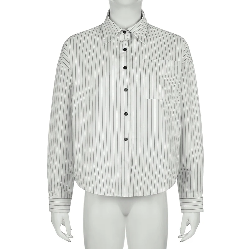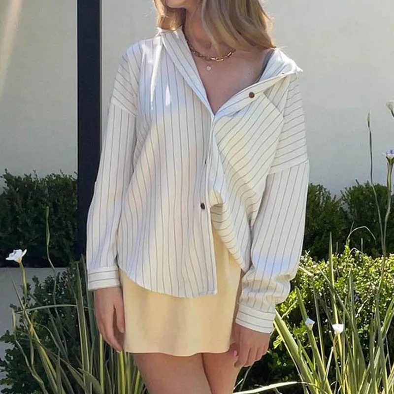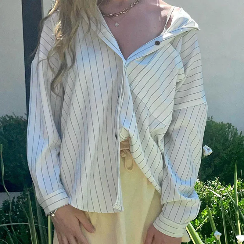 fashionStripe Loose Casual Blouses Lapel Vintage Button Harajuku Y2k 90s Basic Tees Korea Streetwear Fashion Baggy Tops