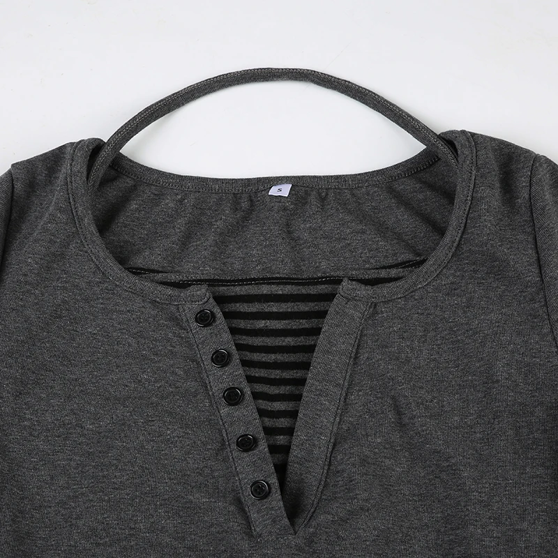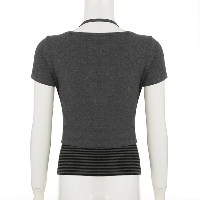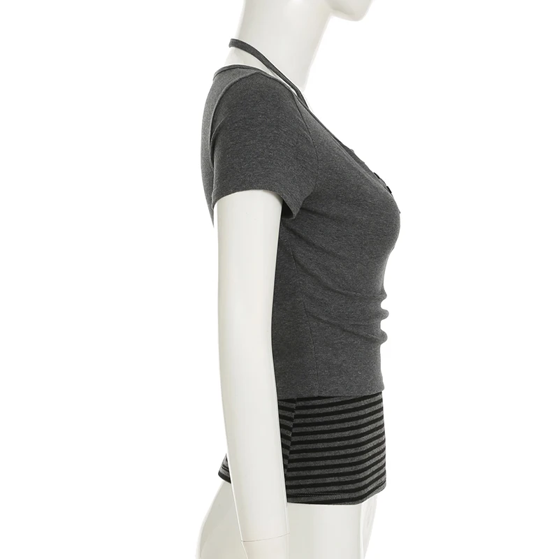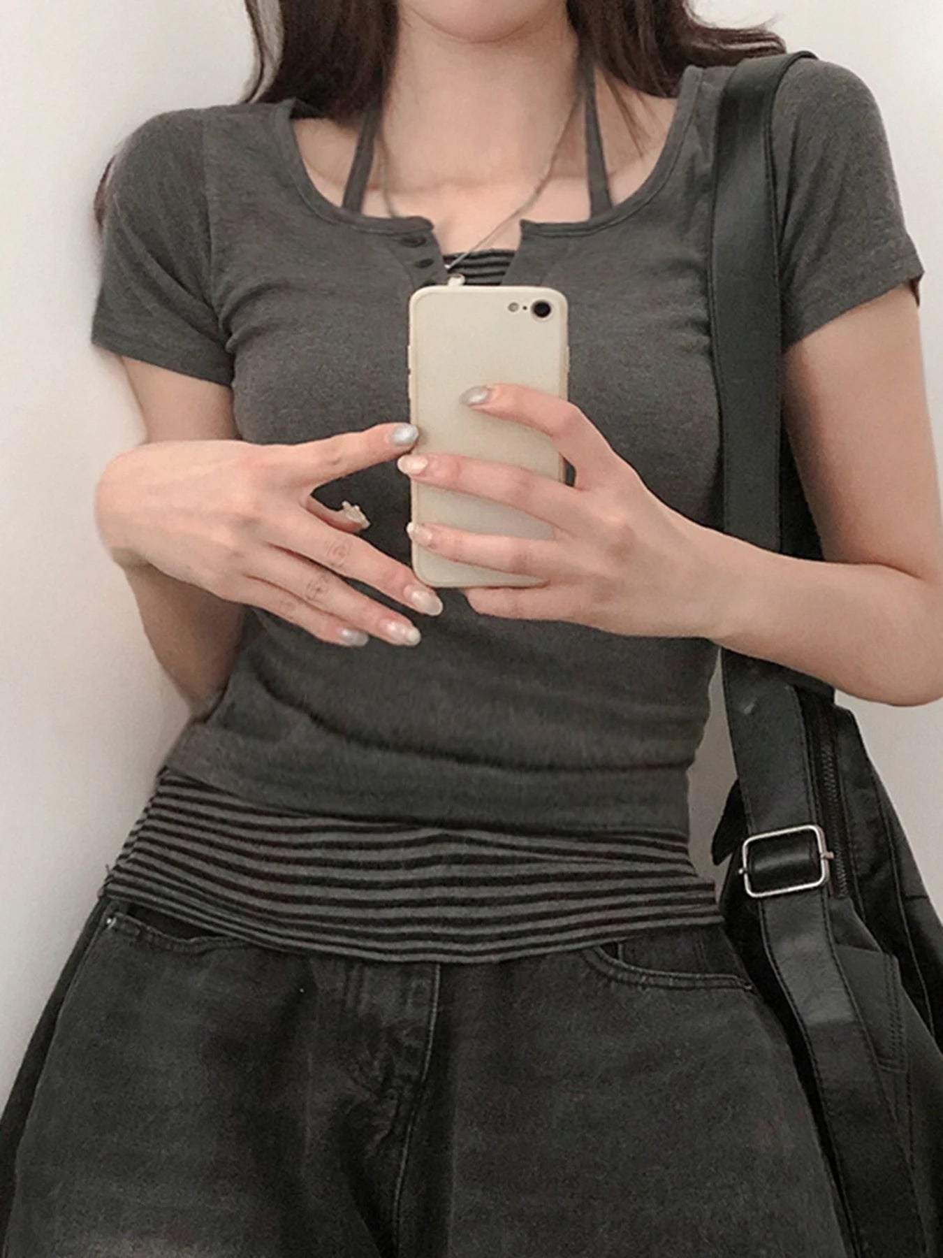 fashionStriped Button Halter Casual Two-piece Set Slim Summer Streetwear Elastic Vintage Suit Chic Basic Sexy Twinset
