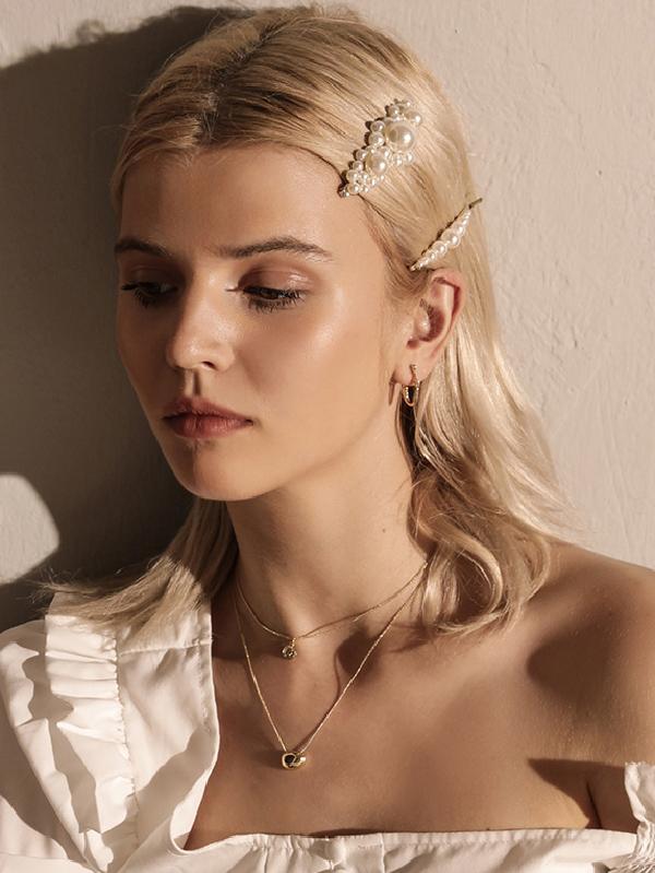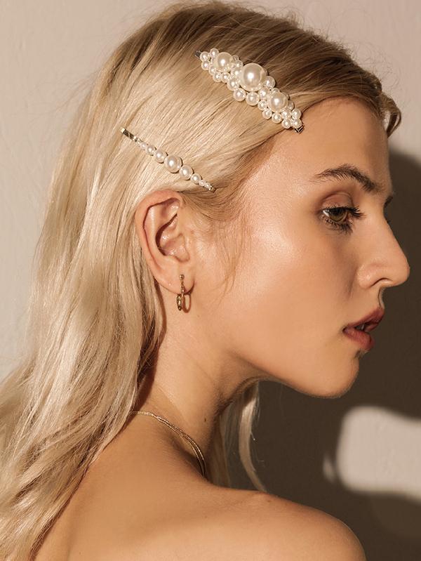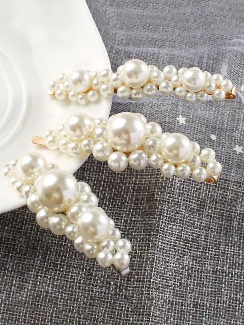 Faux Pearl Hair Clip Beaded Metal Slide In Hair Clip