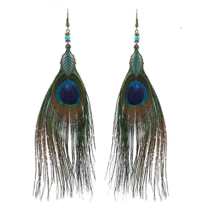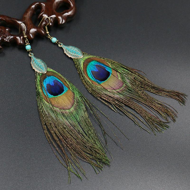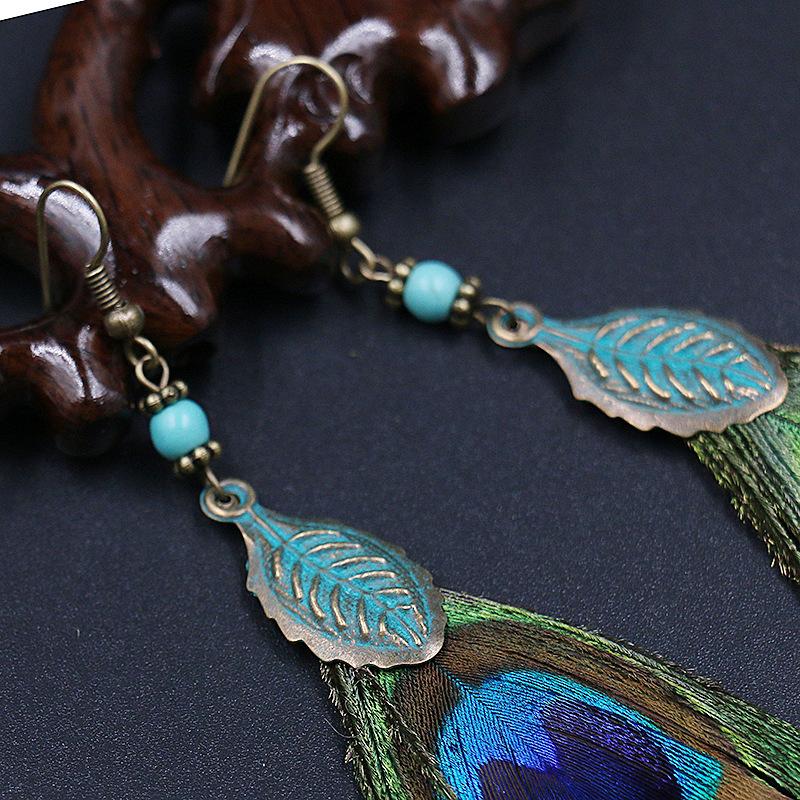Feather earrings personality peacock hair tassel pendant retro earrings