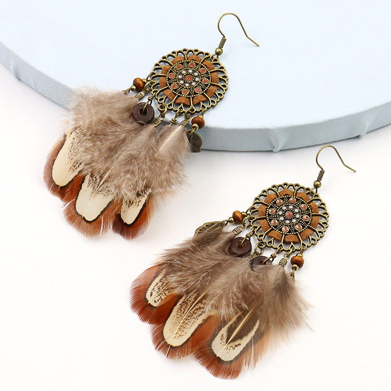 Feather round hollow retro earrings