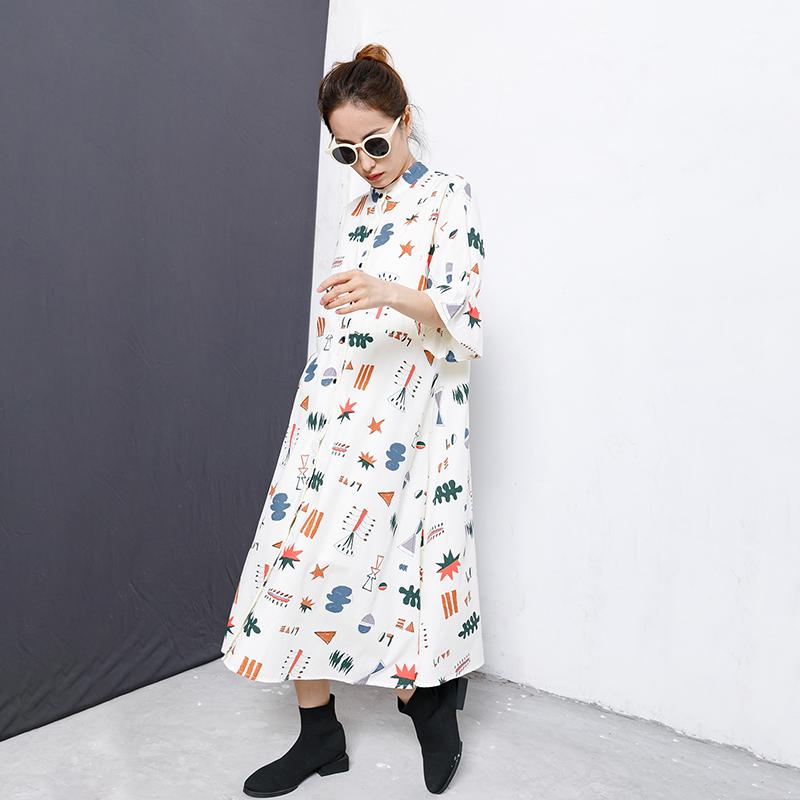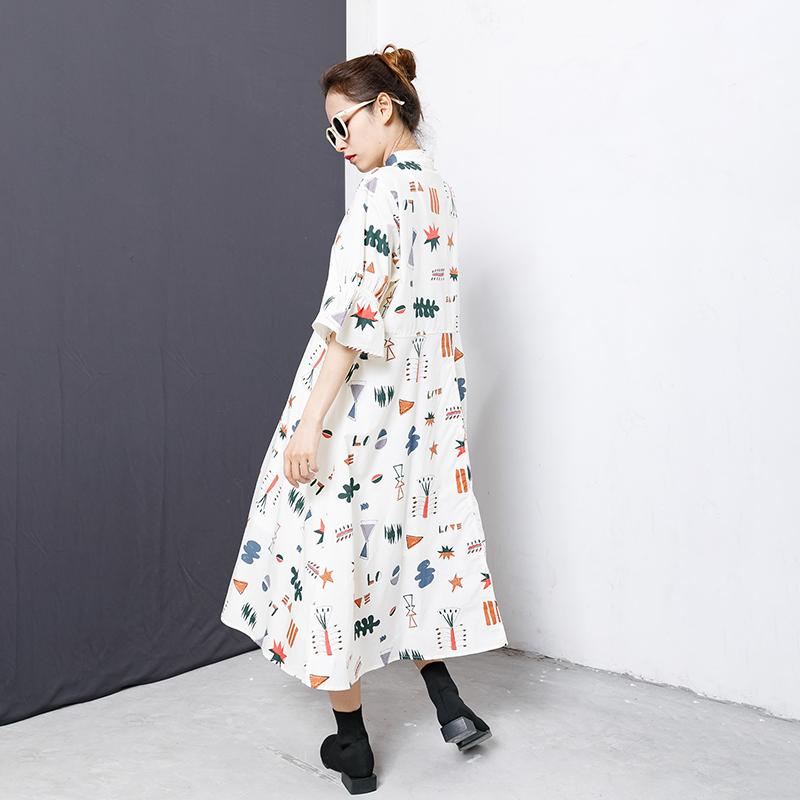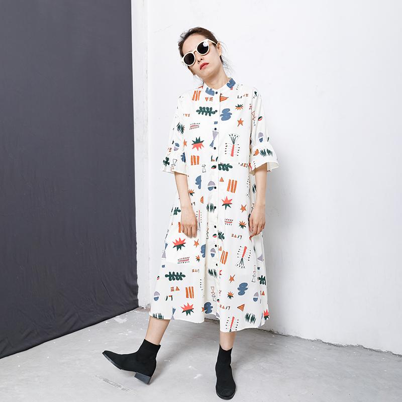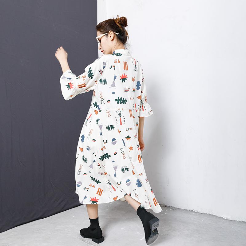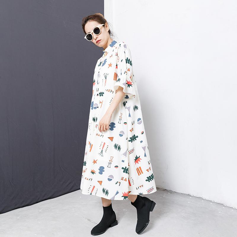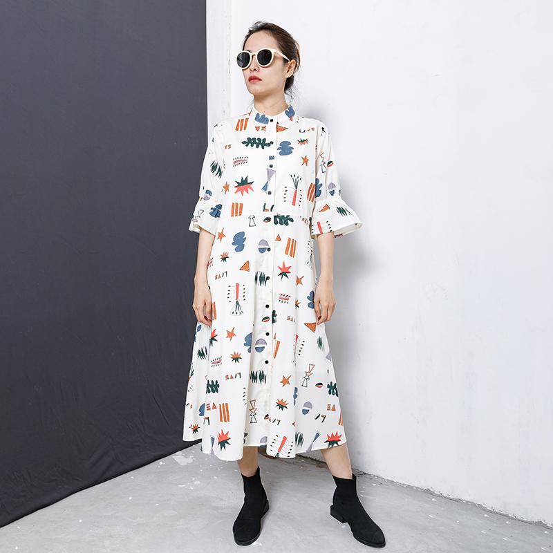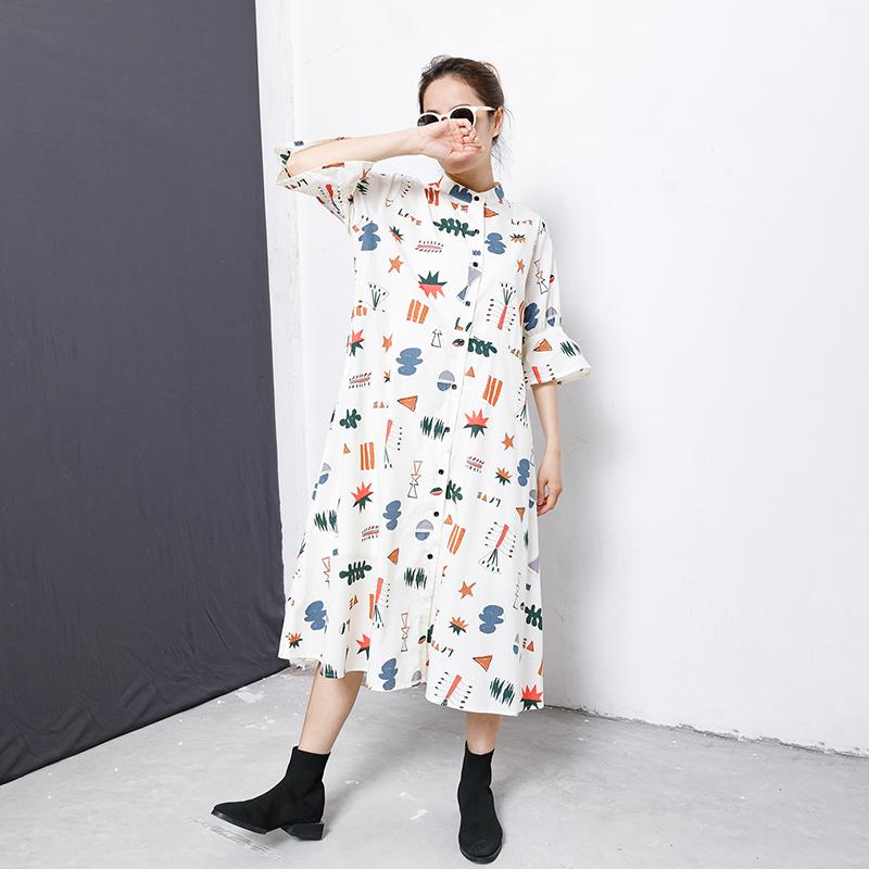 Flare Sleeve Printed Casual Loose Shirt Dress